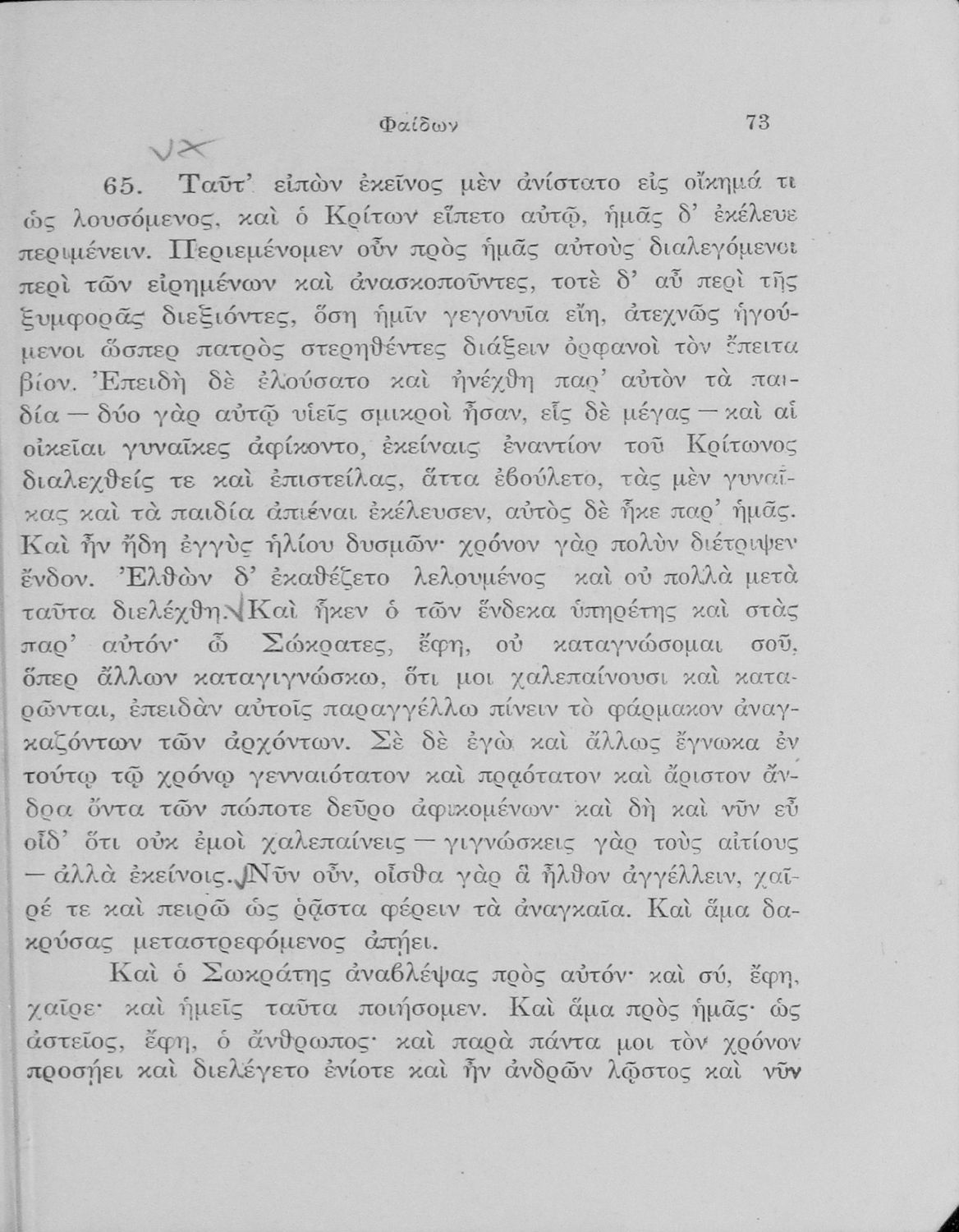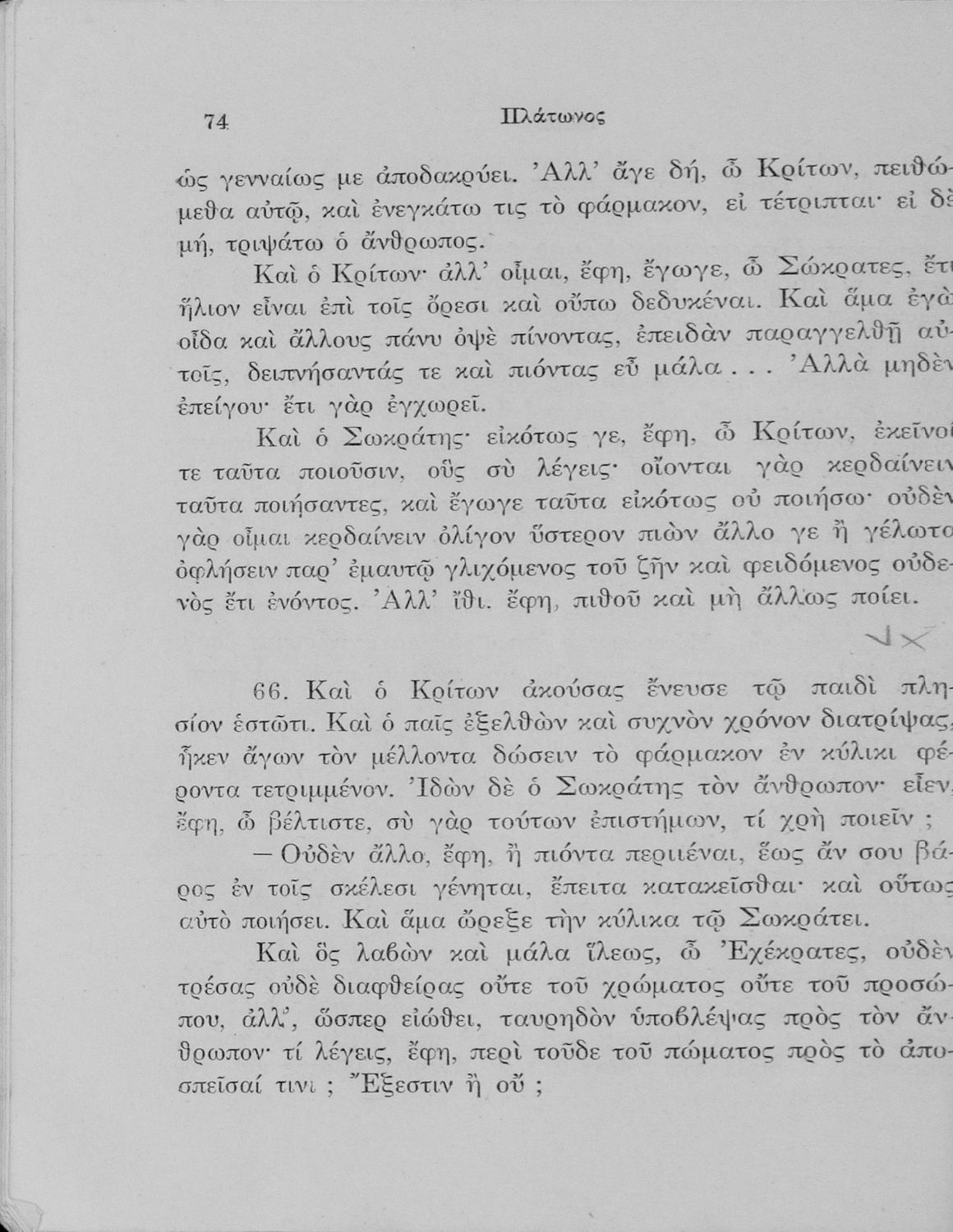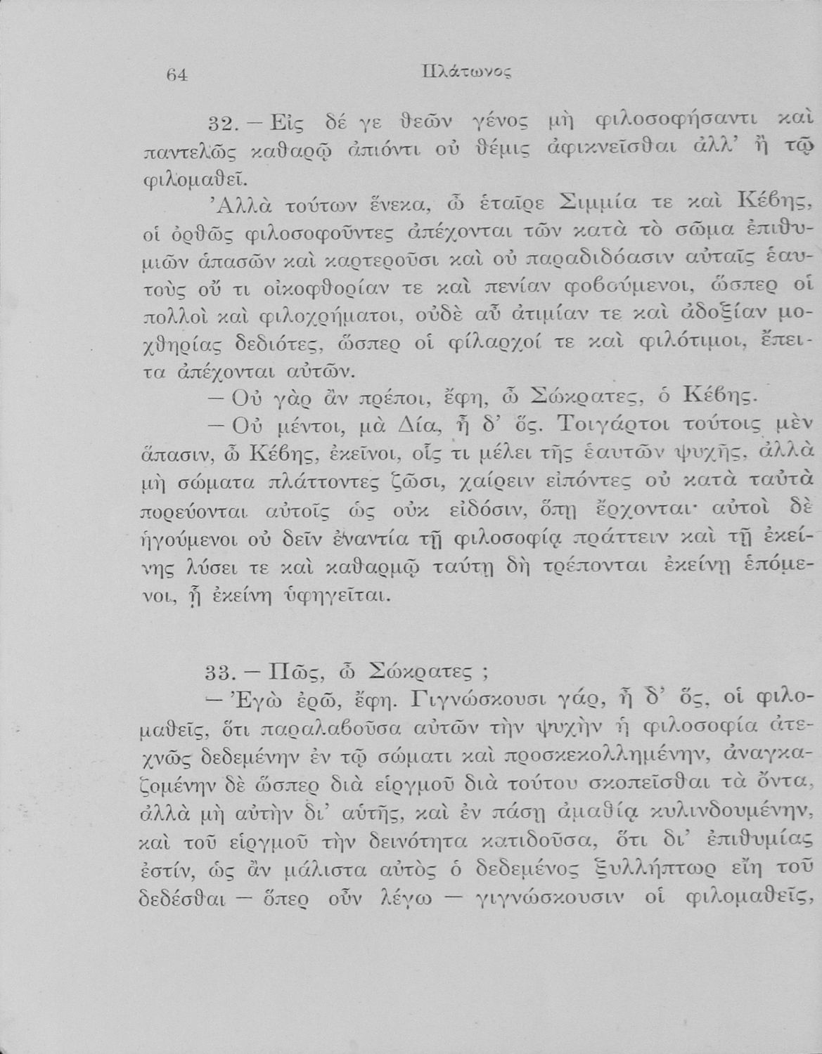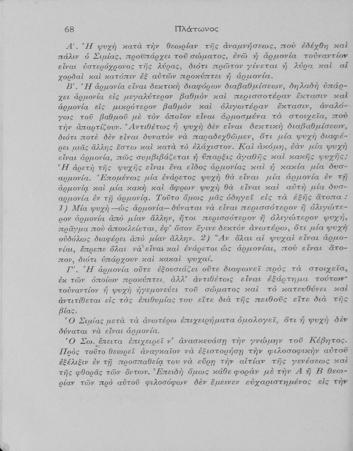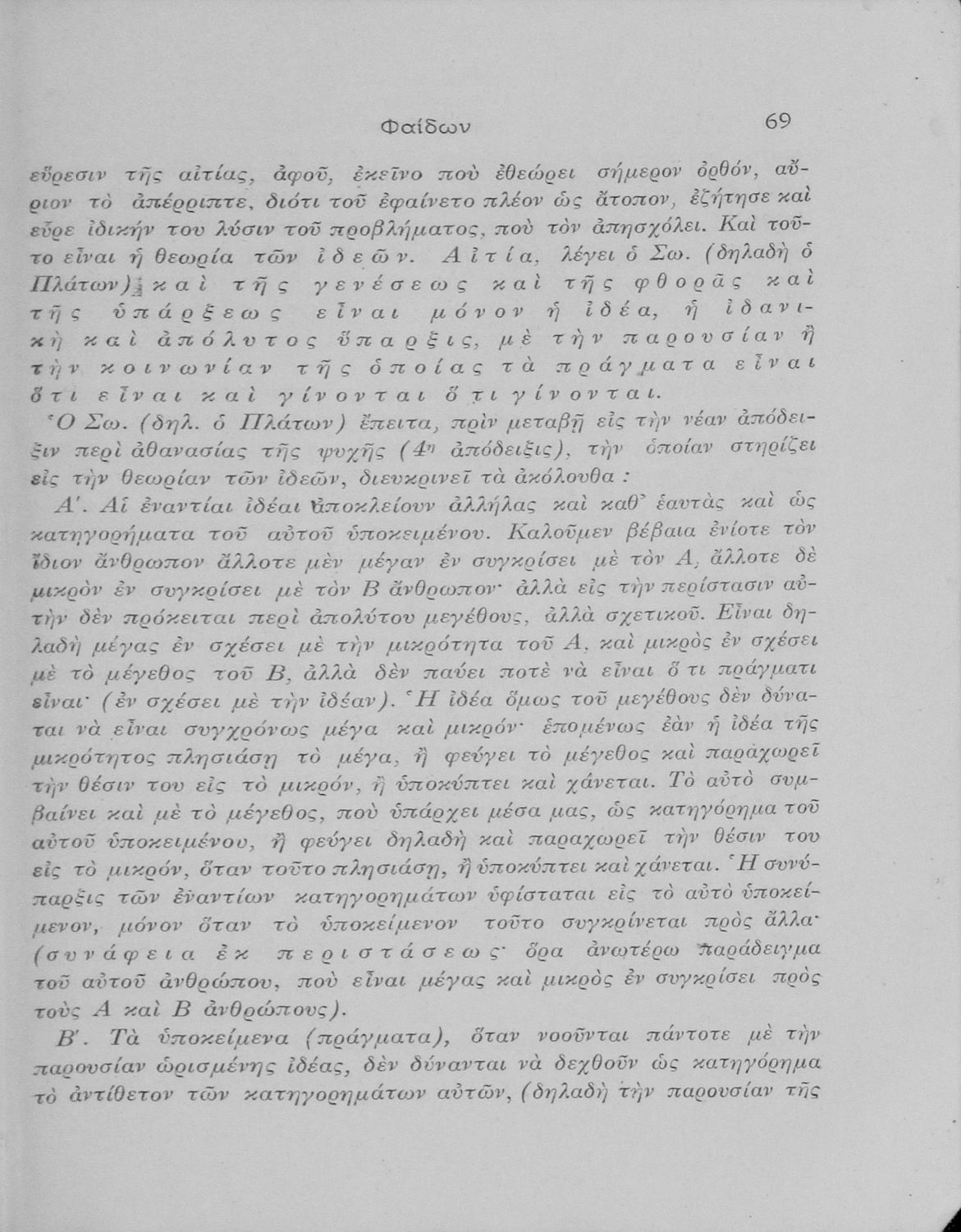 Σχολικό εγχειρίδιο Αρχαίων Ελληνικών. Το βιβλίο περιλαμβάνει εισαγωγικά στοιχεία σχετικά με το έργο και τη ζωή του Πλάτωνα και μία περίληψη που αφορά τα συγγράμματα του. Παραθέτεται αναλυτικά το κείμενο : Φαίδων. Η περί Ψυχής ηθικός, το οποίο περιλαμβάνει κεφάλαια από το 1 έως το 34. Ακολουθεί η περίληψη των κεφαλαίων 35 έως 63 και τελικά ολοκληρώνεται με τις ερμηνευτικές σημειώσεις.