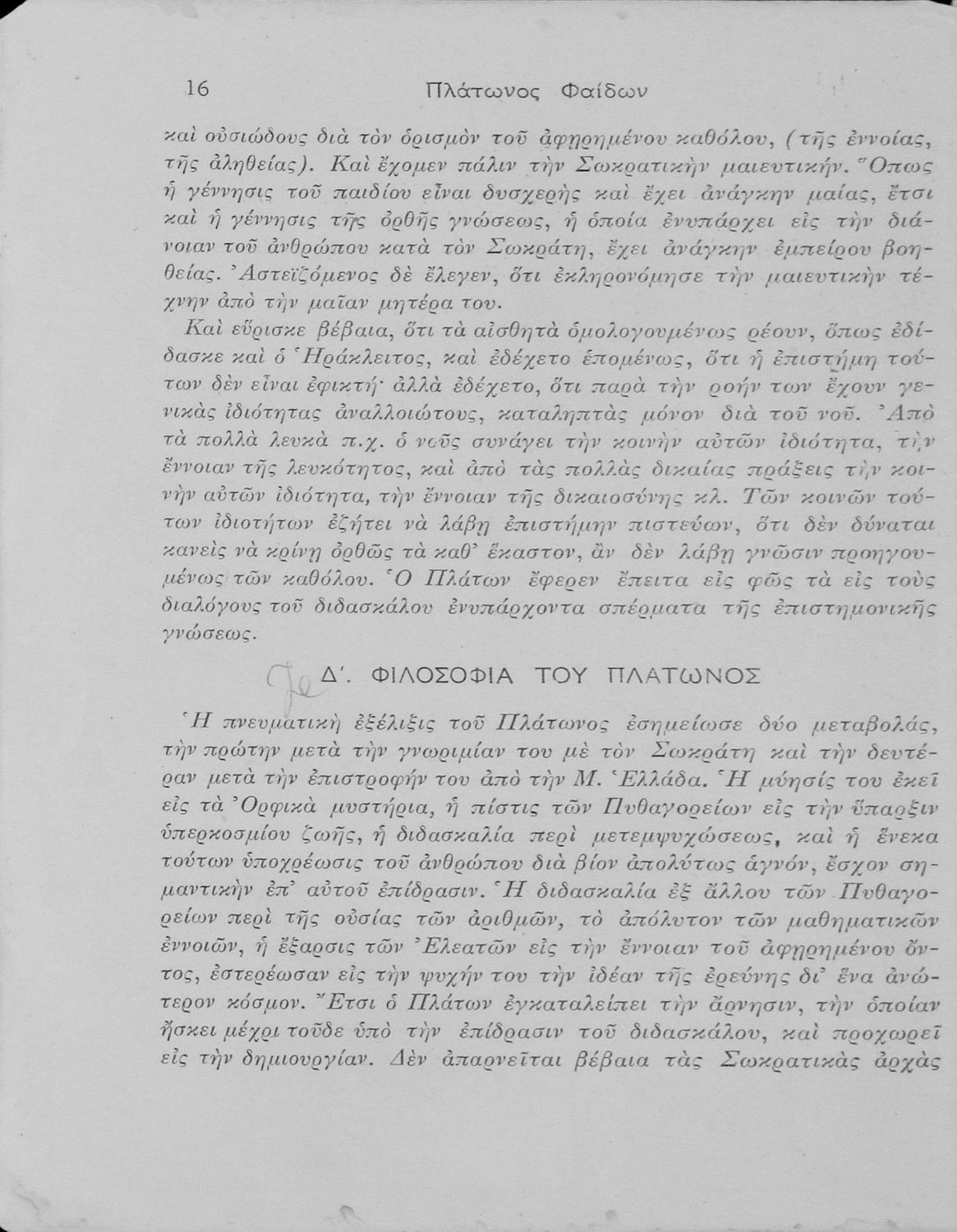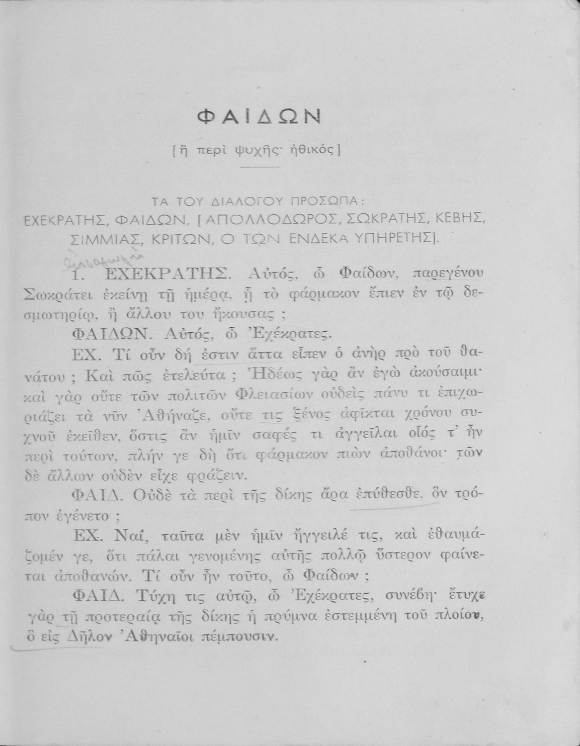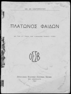 Πλάτωνος Φαίδων δια την ΣΤ΄ τάξιν των Γυμνασίων παλαιού τύπου