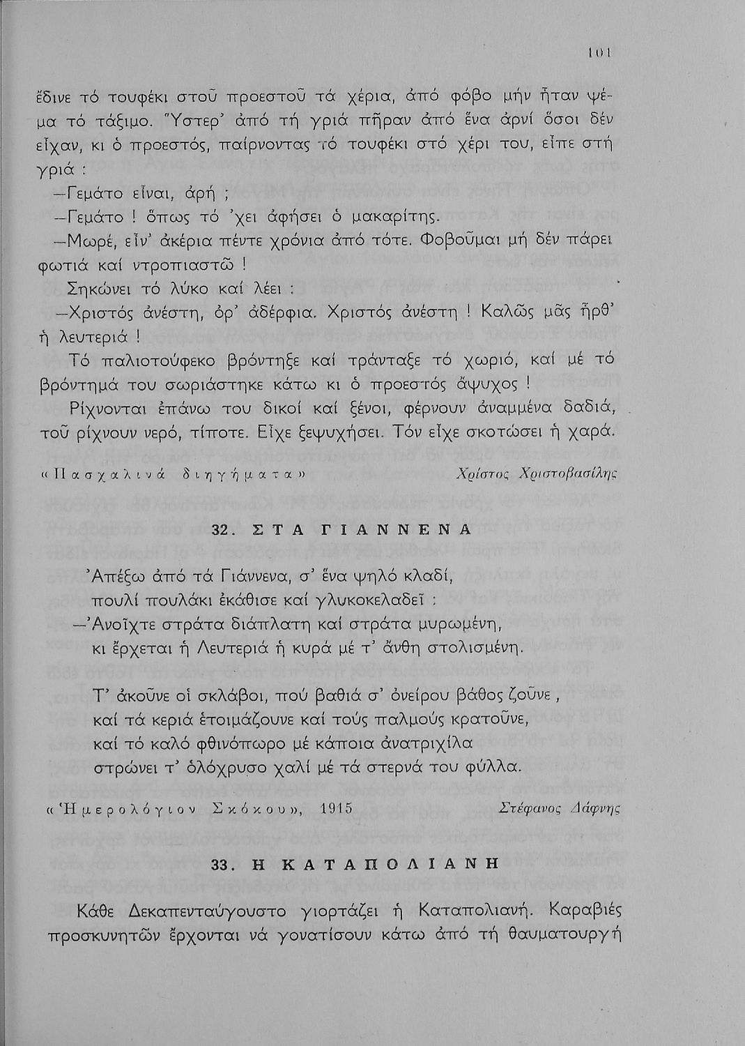 Σχολικό εγχειρίδιο Νέων Ελληνικών Γ΄ Γυμνασίου και Α' Αστικού Σχολείου που περιέχει πεζά και ποιήματα Ελλήνων συγγραφέων εμπνευσμένα από τη θρησκευτική και κοινωνική ζωή, την ελληνική μυθολογία, την αρχαία και