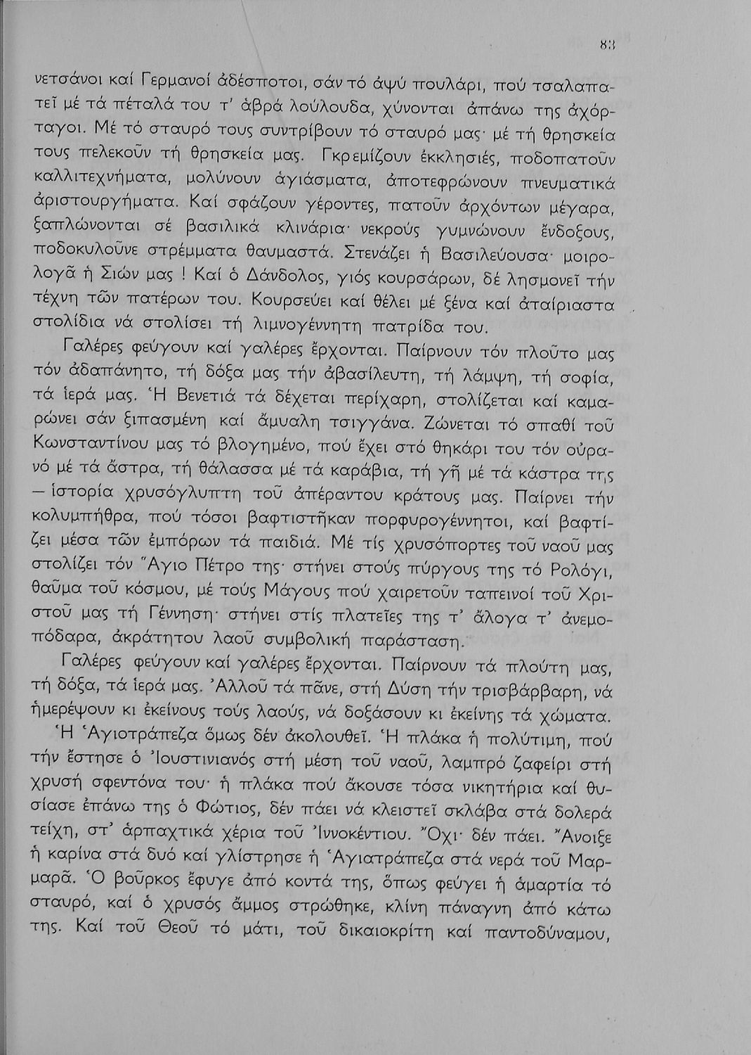 Σχολικό εγχειρίδιο Νέων Ελληνικών για τις Α΄ και Β΄ Λυκείου που περιέχει πεζά και ποιήματα Ελλήνων και ξένων συγγραφέων εμπνευσμένα από την σύγχρονη ελληνική ιστορία, τη θρησκευτική παράδοση και την ελληνική ...