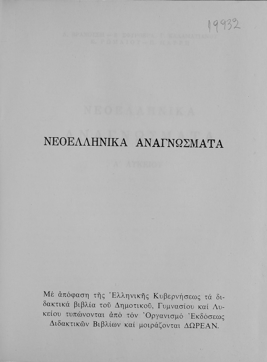 Συγγραφέας: Λ. Βρανούσης, Β. Σφυρόερας, Γ. Καλαματιανός, Κ. Ρωμαίος, Π. Πάρρης