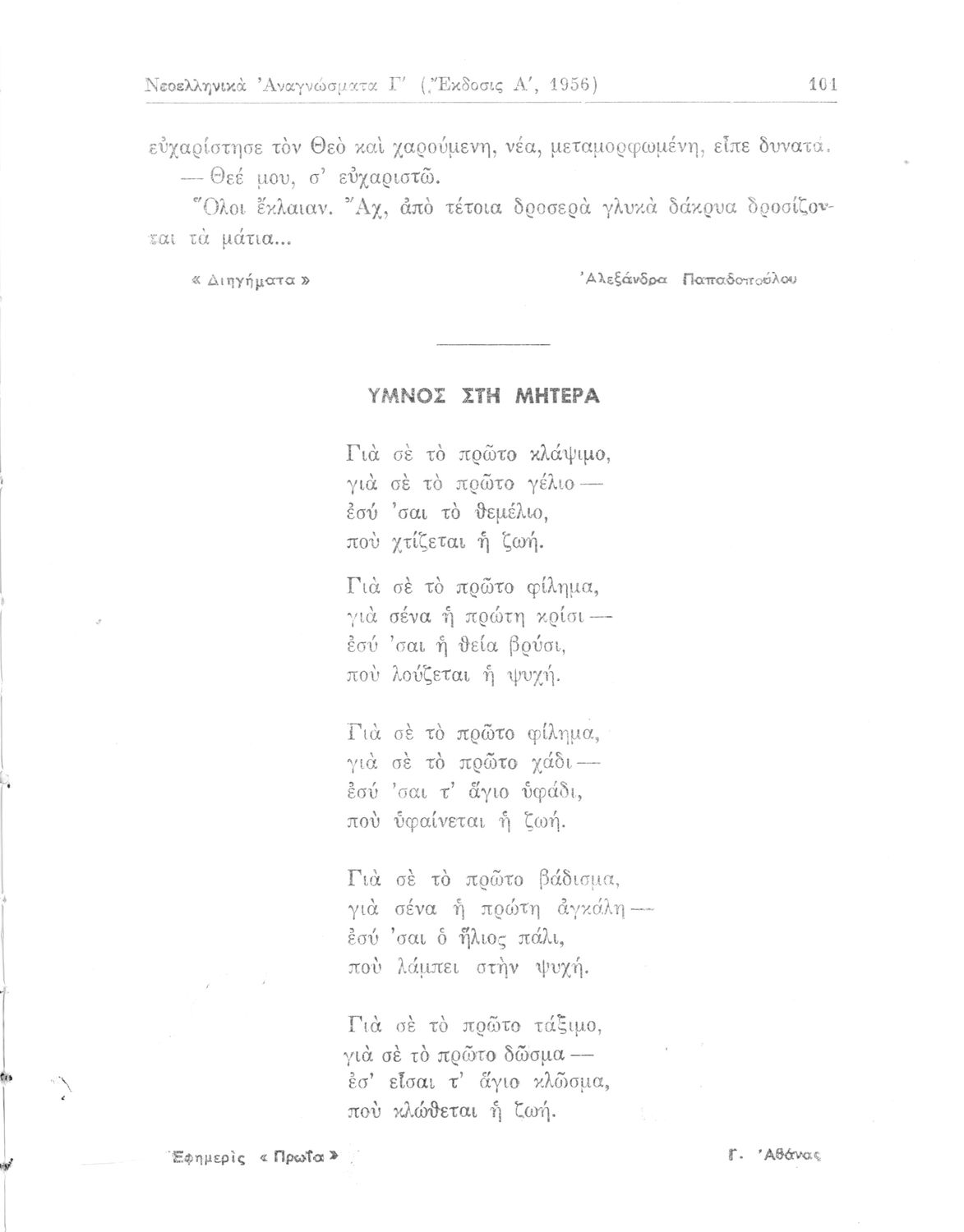 Σχολικό εγχειρίδιο Νέων Ελληνικών Γ΄ Γυμνασίου που περιέχει ποιήματα και πεζά Ελλήνων συγγραφέων εμπνευσμένα από τη θρησκευτική, οικογενειακή και κοινωνική ζωή, την σύγχρονή ελληνική ιστορία και την ελληνική φύση. Περιέχει παράρτημα με βιογραφίες των συγγραφέων και λεξιλόγιο.