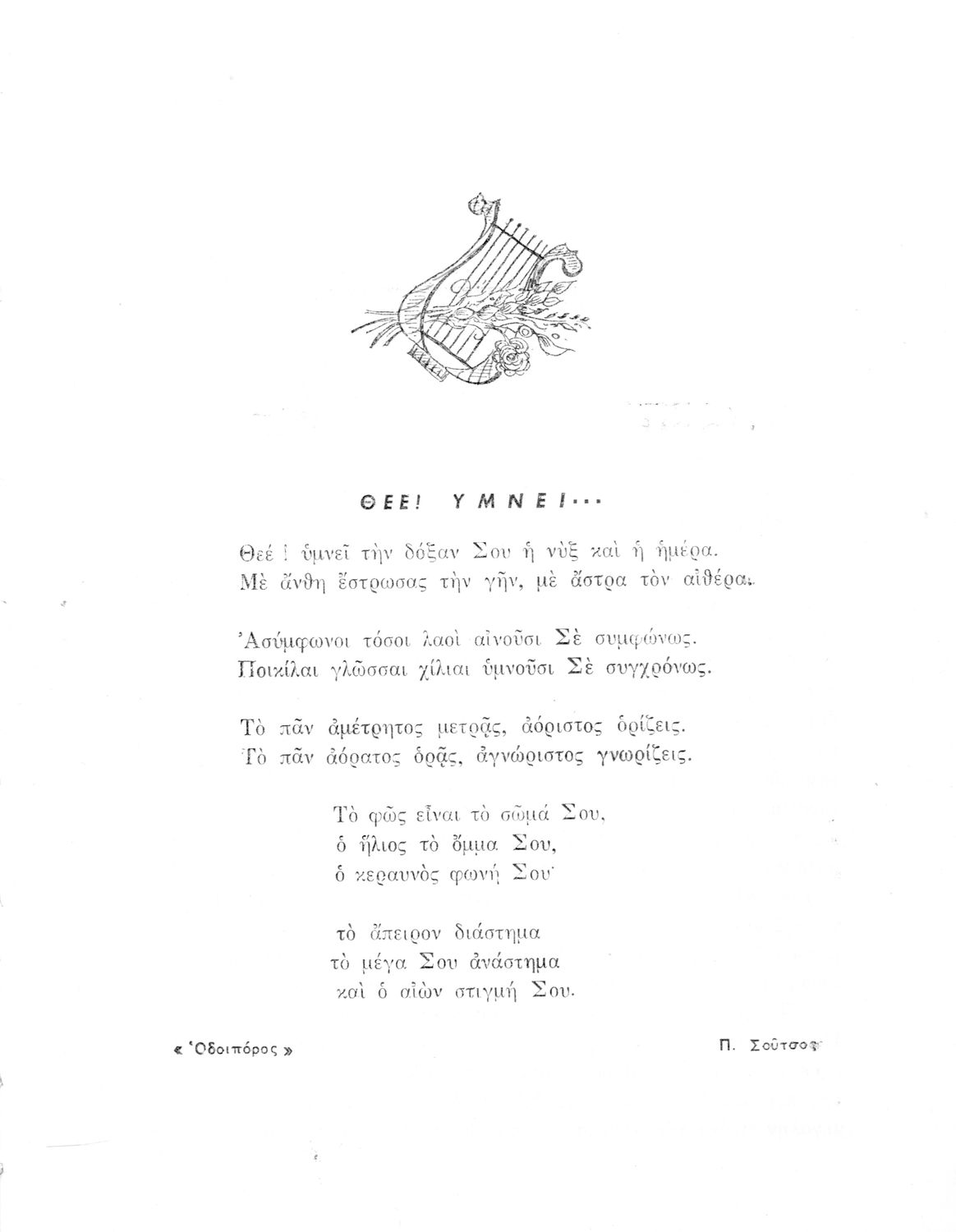 Σχολικό εγχειρίδιο Νέων Ελληνικών Γ΄ Γυμνασίου και Α' Αστικού Σχολείου που περιέχει πεζά και ποιήματα Ελλήνων συγγραφέων εμπνευσμένα από τη θρησκευτική και κοινωνική ζωή, την ελληνική μυθολογία, την αρχαία και