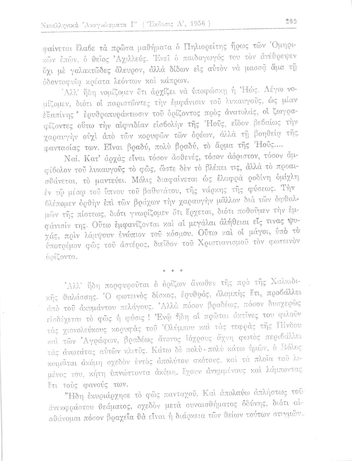 Σχολικό εγχειρίδιο Νέων Ελληνικών Γ΄ Γυμνασίου και Α' Αστικού Σχολείου που περιέχει πεζά και ποιήματα Ελλήνων συγγραφέων εμπνευσμένα από τη θρησκευτική και κοινωνική ζωή, την ελληνική μυθολογία, την αρχαία και