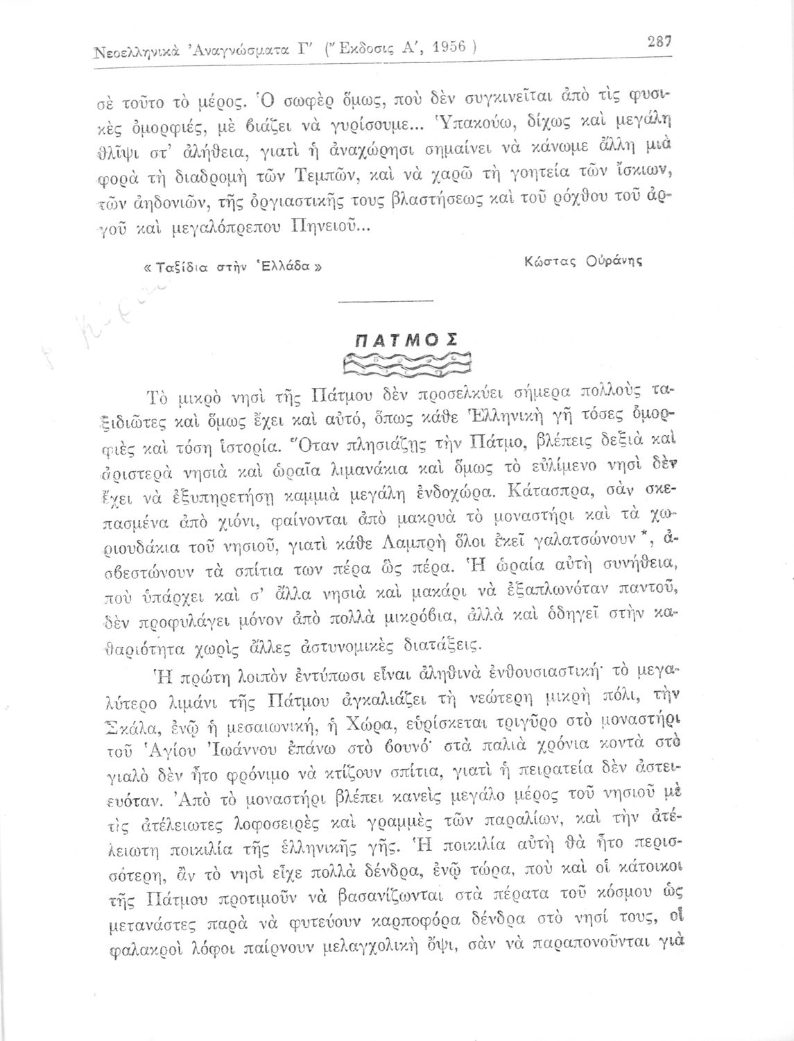 Σχολικό εγχειρίδιο Νέων Ελληνικών Γ΄ Γυμνασίου και Α' Αστικού Σχολείου που περιέχει πεζά και ποιήματα Ελλήνων συγγραφέων εμπνευσμένα από τη θρησκευτική και κοινωνική ζωή, την ελληνική μυθολογία, την αρχαία και