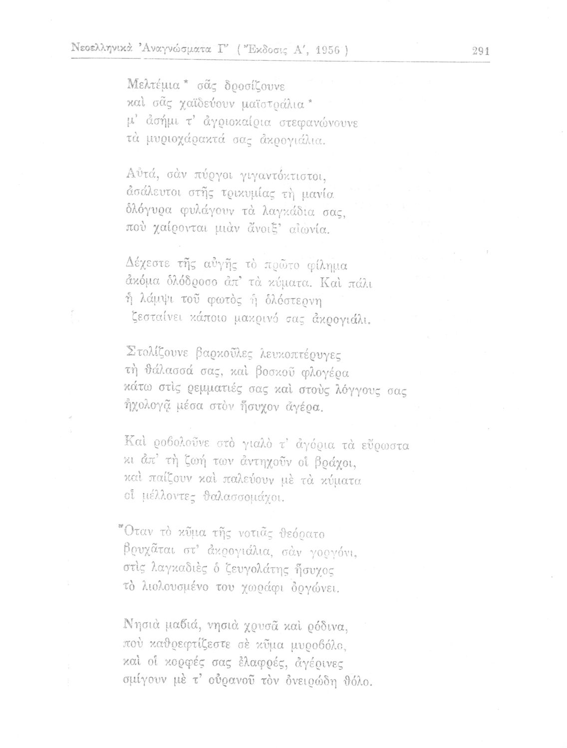 Σχολικό εγχειρίδιο Νέων Ελληνικών Γ΄ Γυμνασίου που περιέχει ποιήματα και πεζά Ελλήνων συγγραφέων εμπνευσμένα από τη θρησκευτική, οικογενειακή και κοινωνική ζωή, την σύγχρονή ελληνική ιστορία και την ελληνική φύση. Περιέχει παράρτημα με βιογραφίες των συγγραφέων και λεξιλόγιο.