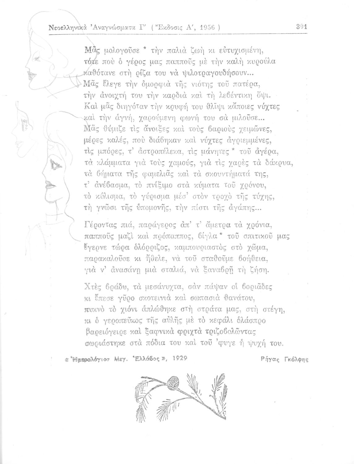 Σχολικό εγχειρίδιο Νέων Ελληνικών Γ΄ Γυμνασίου που περιέχει ποιήματα και πεζά Ελλήνων συγγραφέων εμπνευσμένα από τη θρησκευτική, οικογενειακή και κοινωνική ζωή, την σύγχρονή ελληνική ιστορία και την ελληνική ...