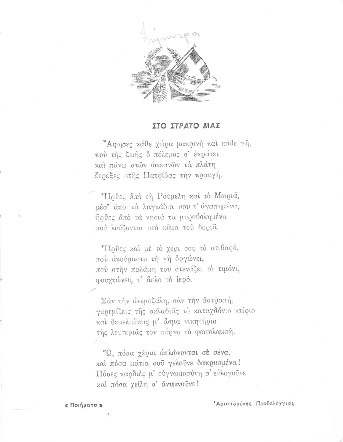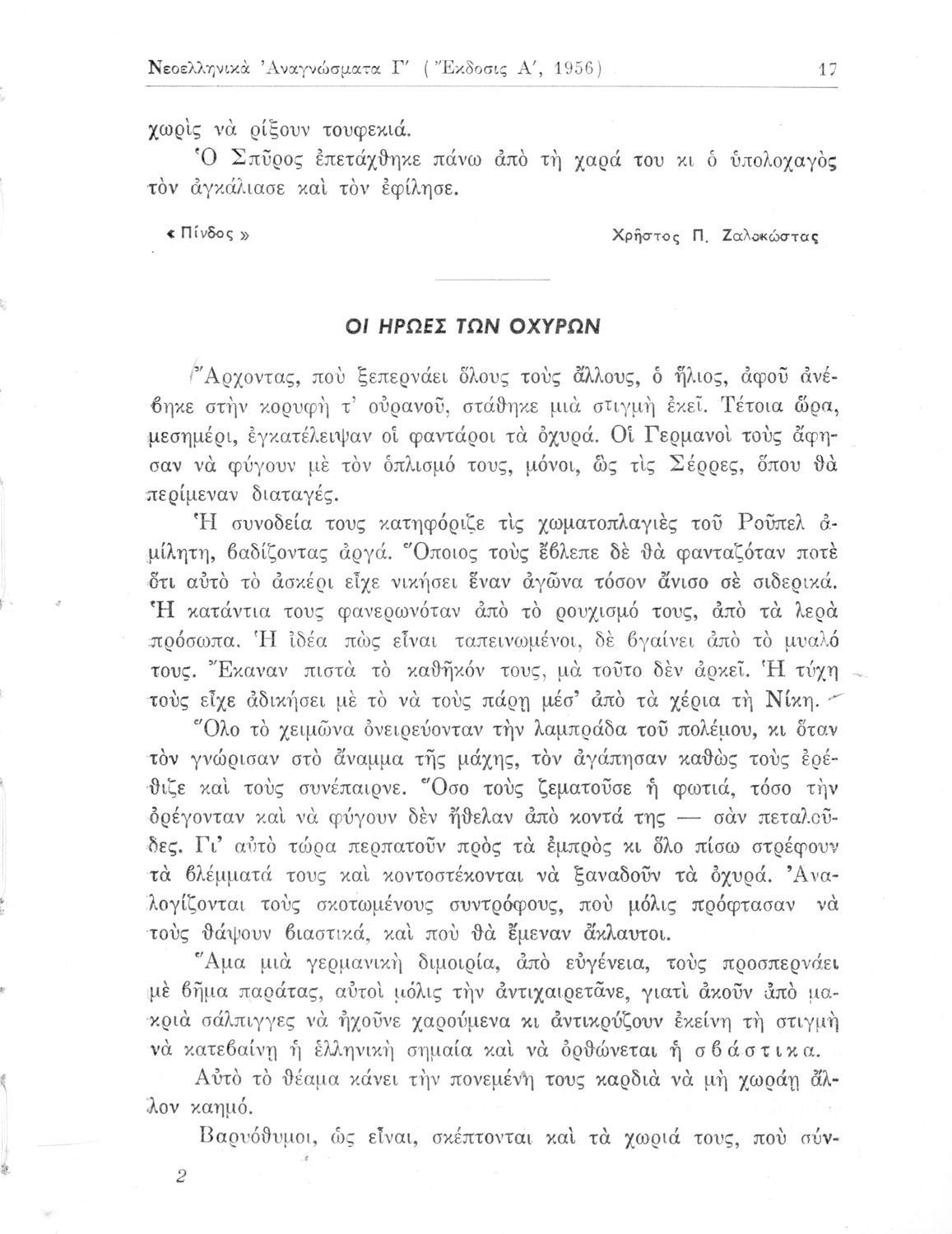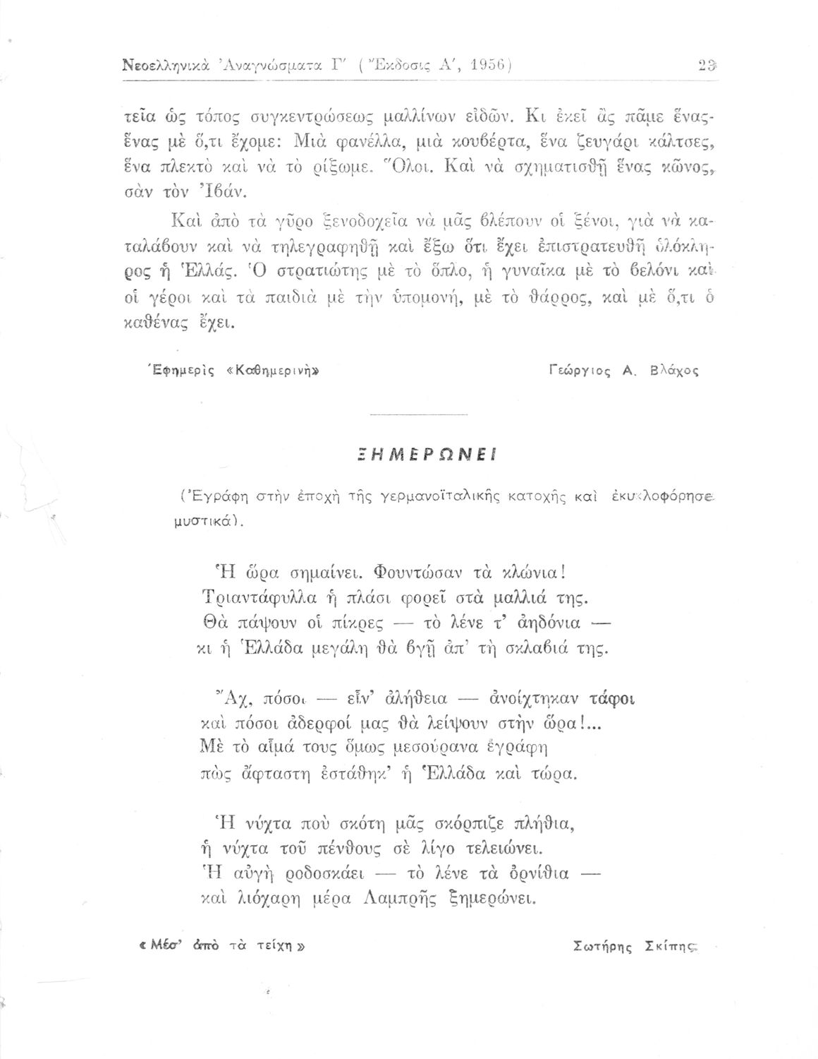 Σχολικό εγχειρίδιο Νέων Ελληνικών Γ΄ Γυμνασίου που περιέχει ποιήματα και πεζά Ελλήνων συγγραφέων εμπνευσμένα από τη θρησκευτική, οικογενειακή και κοινωνική ζωή, την σύγχρονή ελληνική ιστορία και την ελληνική φύση. Περιέχει παράρτημα με βιογραφίες των συγγραφέων και λεξιλόγιο.
