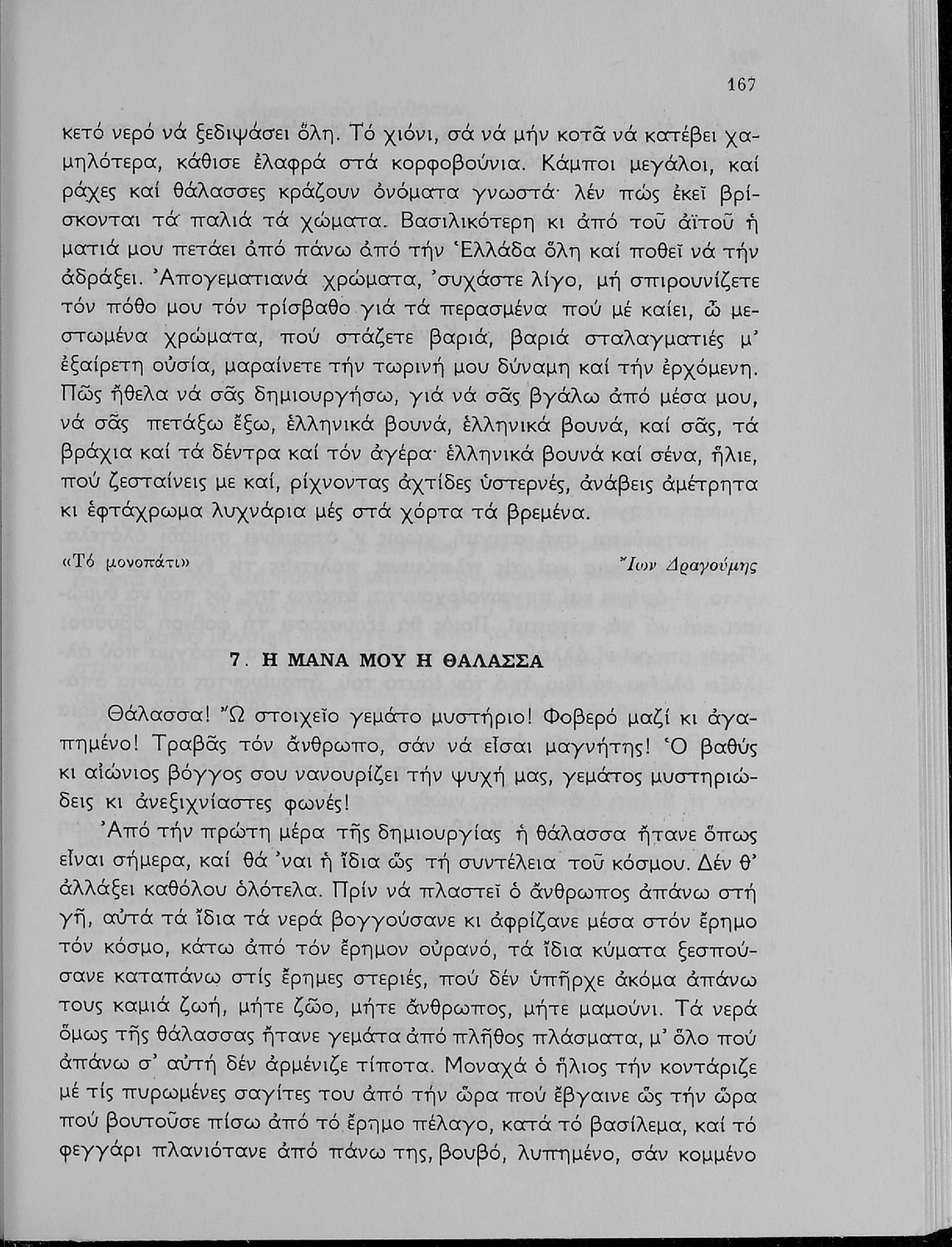 Σχολικό εγχειρίδιο Νέων Ελληνικών Δ΄ Γυμνασίου και Β΄ Αστικού Σχολείου που περιέχει πεζά και ποιήματα Ελλήνων συγγραφέων εμπνευσμένα από τη θρησκευτική και κοινωνική ζωή, την ελληνική μυθολογία, την αρχαία και