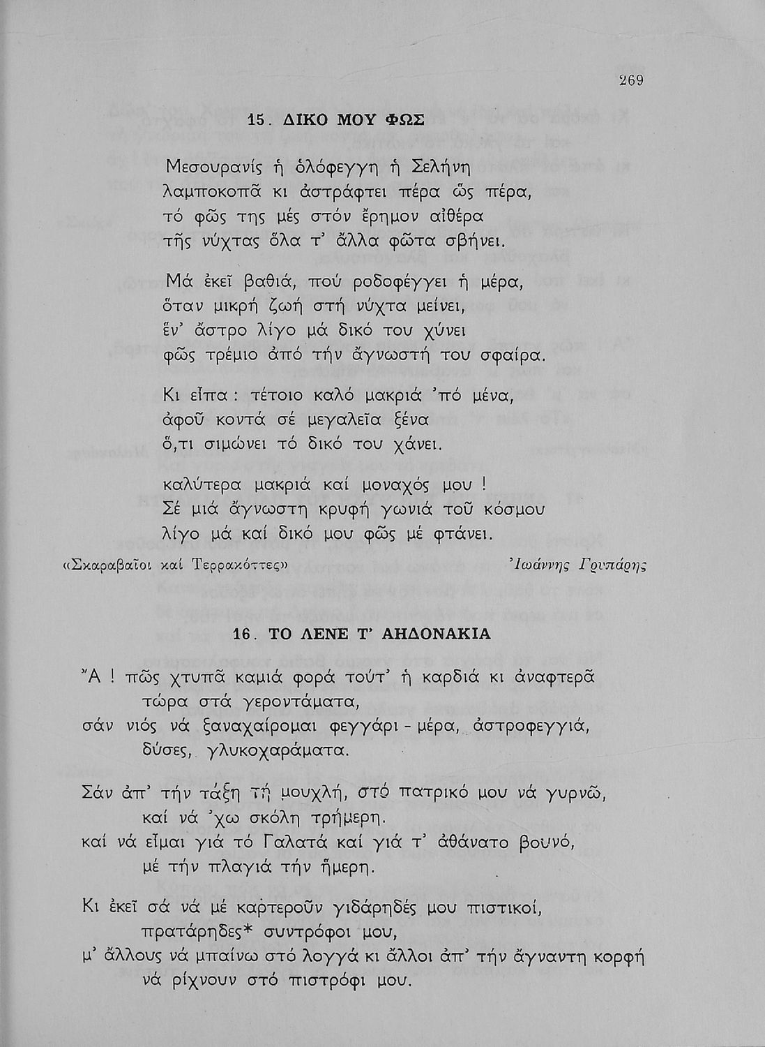 Σχολικό εγχειρίδιο Νέων Ελληνικών Δ΄ Γυμνασίου και Β΄ Αστικού Σχολείου που περιέχει πεζά και ποιήματα Ελλήνων συγγραφέων εμπνευσμένα από τη θρησκευτική και κοινωνική ζωή, την ελληνική μυθολογία, την αρχαία και