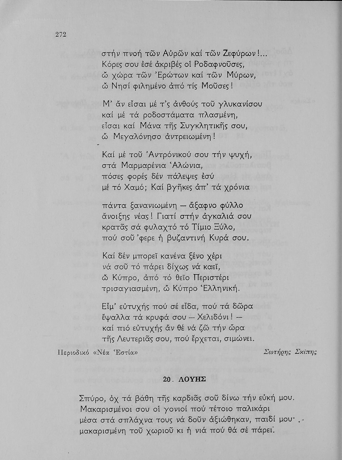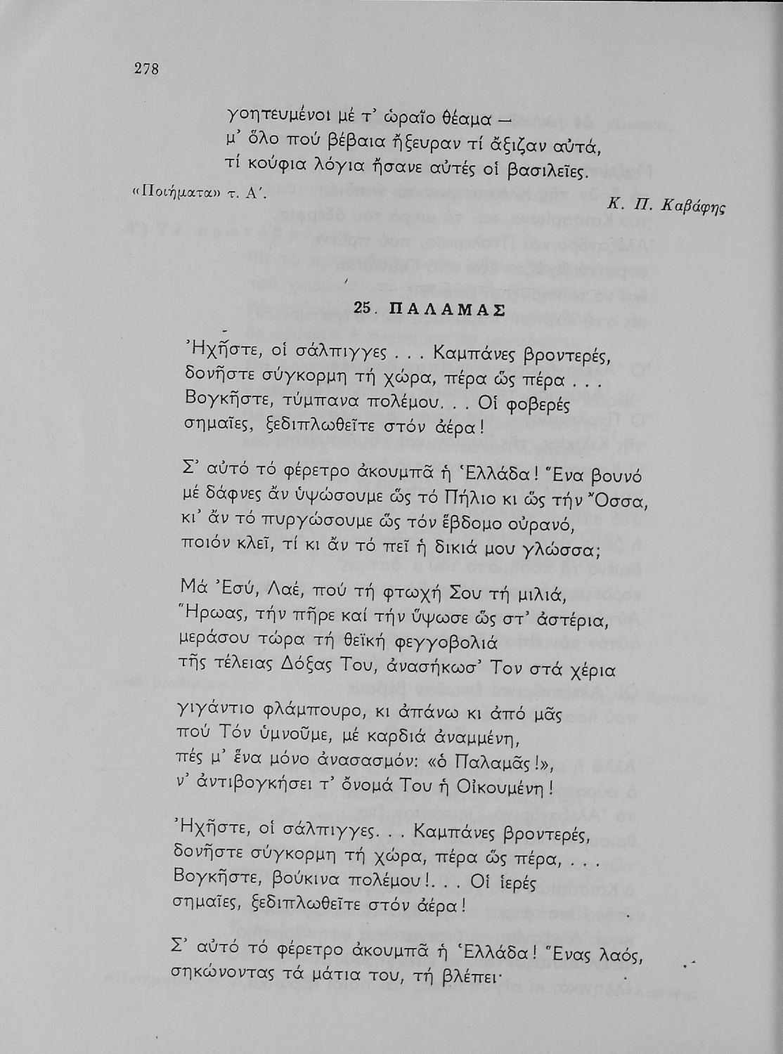 Σχετιζόμενοι όροι:  Παλαμάς, Σεφέρης, Καβάφης, Σικελιανός