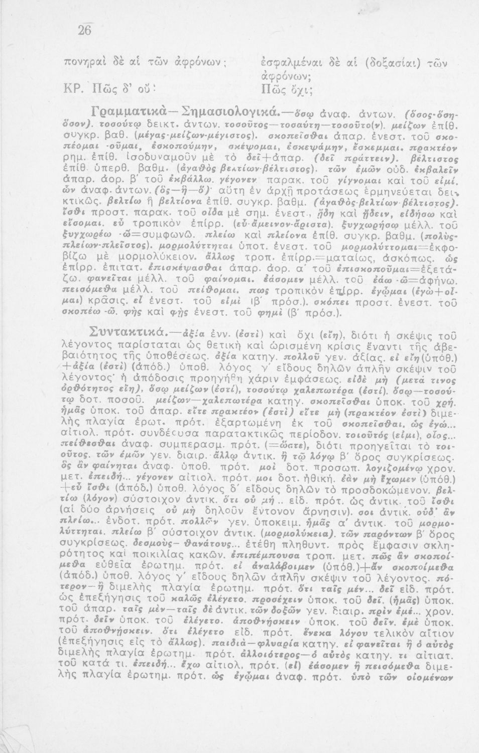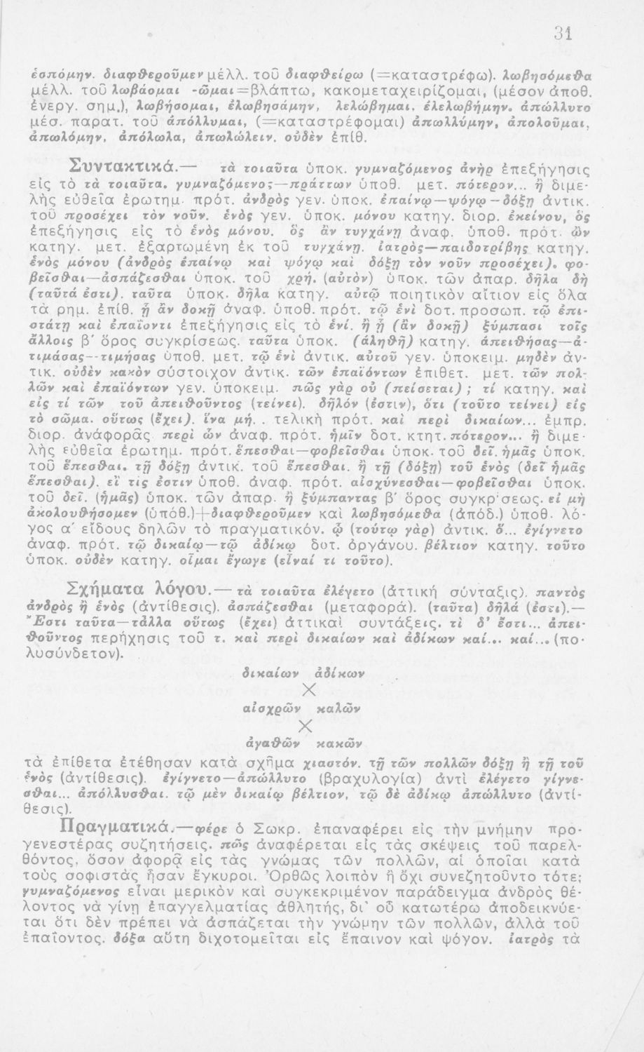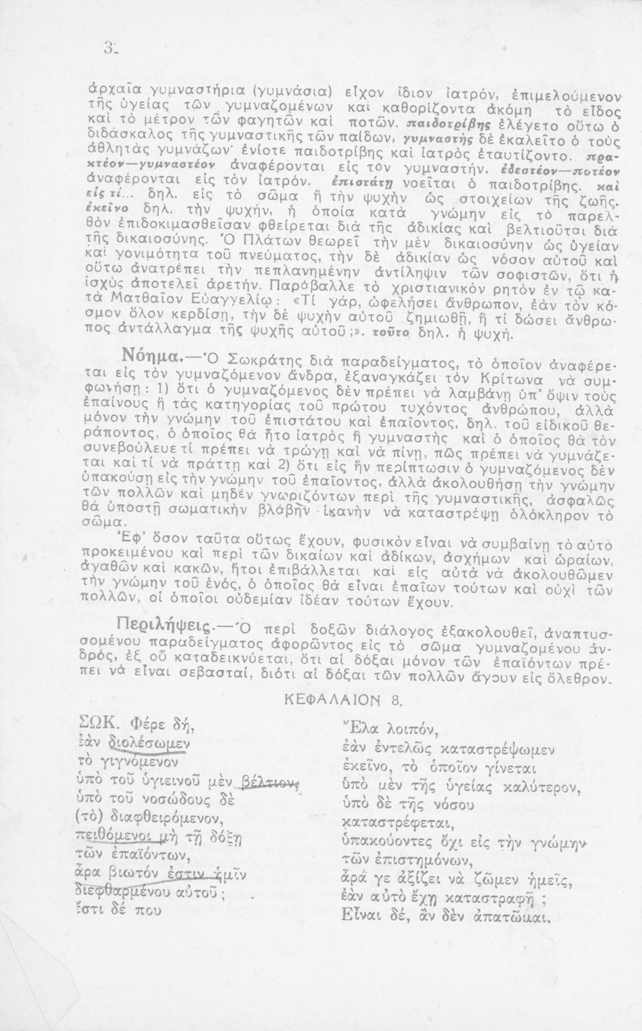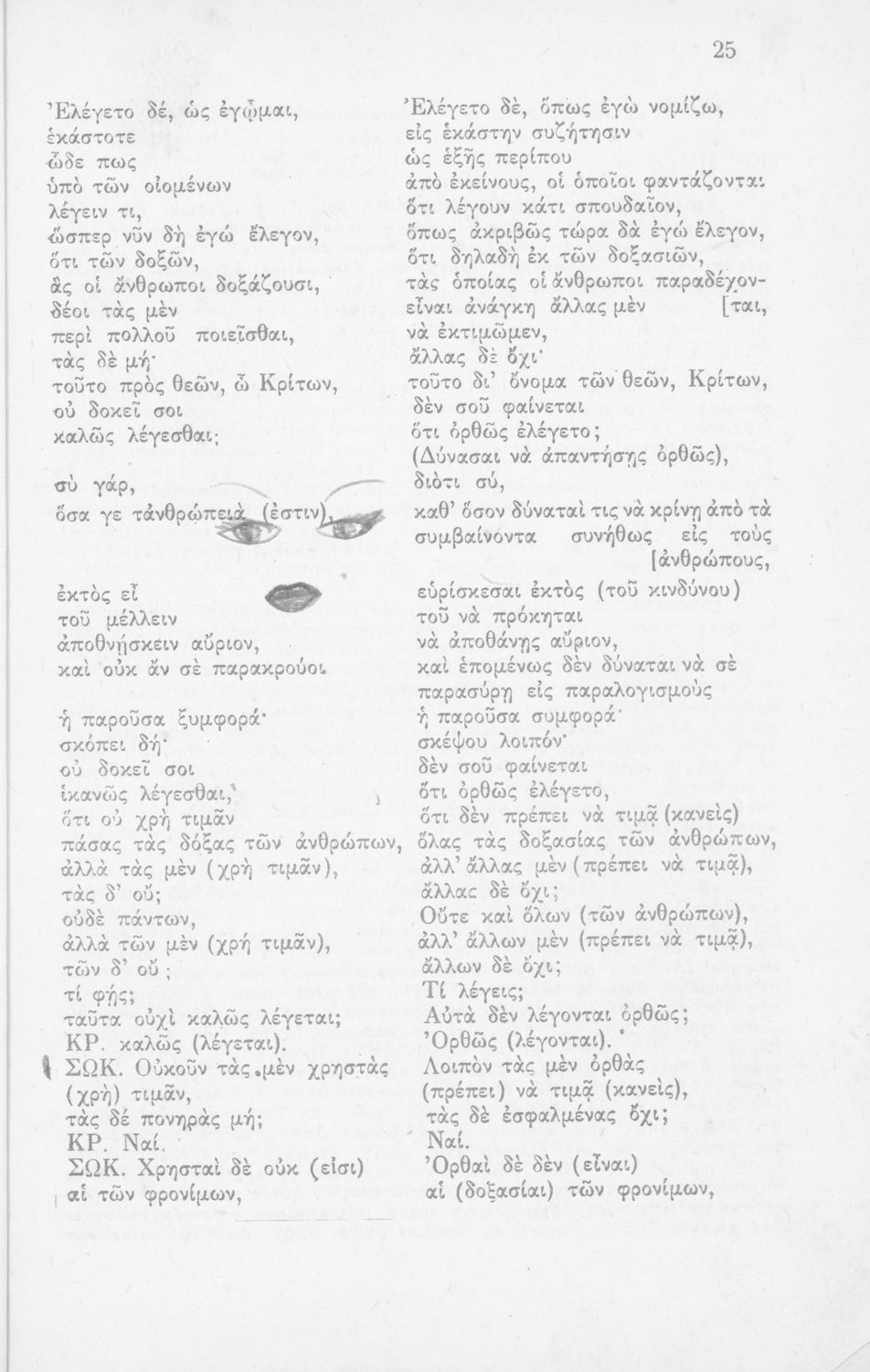 Σχολικό εγχειρίδιο Αρχαίων Ελληνικών για τη Β΄ Λυκείου που περιλαμβάνει έργα του Πλάτωνα με ερμηνευτικά σχόλια του συγγραφέα στη καθαρεύουσα. Το κείμενο είναι πρωτότυπο.