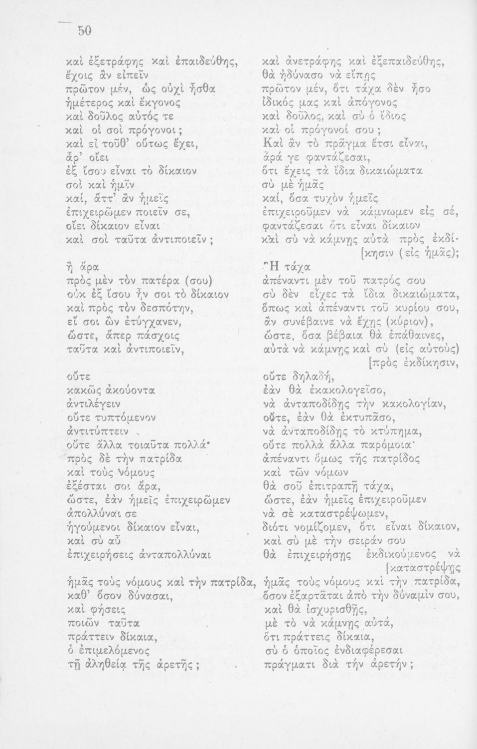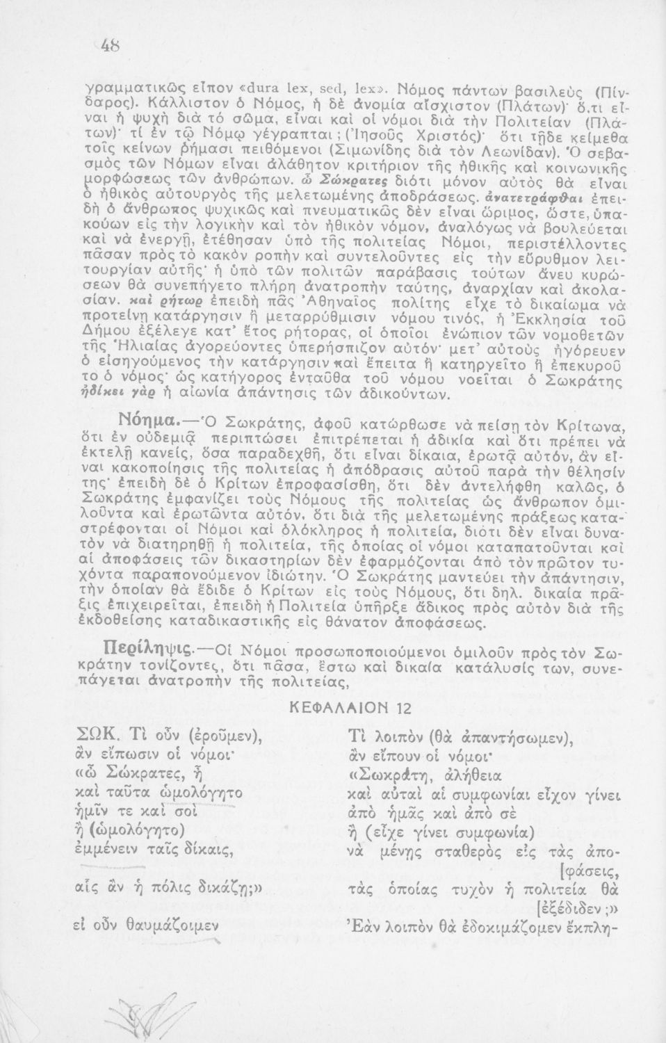 Σχολικό εγχειρίδιο Αρχαίων Ελληνικών για την Ε΄ Γυμνασίου. Περιέχει το πρωτότυπο κείμενο και περιλαμβάνει το διάλογο του Σωκράτη και του Κρίτωνα. Έχει εισαγωγές και ερμηνευτικά σχόλια. Φέρει το σύμβολο της ...