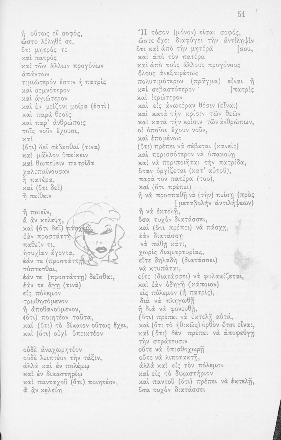 Μαθητικό βοήθημα Αρχαίων Ελληνικών για την Ζ' Γυμνασίου. Περιλαμβάνει μετάφραση, ερμηνευτικά, γραμματικά και συντακτικά σχόλια για το κείμενο του σχολικού βιβλίου. Ο συγγραφέας ήταν καθηγητής. Το βιβλίο κοσμείται από σχέδια του μαθητή.
