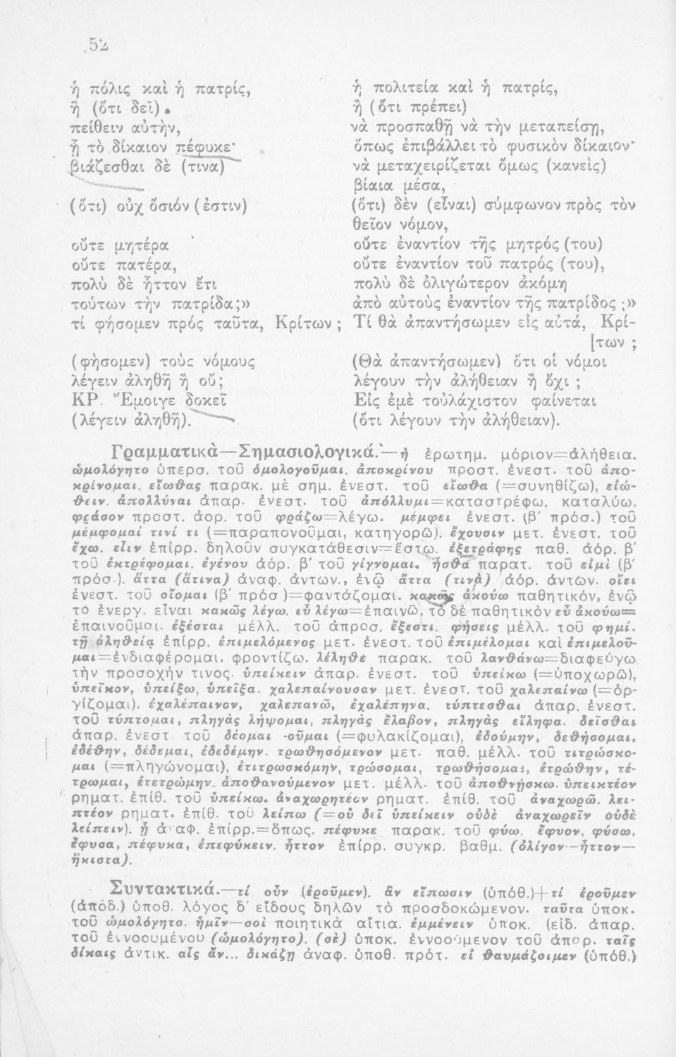 Σχολικό εγχειρίδιο Αρχαίων Ελληνικών Γ΄ Γυμνασίου που περιλαμβάνει το έργο του Πλάτωνα Κρίτων, εισαγωγή, μετάφραση και ερμηνευτικές παρατηρήσεις.