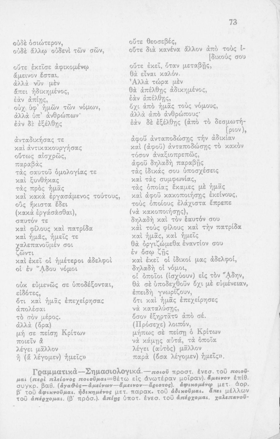 Σχολικό εγχειρίδιο για το μάθημα των Αρχαίων Ελληνικών στο Γυμνάσιο. Περιέχει το αρχαίο κείμενο, καθώς και ερμηνευτικά, πραγματολογικά σχόλια και λεξιλογικές, γραμματικές παρατηρήσεις.
