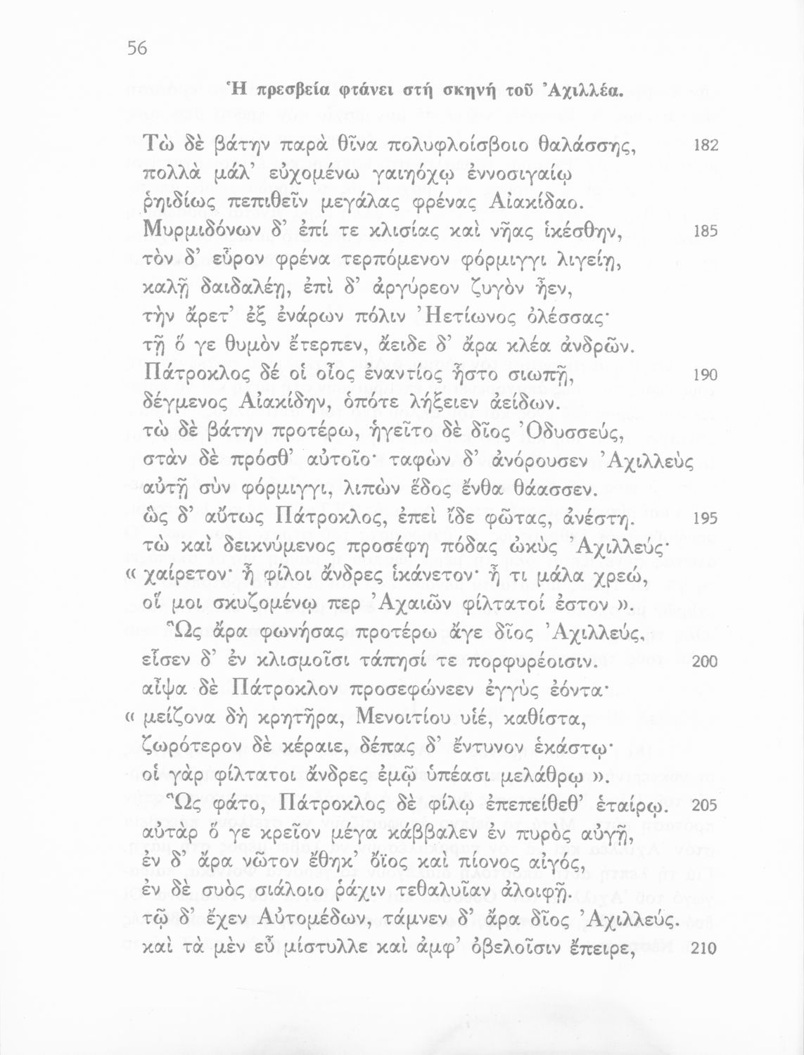 Σχολικό εγχειρίδιο Αρχαίων Ελληνικών Β΄ Λυκείου που περιλαμβάνει εισαγωγή στη Ιλιάδα του Ομήρου, αποσπάσματα από τις Ραψωδίες Α, Γ, Ε, Ζ, Ι, Ω, ερμηνευτικές σημειώσεις και παράρτημα εικόνων και χαρτών.