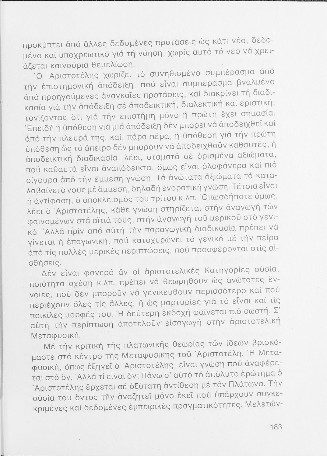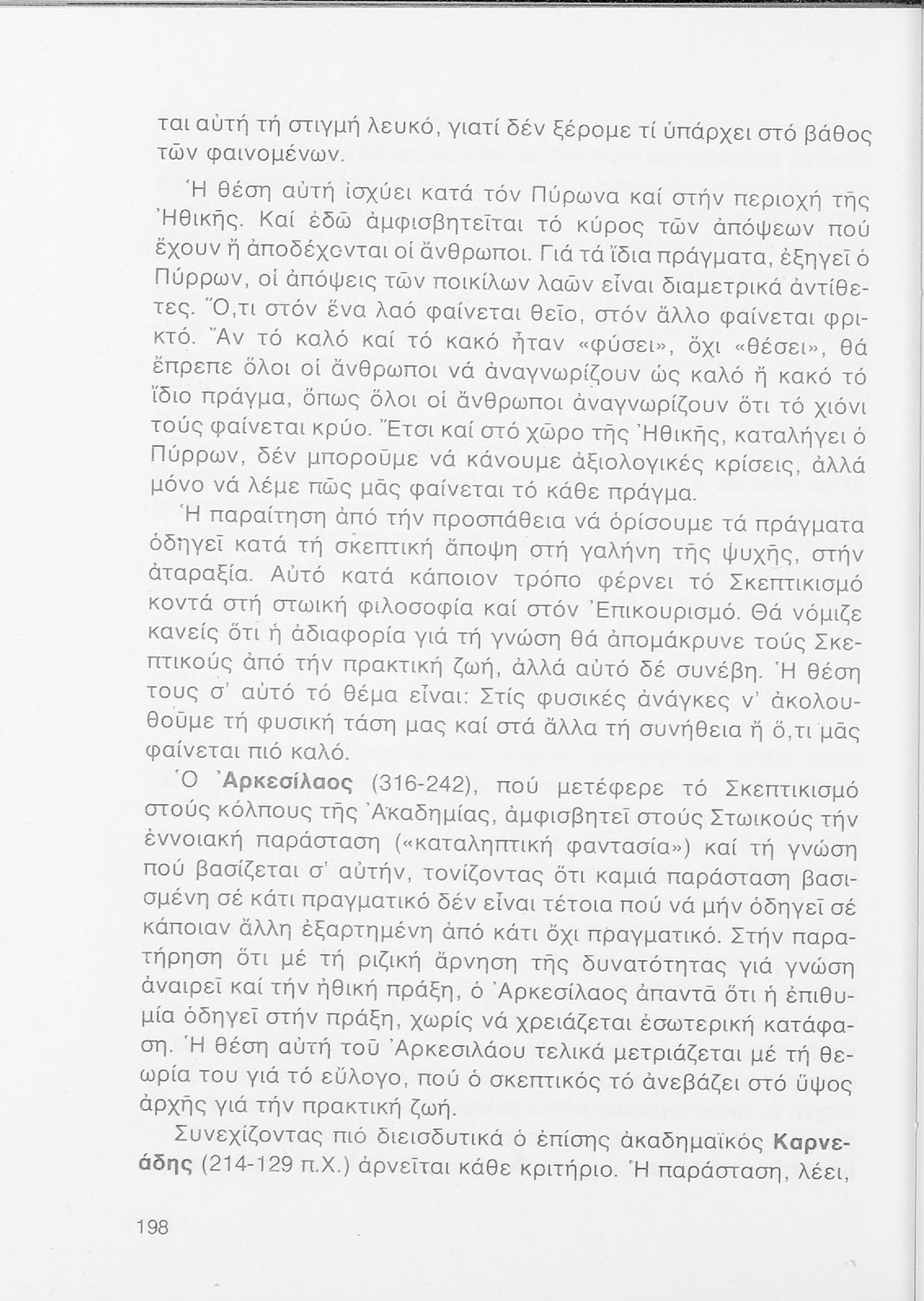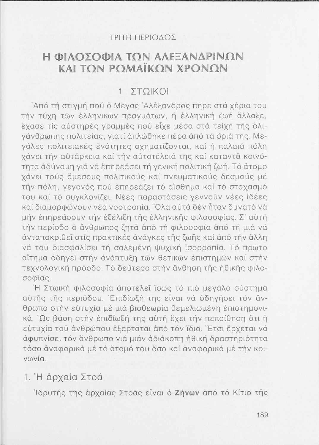 Σχολικό εγχειρίδιο Φιλοσοφίας Γ΄ Λυκείου που ακολουθεί μια ιστορική πραγμάτευση επιστημολογικών, ηθικών και αισθητικών ζητημάτων και καλύπτει δύο περιόδους: α) την ελληνική αρχαιότητα και β) την σύγχρονη ευρωπαϊκή σκέψη από τον Descartes και τον Kant στον λογικό θετικισμό και τον νεοκαντιανισμό. Περιέχει εκτενές κεφάλαιο για τους προσωκρατικούς.