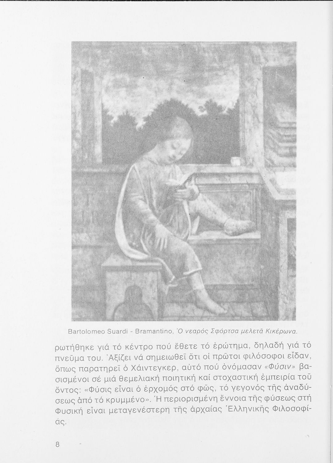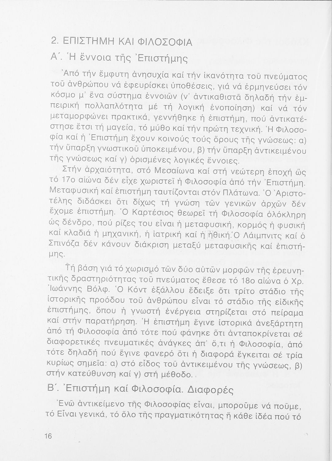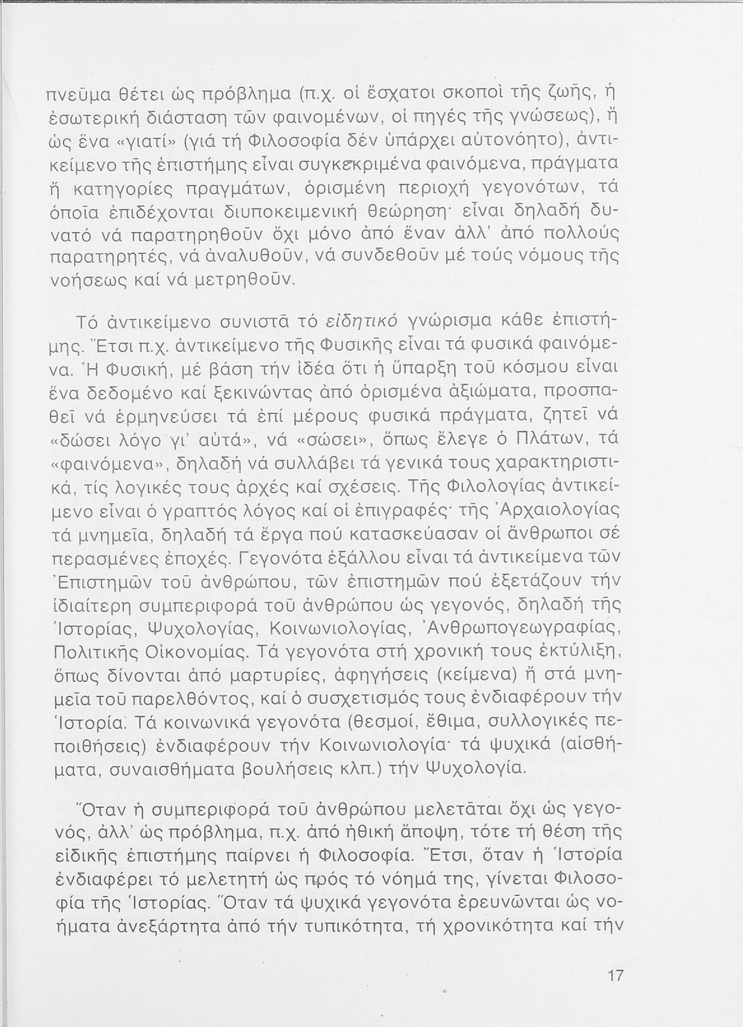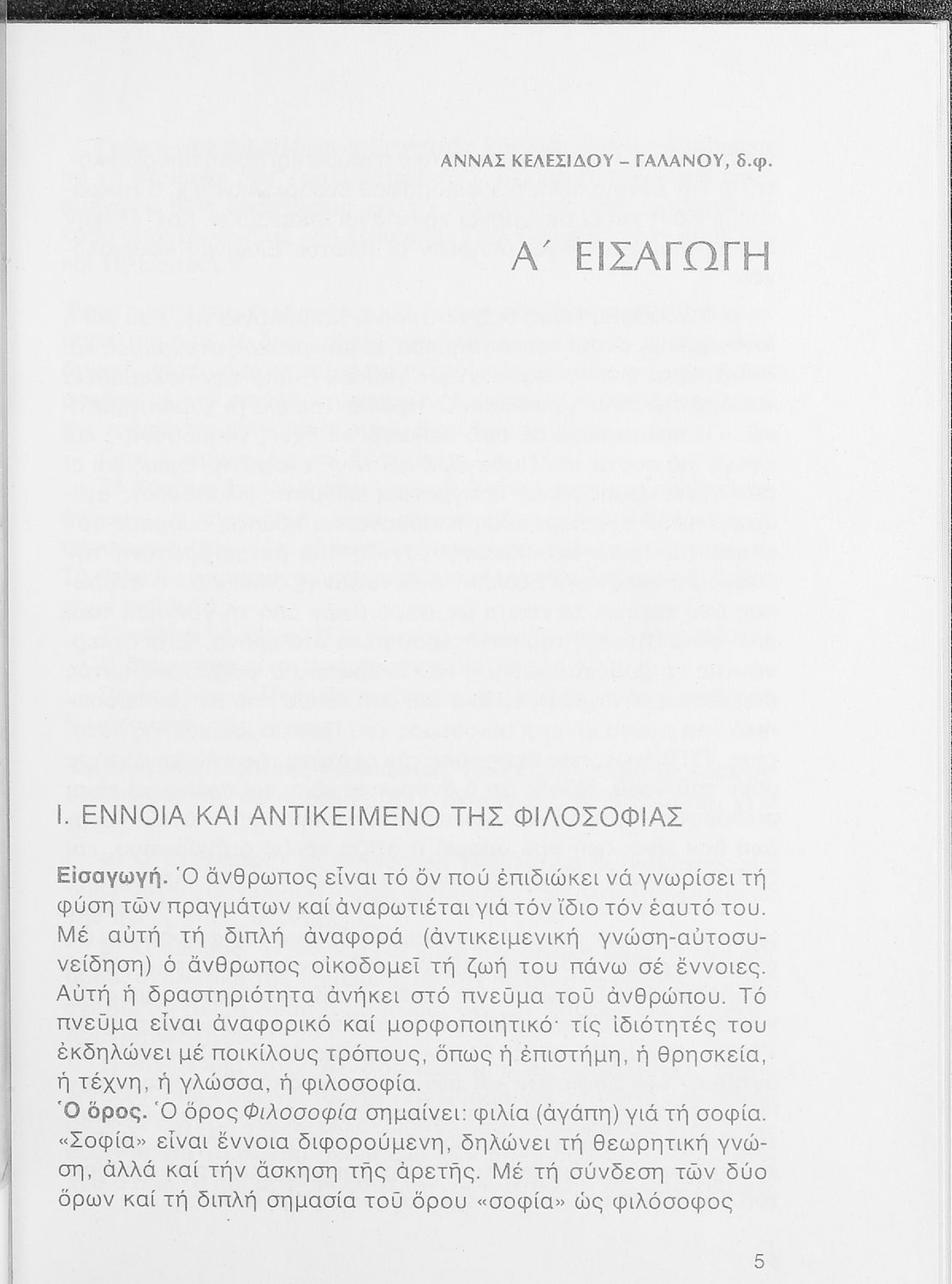 Σχολικό εγχειρίδιο Φιλοσοφίας Γ΄ Λυκείου που ακολουθεί μια ιστορική πραγμάτευση επιστημολογικών, ηθικών και αισθητικών ζητημάτων και καλύπτει δύο περιόδους: α) την ελληνική αρχαιότητα και β) την σύγχρονη ευρωπαϊκή σκέψη από τον Descartes και τον Kant στον λογικό θετικισμό και τον νεοκαντιανισμό. Περιέχει εκτενές κεφάλαιο για τους προσωκρατικούς.