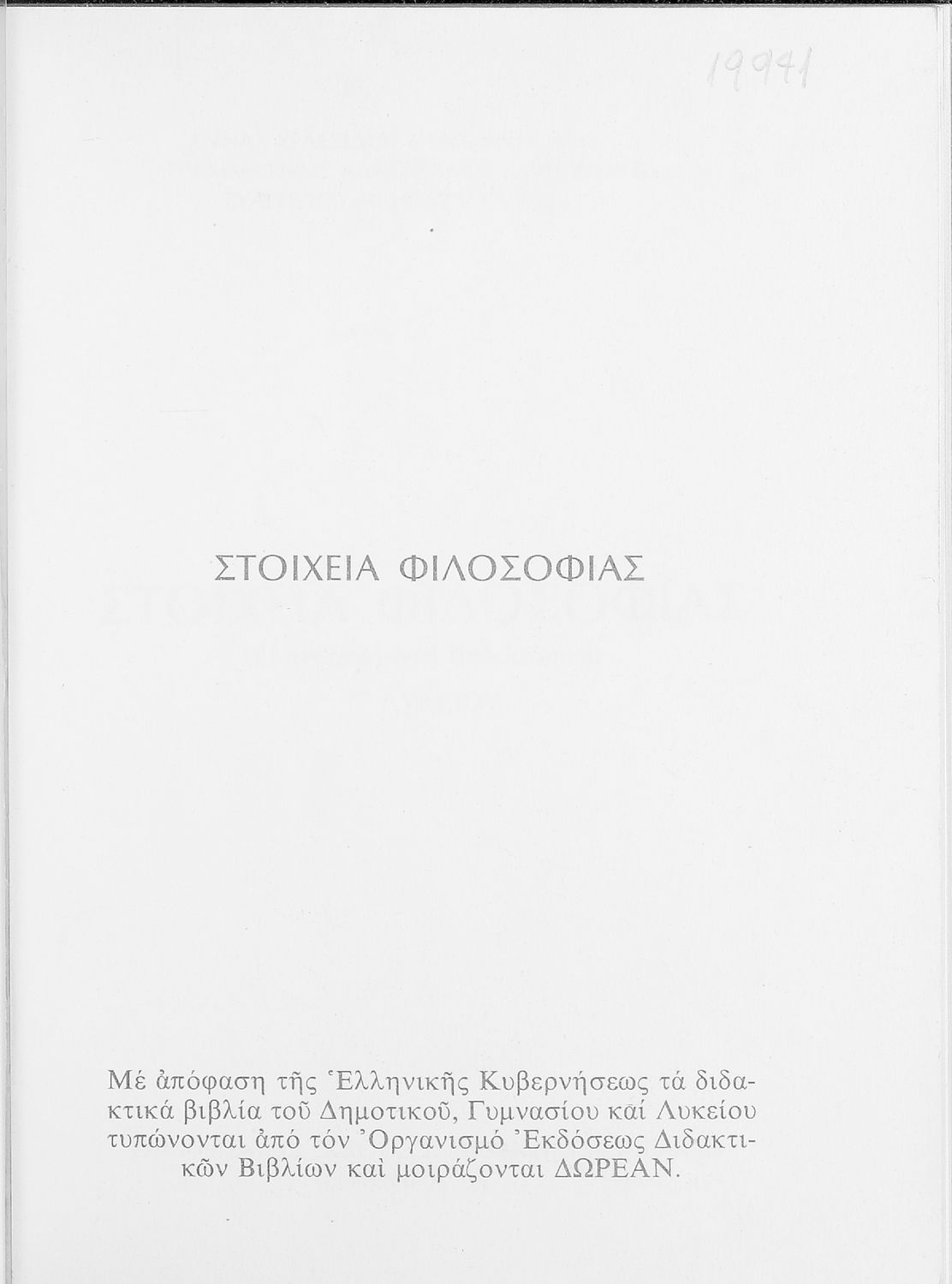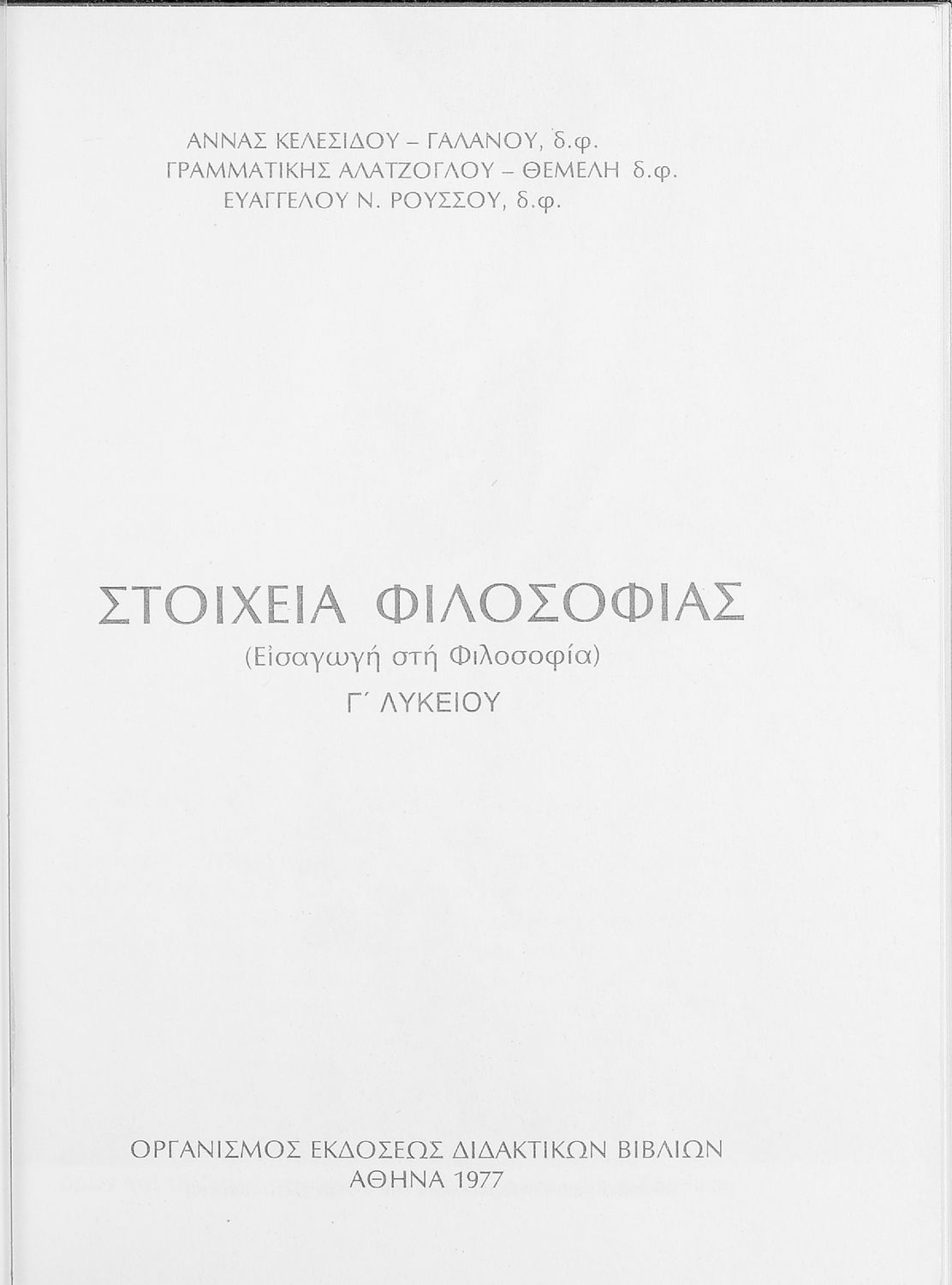Τίτλος: Στοιχεία φιλοσοφίας (εισαγωγή στη φιλοσοφία), Γ΄ Λυκείου