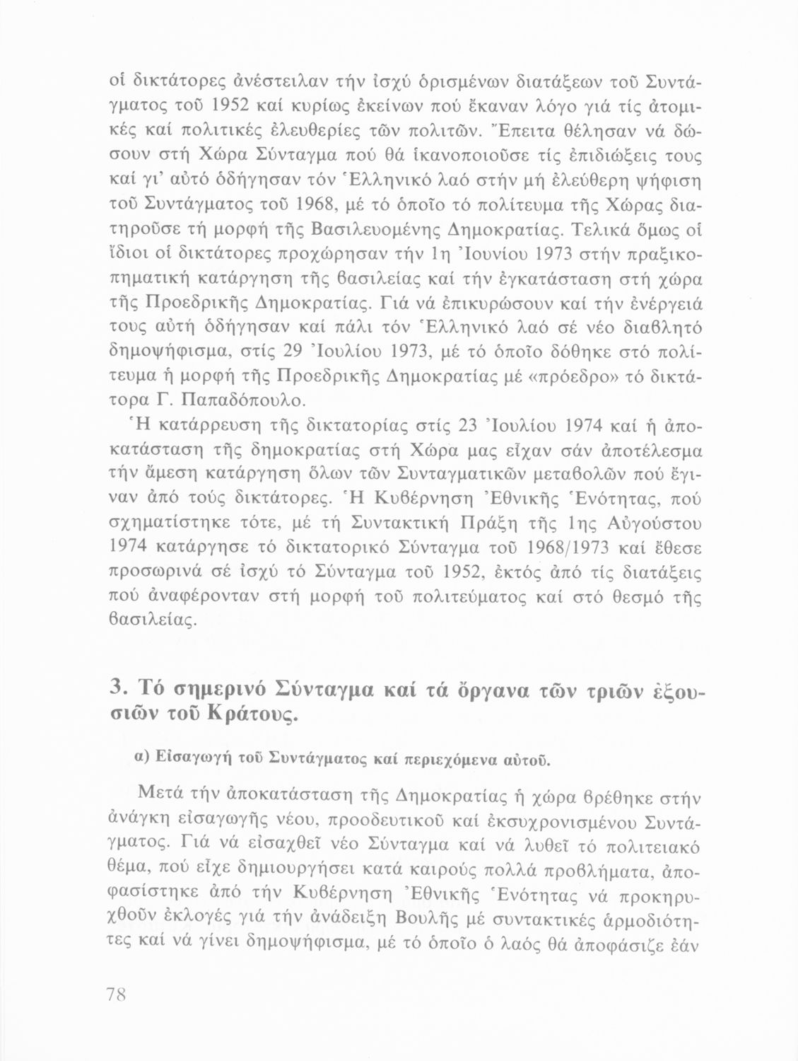 Σχολικό εγχειρίδιο Αγωγής του Πολίτη Γ΄ Γυμνασίου που παρουσιάζει τα στοιχεία του δημοκρατικού πολιτεύματος, τον διαχωρισμό των εξουσιών και τα όργανα του κράτους, και τους Διεθνείς Οργανισμούς. Περιλαμβάνει το κείμενο του Ελληνικού Συντάγματος.
