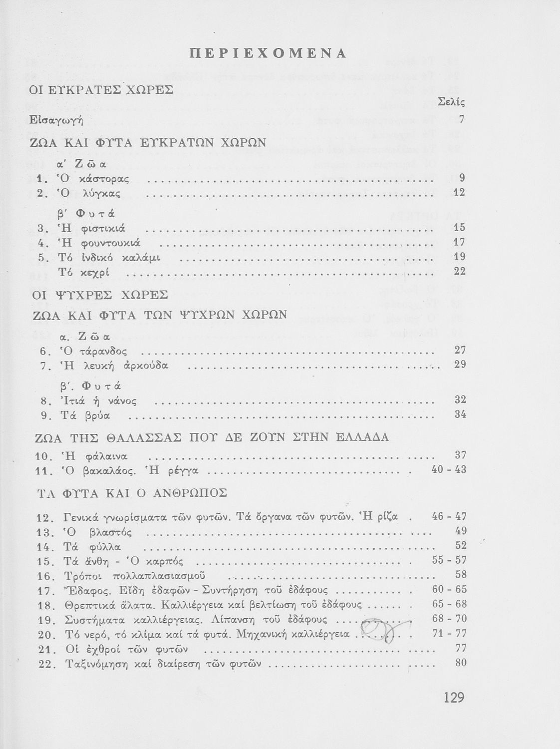 Σχολικό εγχειρίδιο της Ε΄ Δημοτικού για το μάθημα της Φυσικής Ιστορίας στο Δημοτικό. Περιέχει πληροφορίες για την ζωολογία φυτολογία και την ορυκτολογία. Το βιβλίο έχει εικόνες, οι οποίες διευκολύνουν τη διδασκαλία. Ο λόγος των κειμένων είναι απλός και κατανοητός για τους μαθητές.