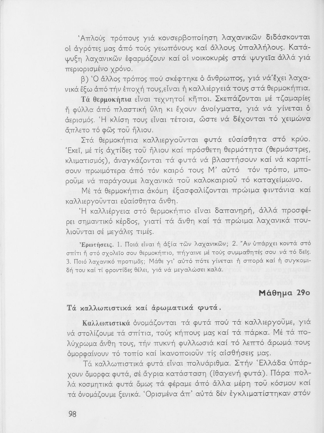 Βαθμίδα εκπαίδευσης: Πρωτοβάθμια Τάξη: Ε' Δημοτικού Μάθημα: Φυσική Ιστορία Γλώσσα: Δημοτική Παρουσίαση περιεχομένου: Σχολικό εγχειρίδιο της Ε΄ Δημοτικού για το μάθημα της Φυσικής Ιστορίας στο Δημοτικό. Περιέχει πληροφορίες για την ζωολογία φυτολογία και την ορυκτολογία. Το βιβλίο έχει εικόνες, οι οποίες διευκολύνουν τη διδασκαλία. Ο λόγος των κειμένων είναι απλός και κατανοητός για τους μαθητές. |
