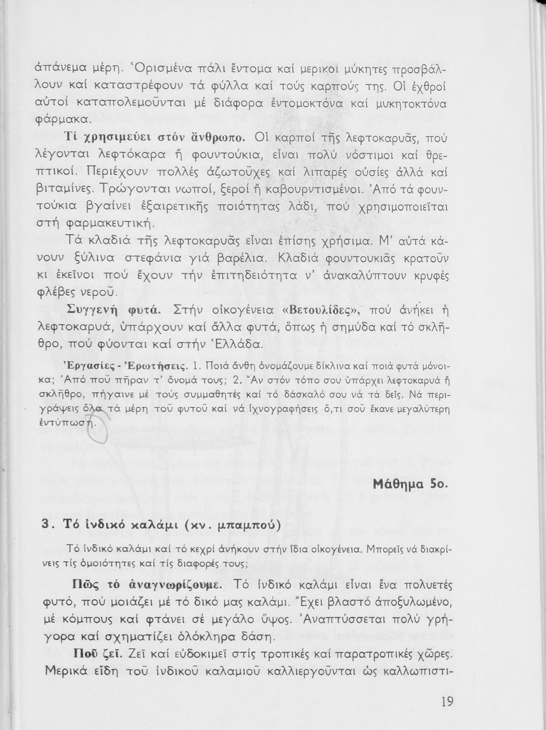 Βαθμίδα εκπαίδευσης: Πρωτοβάθμια Τάξη: Ε' Δημοτικού Μάθημα: Φυσική Ιστορία Γλώσσα: Δημοτική Παρουσίαση περιεχομένου: Σχολικό εγχειρίδιο της Ε΄ Δημοτικού για το μάθημα της Φυσικής Ιστορίας στο Δημοτικό. Περιέχει πληροφορίες για την ζωολογία φυτολογία και την ορυκτολογία. Το βιβλίο έχει εικόνες, οι οποίες διευκολύνουν τη διδασκαλία. Ο λόγος των κειμένων είναι απλός και κατανοητός για τους μαθητές. |