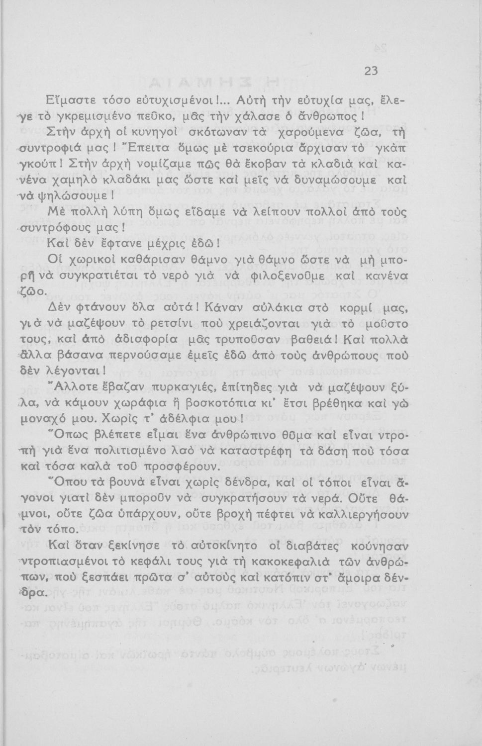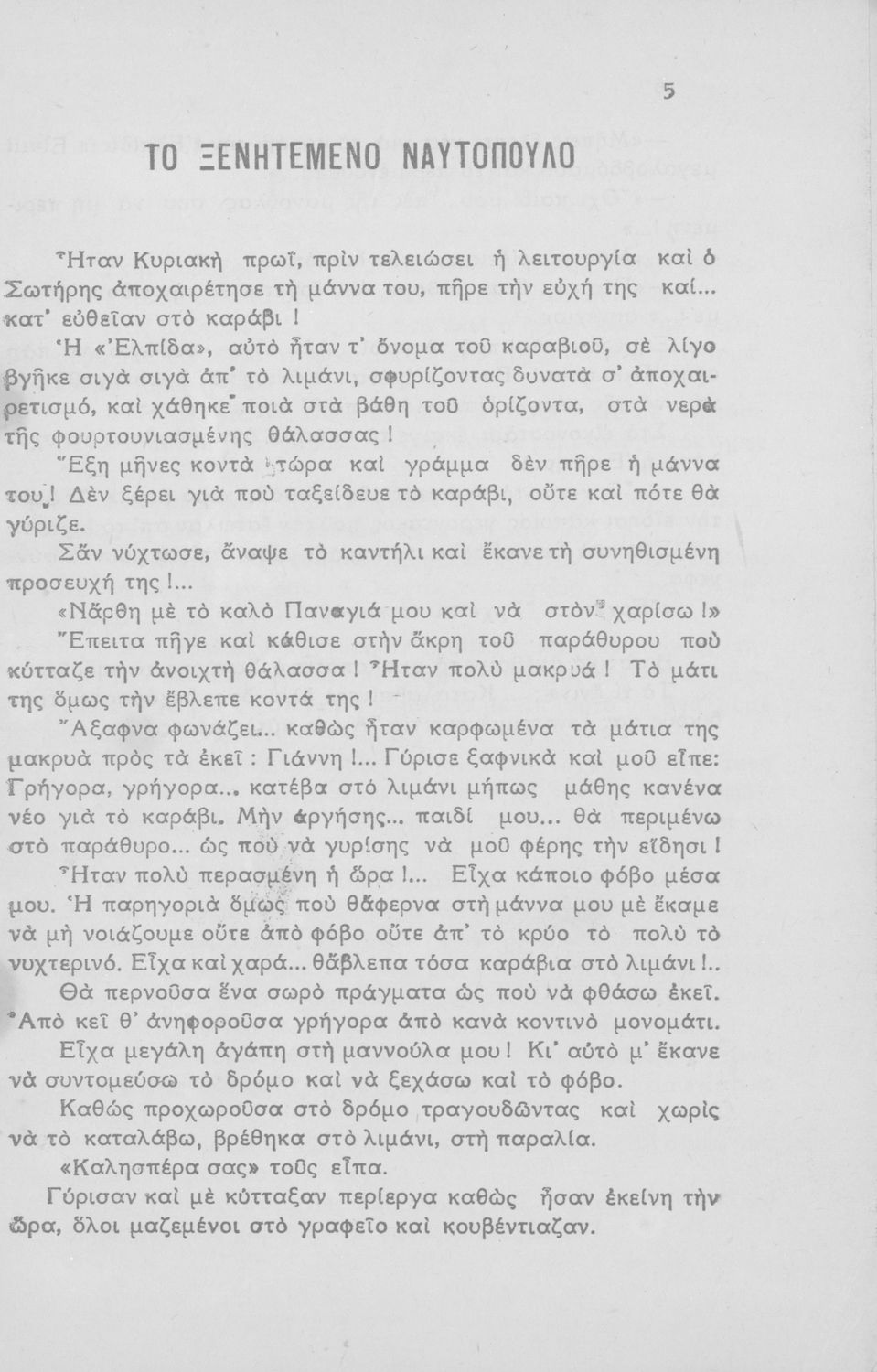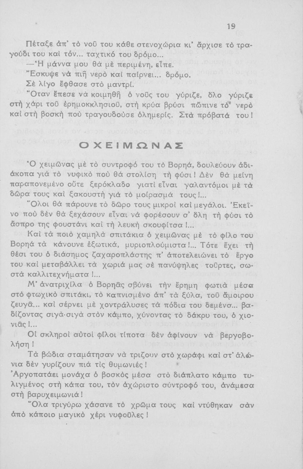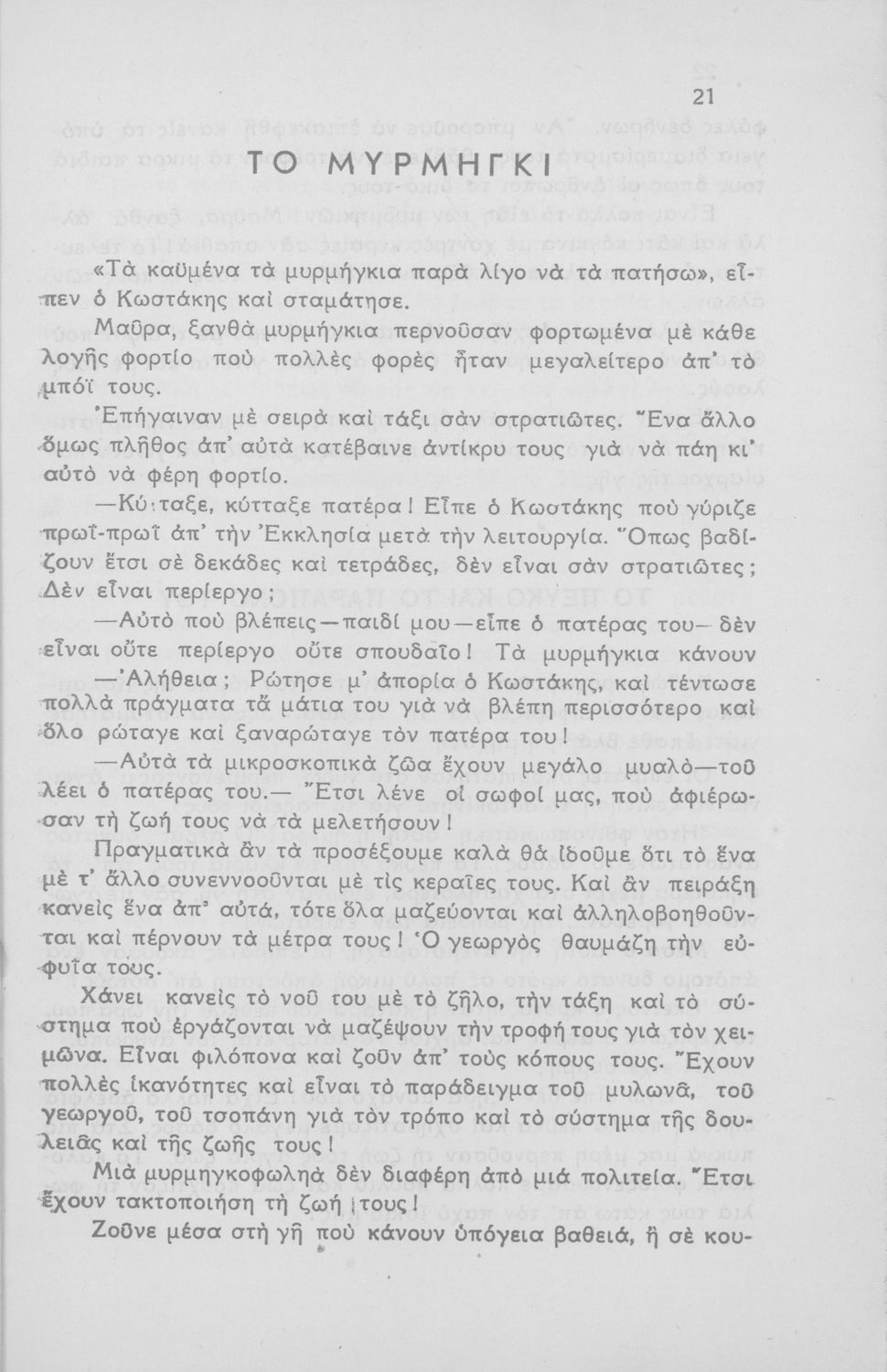 Εξωσχολικό ανάγνωσμα για μαθητές του Δημοτικού που περιλαμβάνει σύντομα διηγήματα εμπνευσμένα από τη κοινωνική ζωή, τη φύση και το συναίσθημα. Ο συγγραφέας είναι υπάλληλος του Υπουργείου Παιδείας.