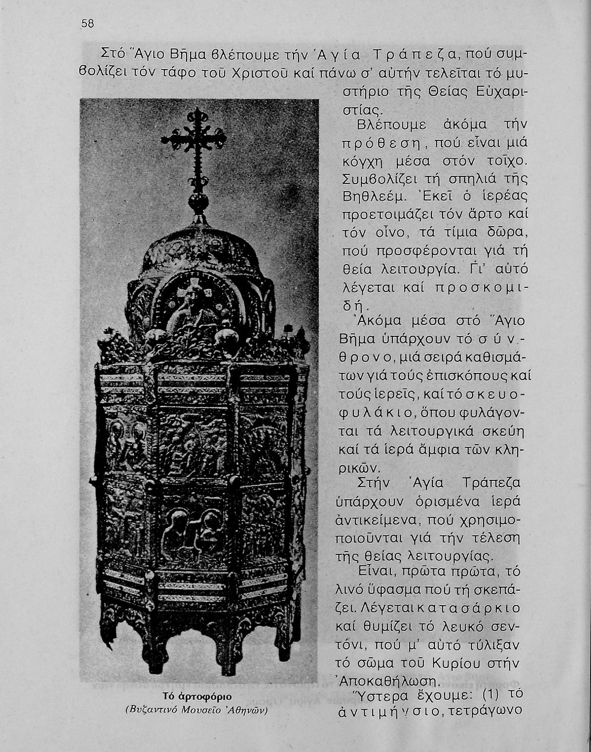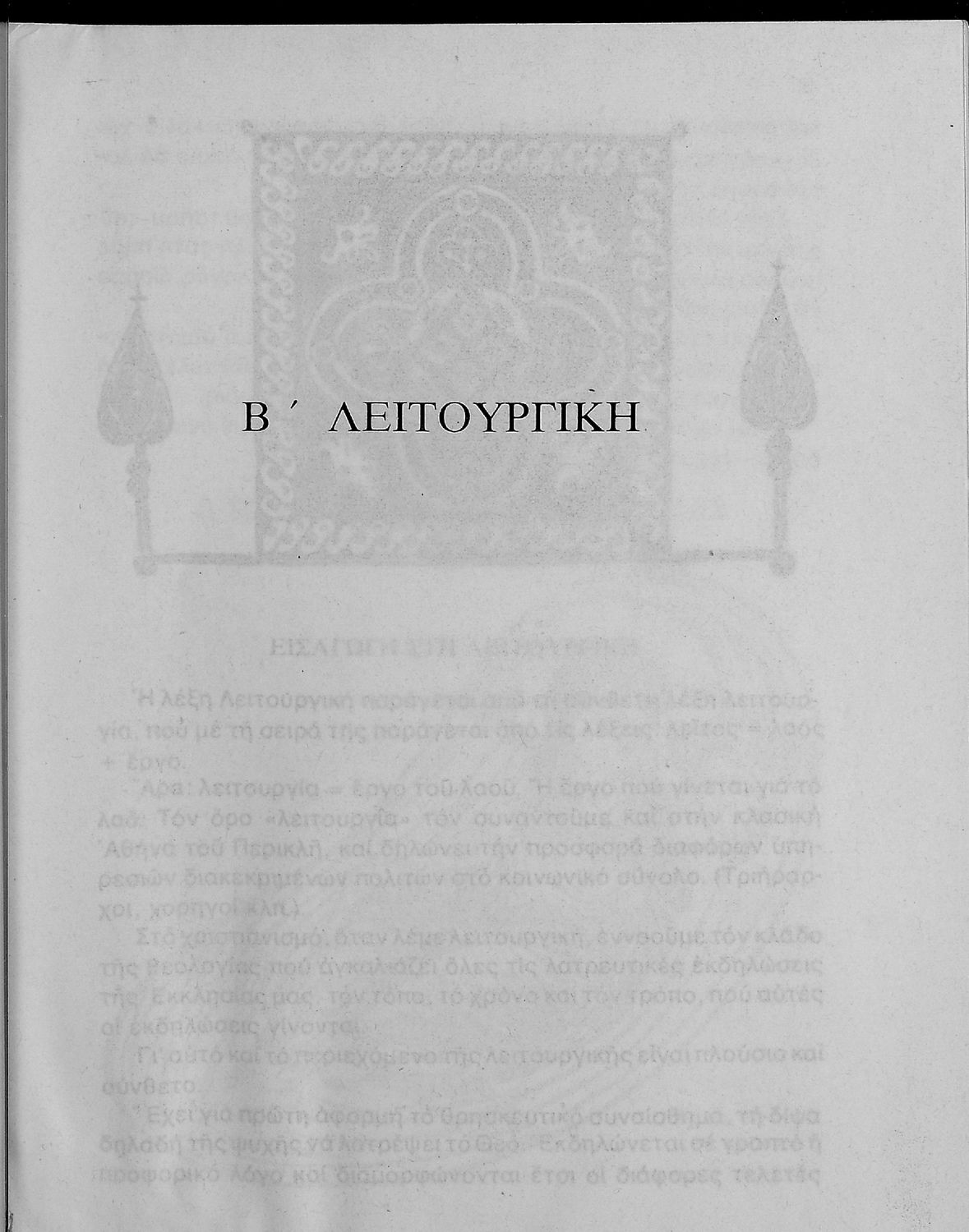 Σχολικό εγχειρίδιο Θρησκευτικών ΣΤ΄ Δημοτικού που πραγματεύεται ζητήματα εκκλησιαστικής κατήχησης και λειτουργίας.