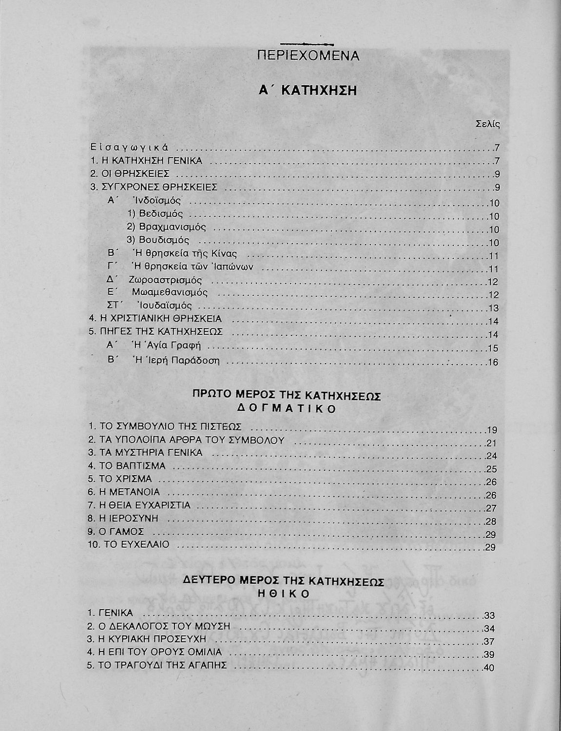 Σχολικό εγχειρίδιο Θρησκευτικών ΣΤ΄ Δημοτικού που αναλύει την έννοια της κατήχησης στις διάφορες θρησκείες με έμφαση στο ορθόδοξο χριστιανικό δόγμα, το οποίο εξετάζει από δογματική και ηθική σκοπιά. Περιλαμβάνει και στοιχεία λειτουργικής της Ορθόδοξης Εκκλησίας.