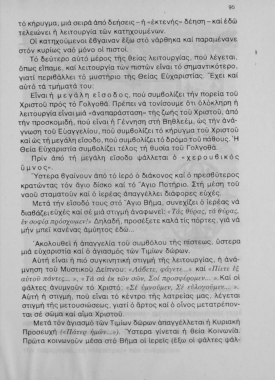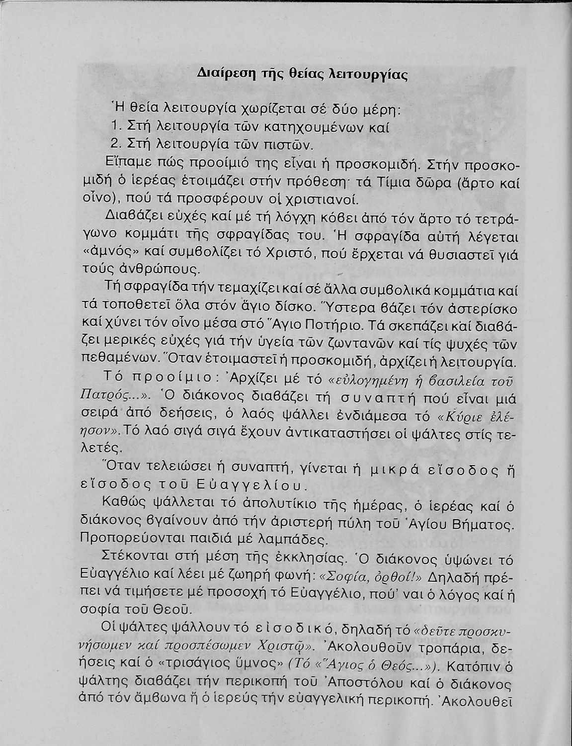 LDR 01340 2200217 4500 035 ## _a01-19956 040 ## _aΙνστιτούτο Εκπαιδευτικής Πολιτικής 041 ## _ael 100 ## _aΜατθαίος Μουντές 110 ## _a19956 245 0# _aΚατήχηση και λειτουργική για την έκτη Δημοτικού 250 ## _a3η Έκδοση 260 ## _aΑθήνα _bΟργανισμός Εκδόσεως Διδακτικών Βιβλίων _c1977 300 ## _a103 _bΕικόνες _c20 520 ## _aΣχολικό εγχειρίδιο Θρησκευτικών ΣΤ΄ Δημοτικού που αναλύει την έννοια της κατήχησης στις διάφορες θρησκείες με έμφαση στο ορθόδοξο χριστιανικό δόγμα, το οποίο εξετάζει από δογματική και ηθική σκοπιά. Περιλαμβάνει και στοιχεία λειτουργικής της Ορθόδοξης Εκκλησίας. 521 ## _aΣΤ' Δημοτικού 522 ## _aΕλλάδα 546 ## _aΔημοτική 563 ## _aΜαλακό Εξώφυλλο 583 ## _a2795/11-2-1977 _c1977 650 #4 _aΓιορτές _aΔόγματα της εκκλησίας _aΘεία λειτουργία _aΝαοί _aΠροσευχές