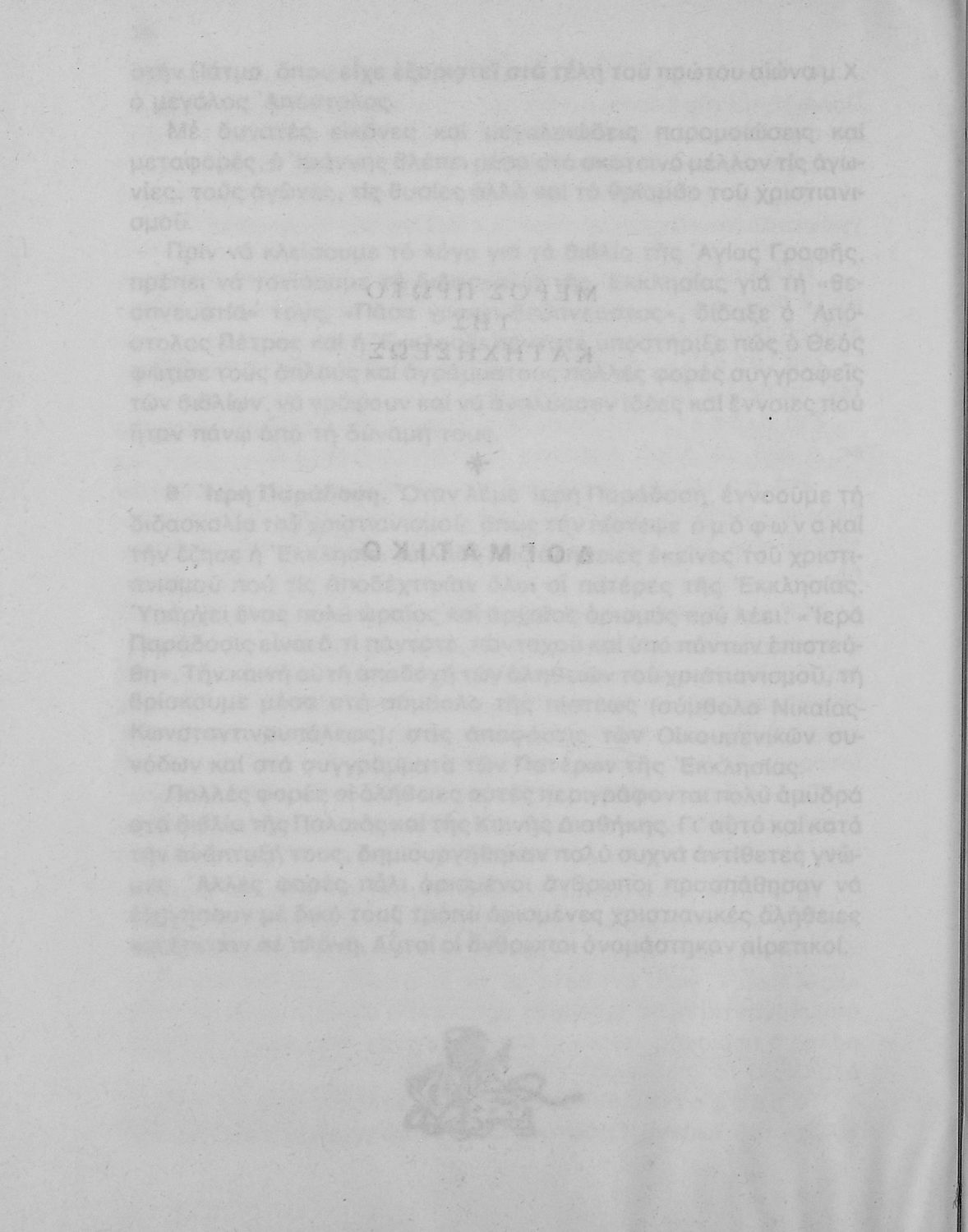 Σχολικό εγχειρίδιο Θρησκευτικών ΣΤ΄ Δημοτικού που αναλύει την έννοια της κατήχησης με έμφαση στο ορθόδοξο χριστιανικό δόγμα, το οποίο εξετάζει από δογματική και ηθική σκοπιά. Περιλαμβάνει και στοιχεία ...