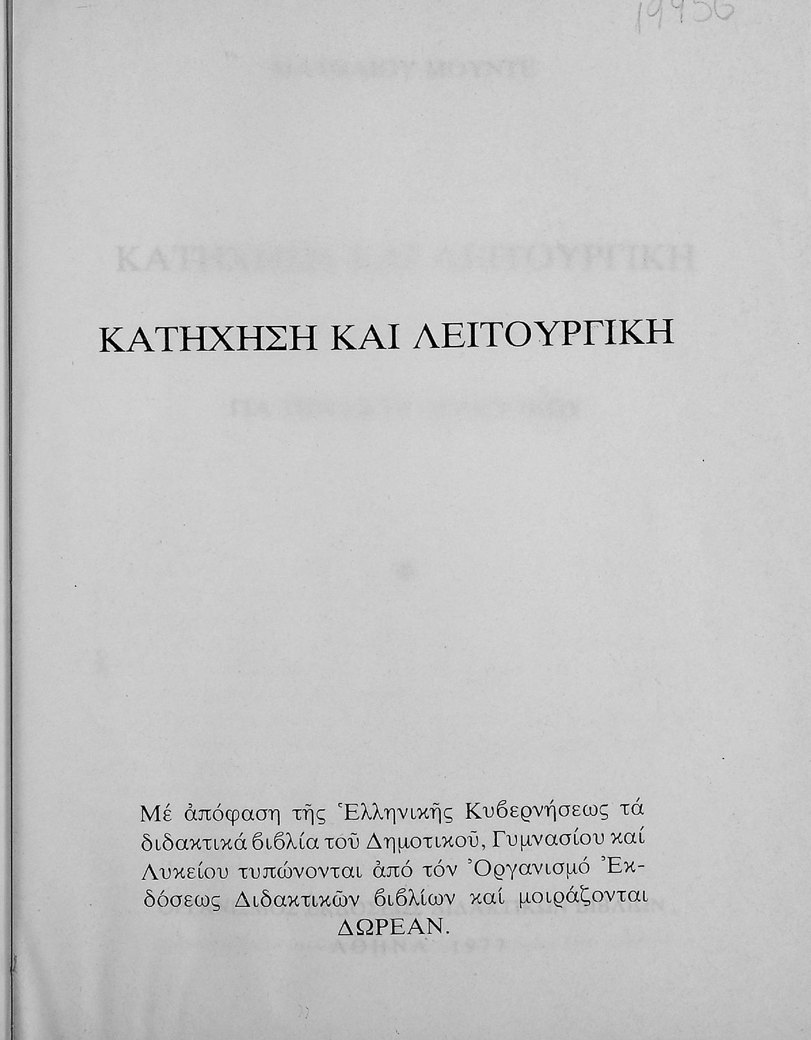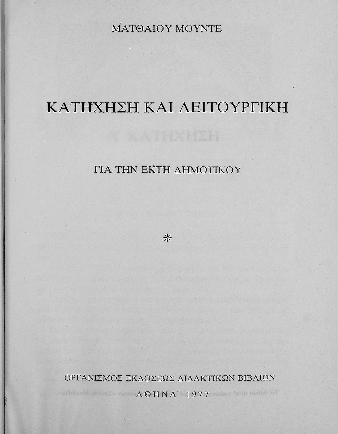 Τίτλος: Κατήχηση και λειτουργική για την έκτη Δημοτικού