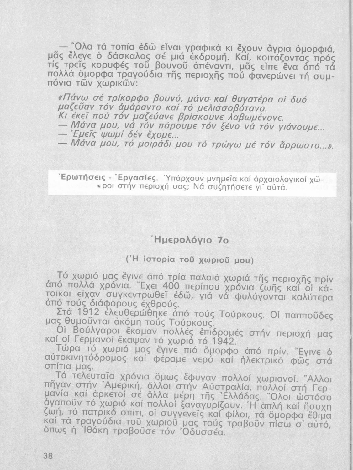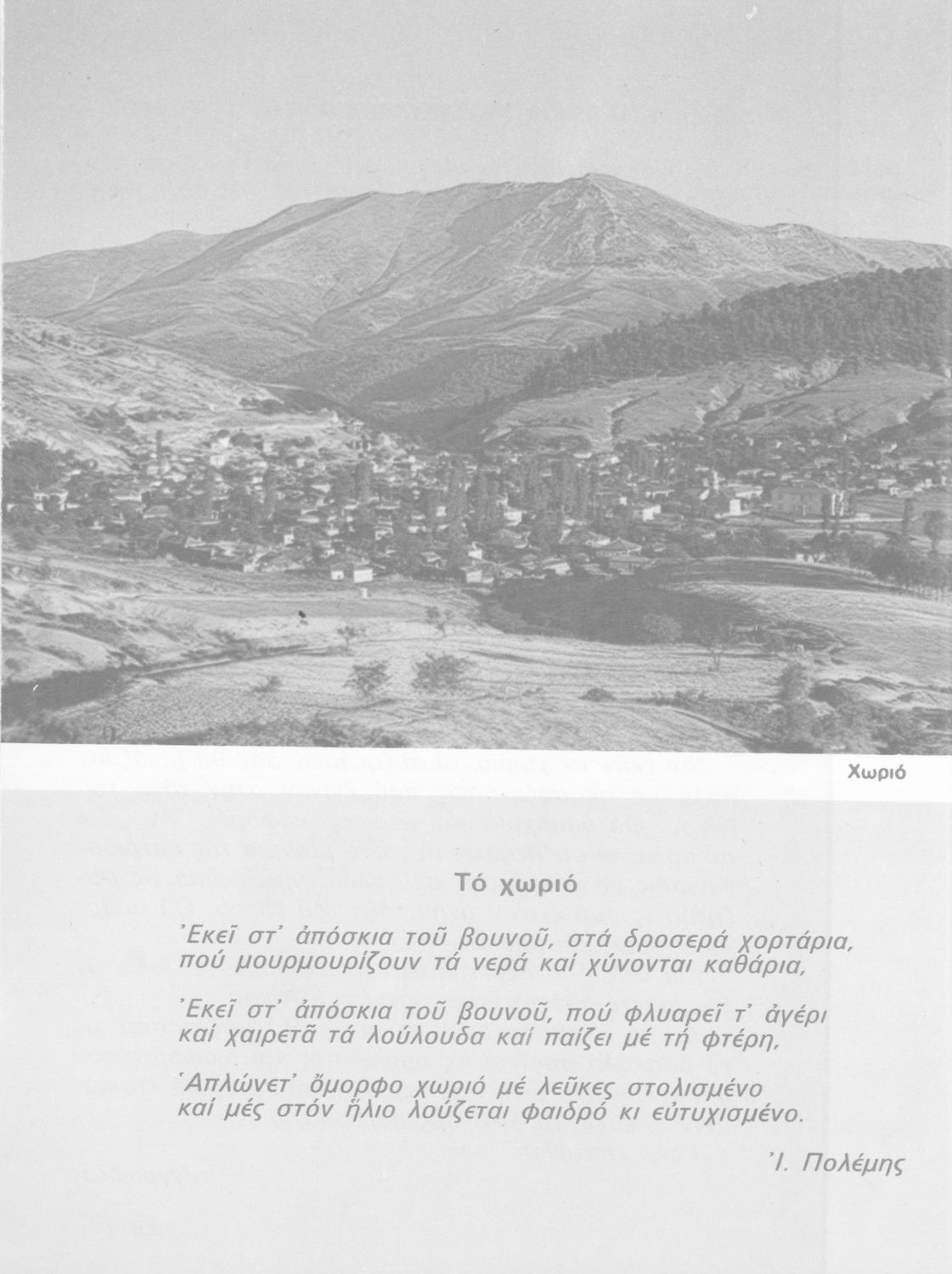 Σχολικό εγχειρίδιο Γεωγραφίας Γ ΄ και Δ' Δημοτικού. Το πρώτο μέρος του βιβλίου απευθύνεται σε μαθητές της Γ' Δημοτικού και αποτελεί μια εισαγωγή στην πατριδογνωσία με έμφαση στις παραδόσεις της ελληνικής επαρχίας. Το δεύτερο μέρος αφορά την Δ' Δημοτικού και εξετάζει την οικονομική, πολιτική και γεωφυσική γεωγραφία της Ελλάδας.