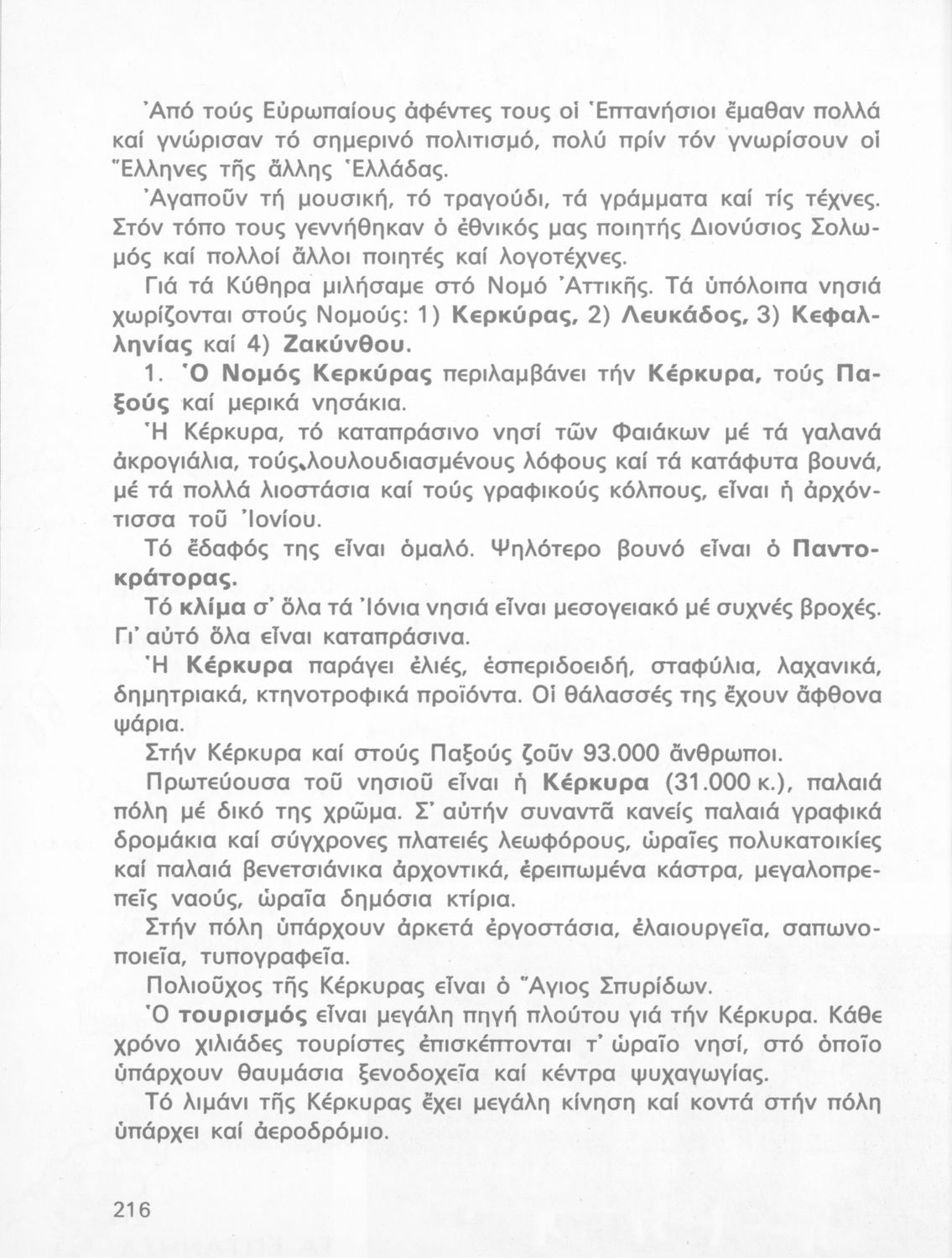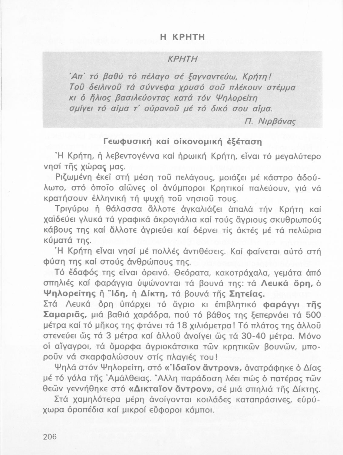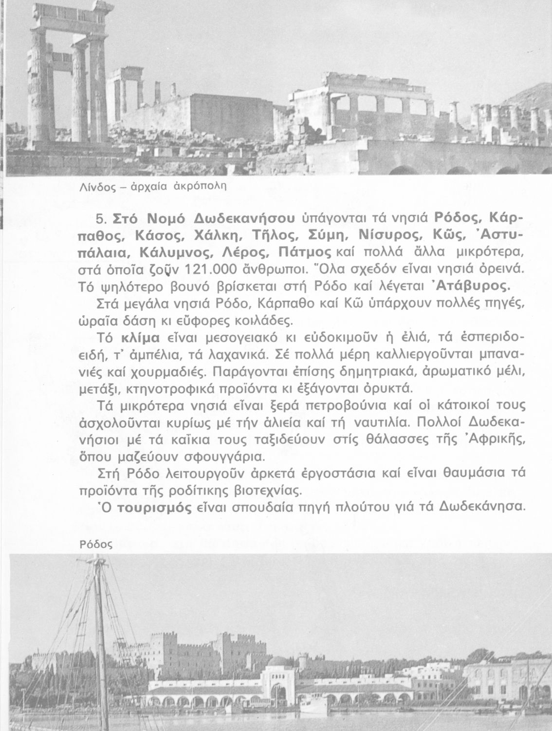 Παρουσίαση περιεχομένου: Σχολικό εγχειρίδιο Γεωγραφίας Γ ΄ και Δ' Δημοτικού. Το πρώτο μέρος του βιβλίου απευθύνεται σε μαθητές της Γ' Δημοτικού και αποτελεί μια εισαγωγή στην πατριδογνωσία με έμφαση στις παραδόσεις της ελληνικής επαρχίας. Το δεύτερο μέρος αφορά την Δ' Δημοτικού και εξετάζει την οικονομική, πολιτική και γεωφυσική γεωγραφία της Ελλάδας.