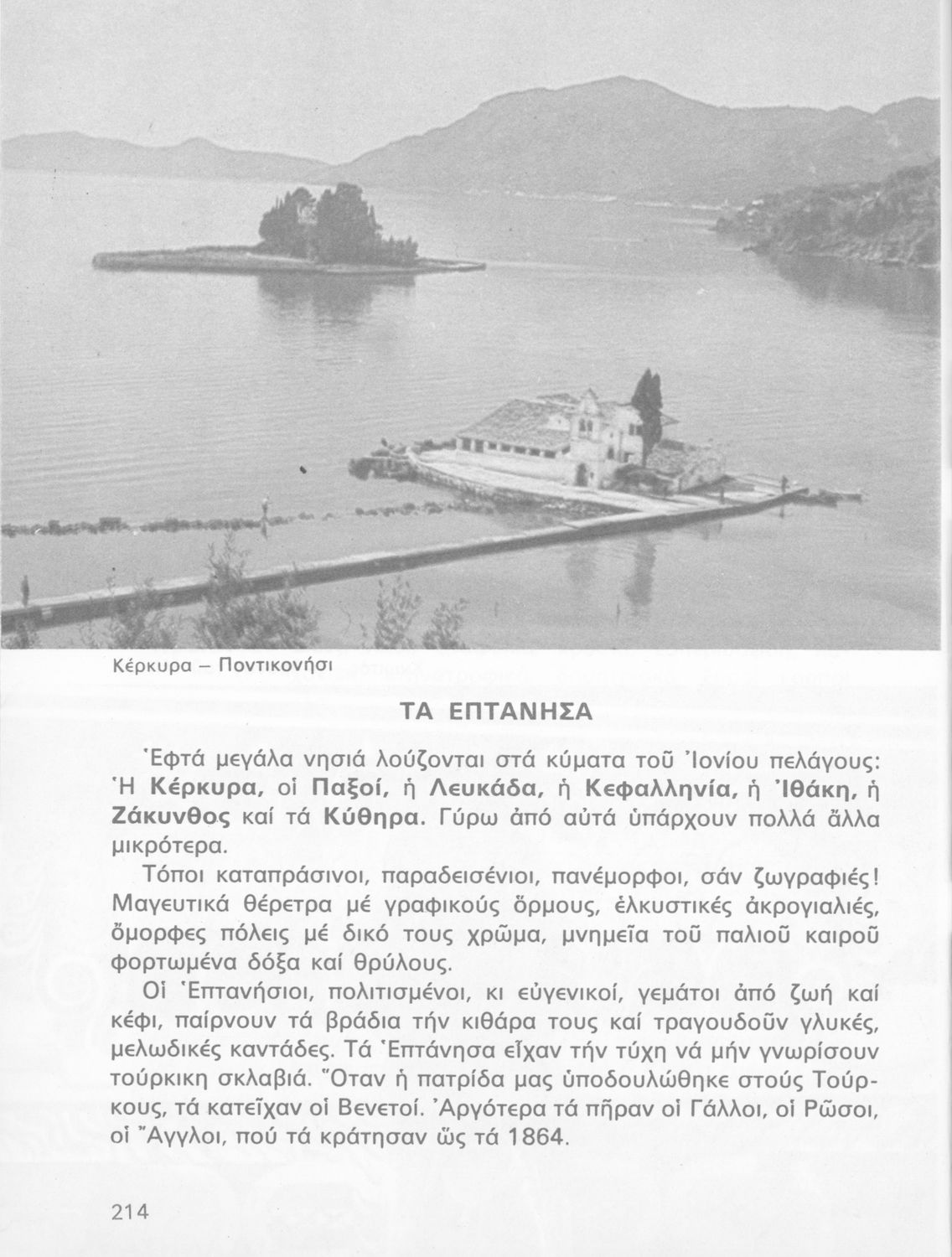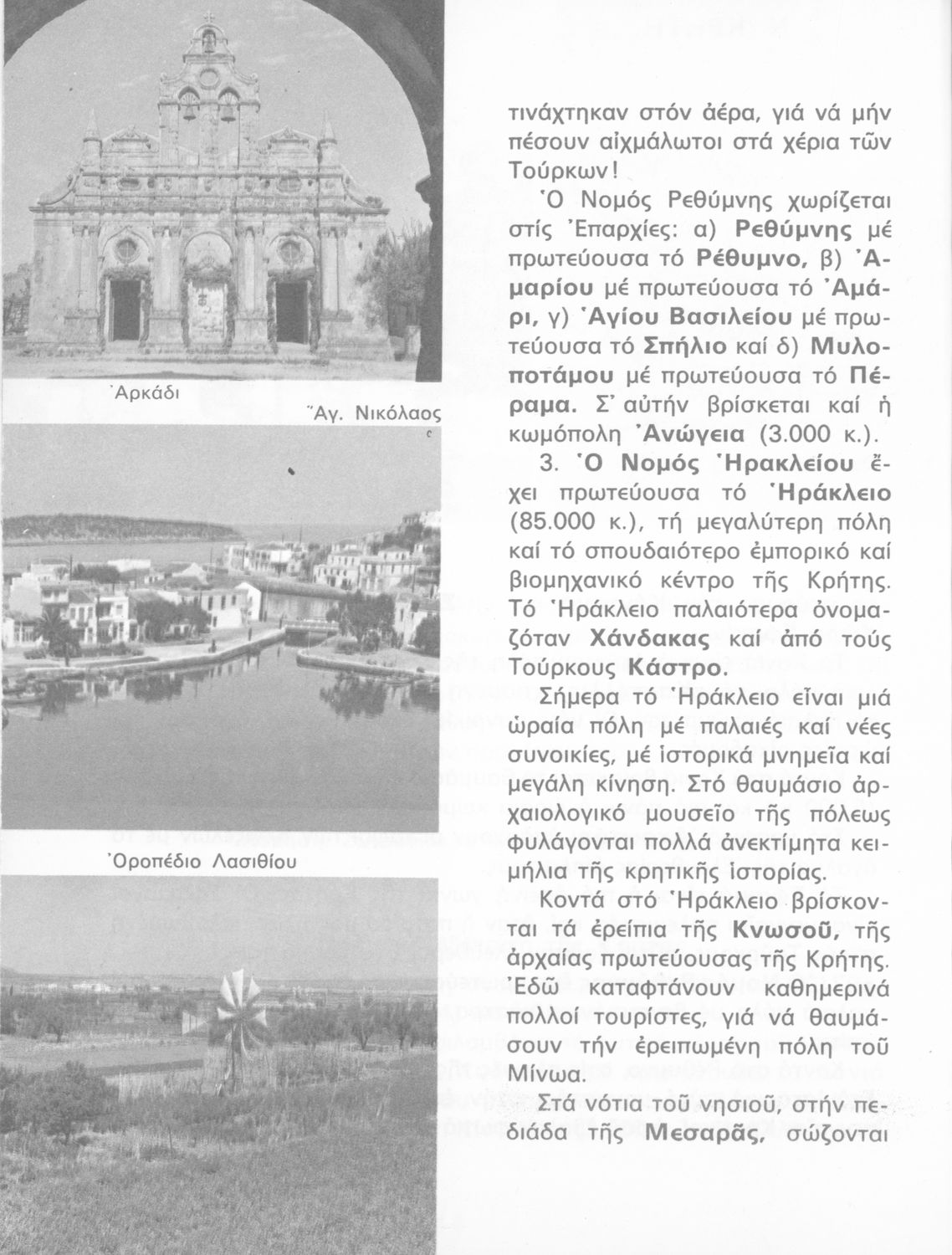 Σχολικό εγχειρίδιο Γεωγραφίας Γ ΄ και Δ' Δημοτικού. Το πρώτο μέρος του βιβλίου απευθύνεται σε μαθητές της Γ' Δημοτικού και αποτελεί μια εισαγωγή στην πατριδογνωσία με έμφαση στις παραδόσεις της ελληνικής επαρχίας. Το δεύτερο μέρος αφορά την Δ' Δημοτικού και εξετάζει την οικονομική, πολιτική και γεωφυσική γεωγραφία της Ελλάδας.