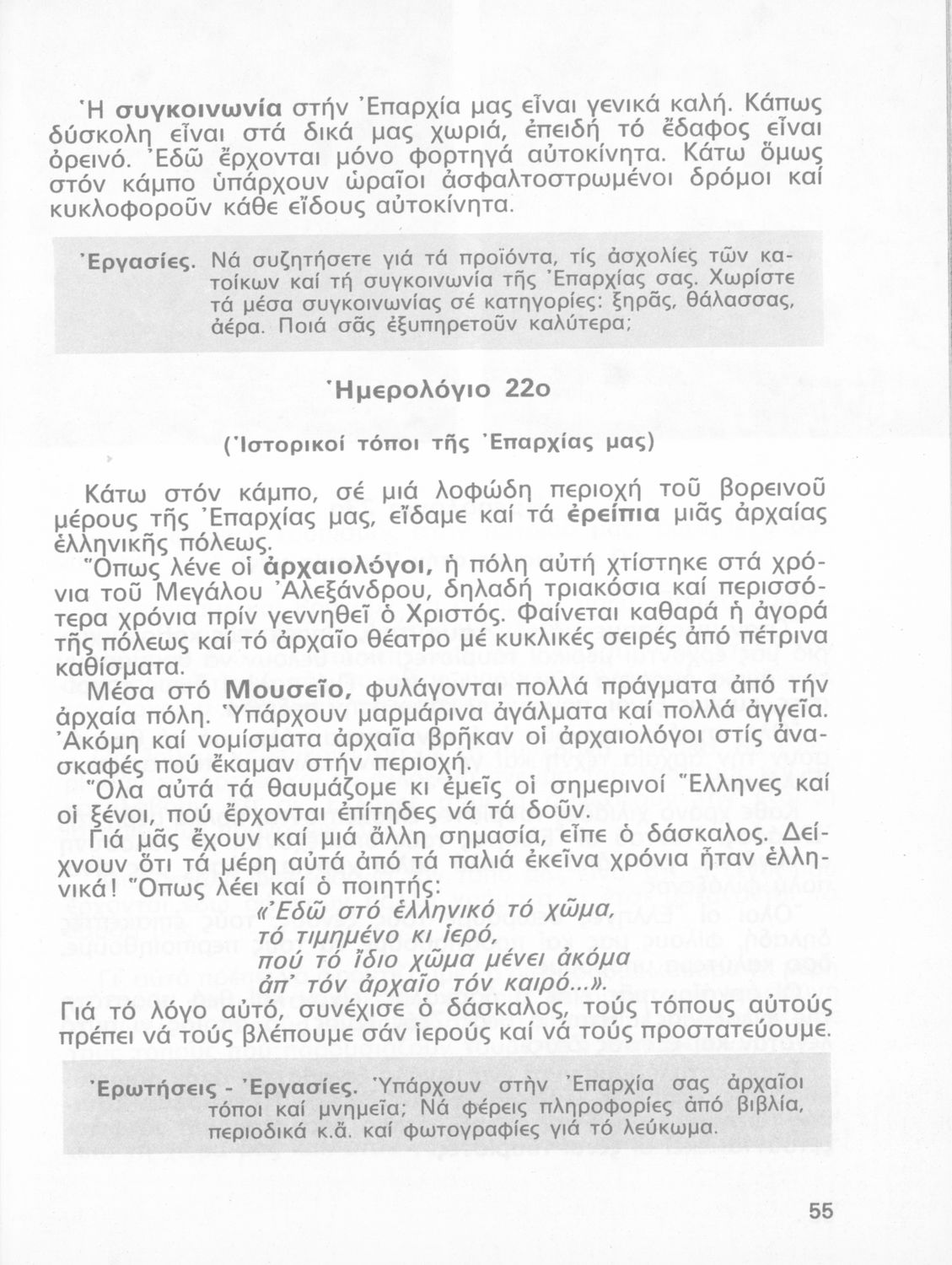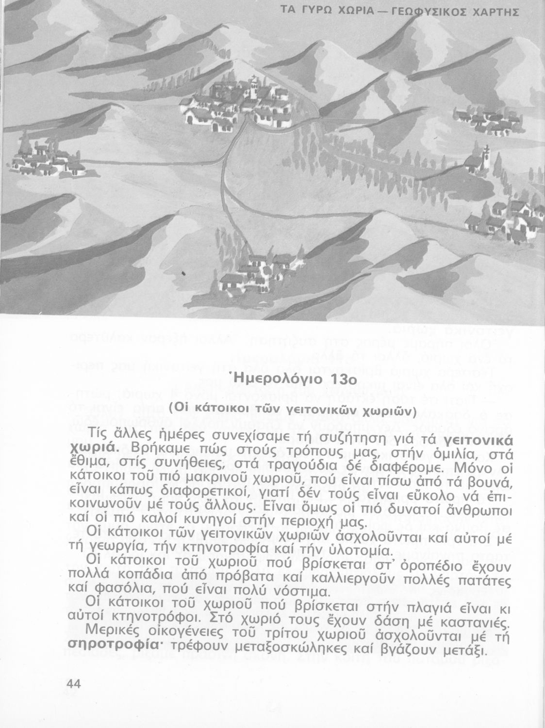 Σχολικό εγχειρίδιο Γεωγραφίας Γ ΄ και Δ' Δημοτικού. Το πρώτο μέρος του βιβλίου απευθύνεται σε μαθητές της Γ' Δημοτικού και αποτελεί μια εισαγωγή στην πατριδογνωσία με έμφαση στις παραδόσεις της ελληνικής ...