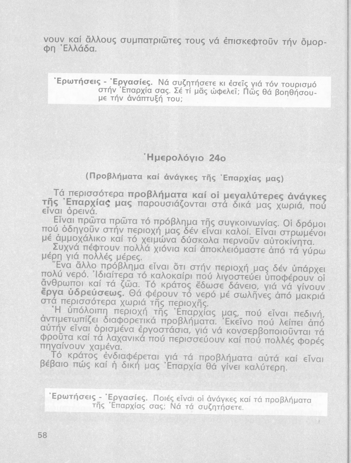 Σχολικό εγχειρίδιο Γεωγραφίας Γ ΄ και Δ' Δημοτικού. Το πρώτο μέρος του βιβλίου απευθύνεται σε μαθητές της Γ' Δημοτικού και αποτελεί μια εισαγωγή στην έννοια της πατριδογνωσίας μέσα από τις παραδόσεις της ...