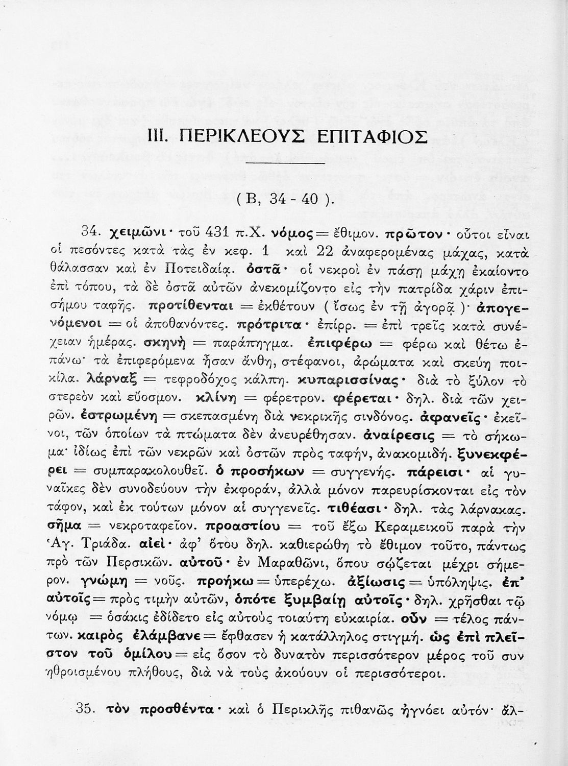 Σχολικό εγχειρίδιο Αρχαίων Ελληνικών Δ΄, Ε΄ και ΣΤ΄ Γυμνασίου που περιέχει εισαγωγή στη ζωή και το έργο του Θουκυδίδη, αποσπάσματα από τα Πλαταιϊκά, τα Λεσβιακά και τον Επιτάφιο του Περικλή και ερμηνευτικές σημειώσεις.