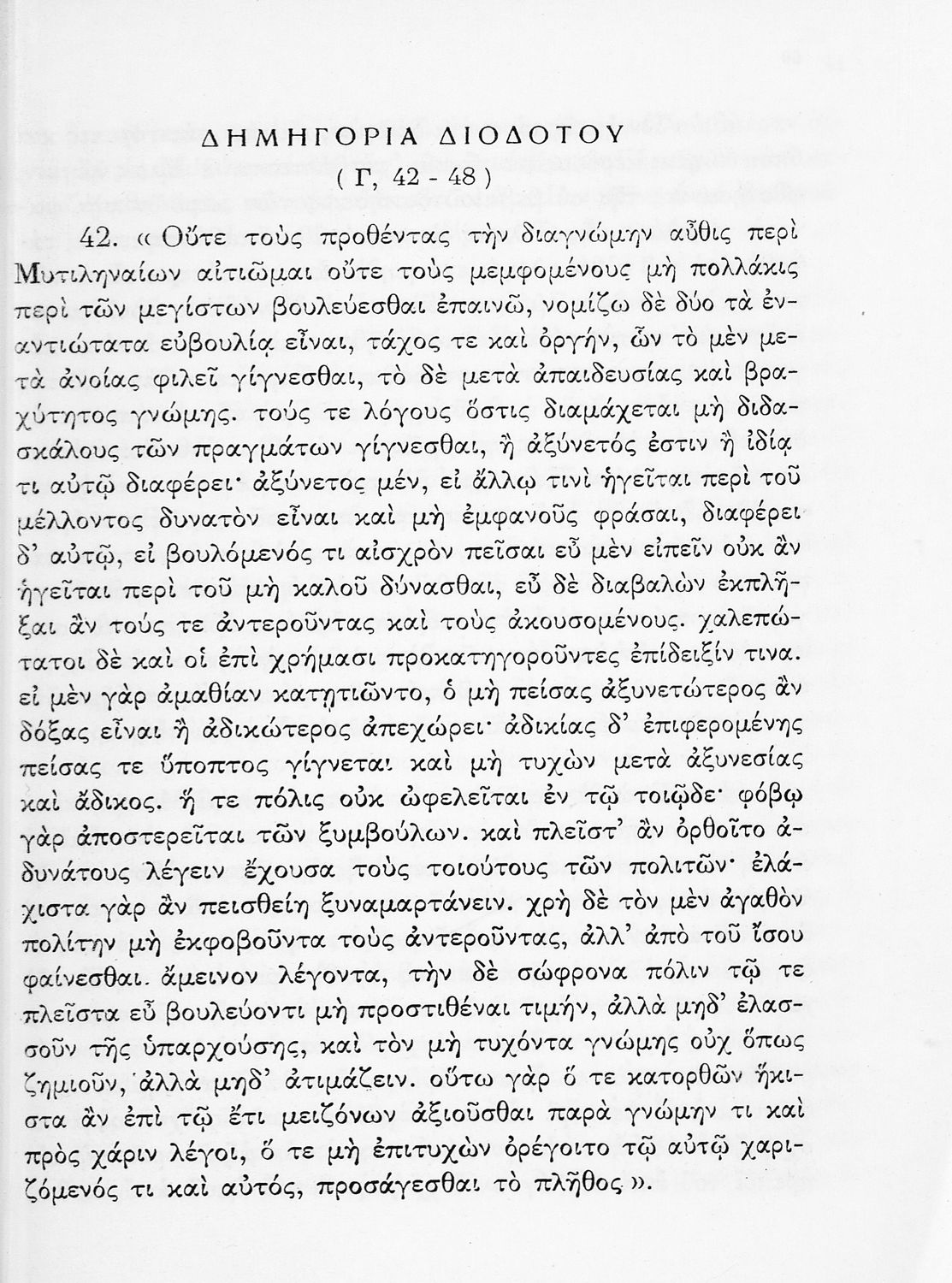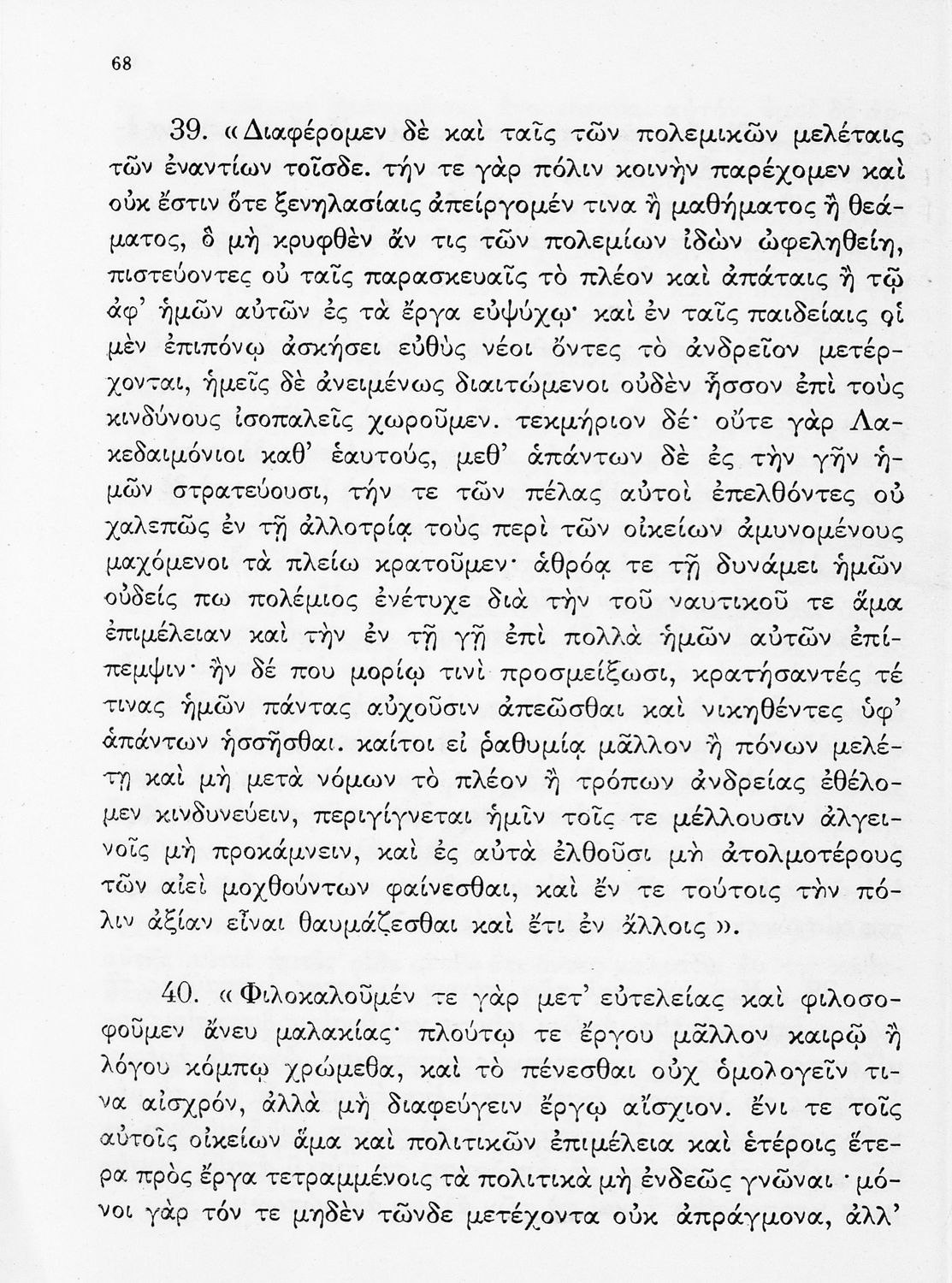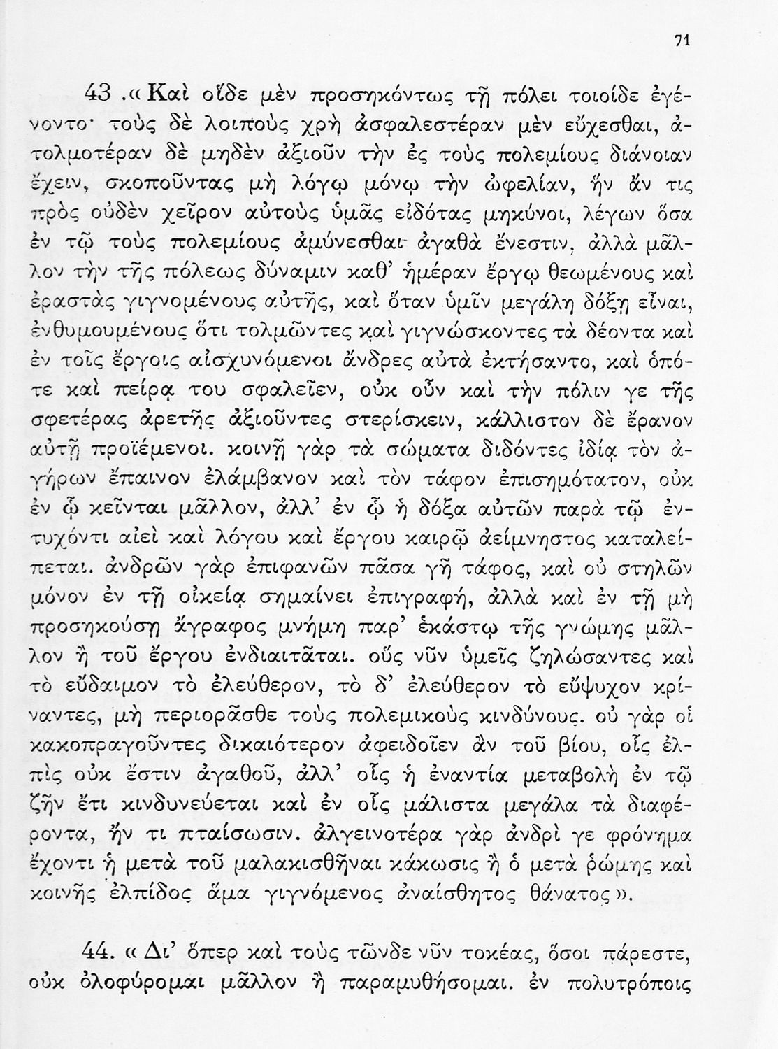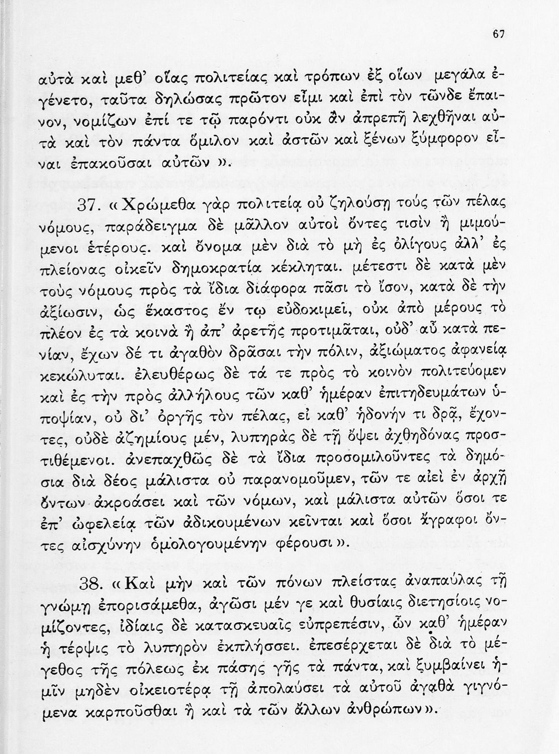 Σχολικό εγχειρίδιο Αρχαίων Ελληνικών Δ΄, Ε΄ και ΣΤ΄ Γυμνασίου που περιέχει εισαγωγή στη ζωή και το έργο του Θουκυδίδη, αποσπάσματα από τα Πλαταιϊκά, τα Λεσβιακά και τον Επιτάφιο του Περικλή και ερμηνευτικές σημειώσεις.