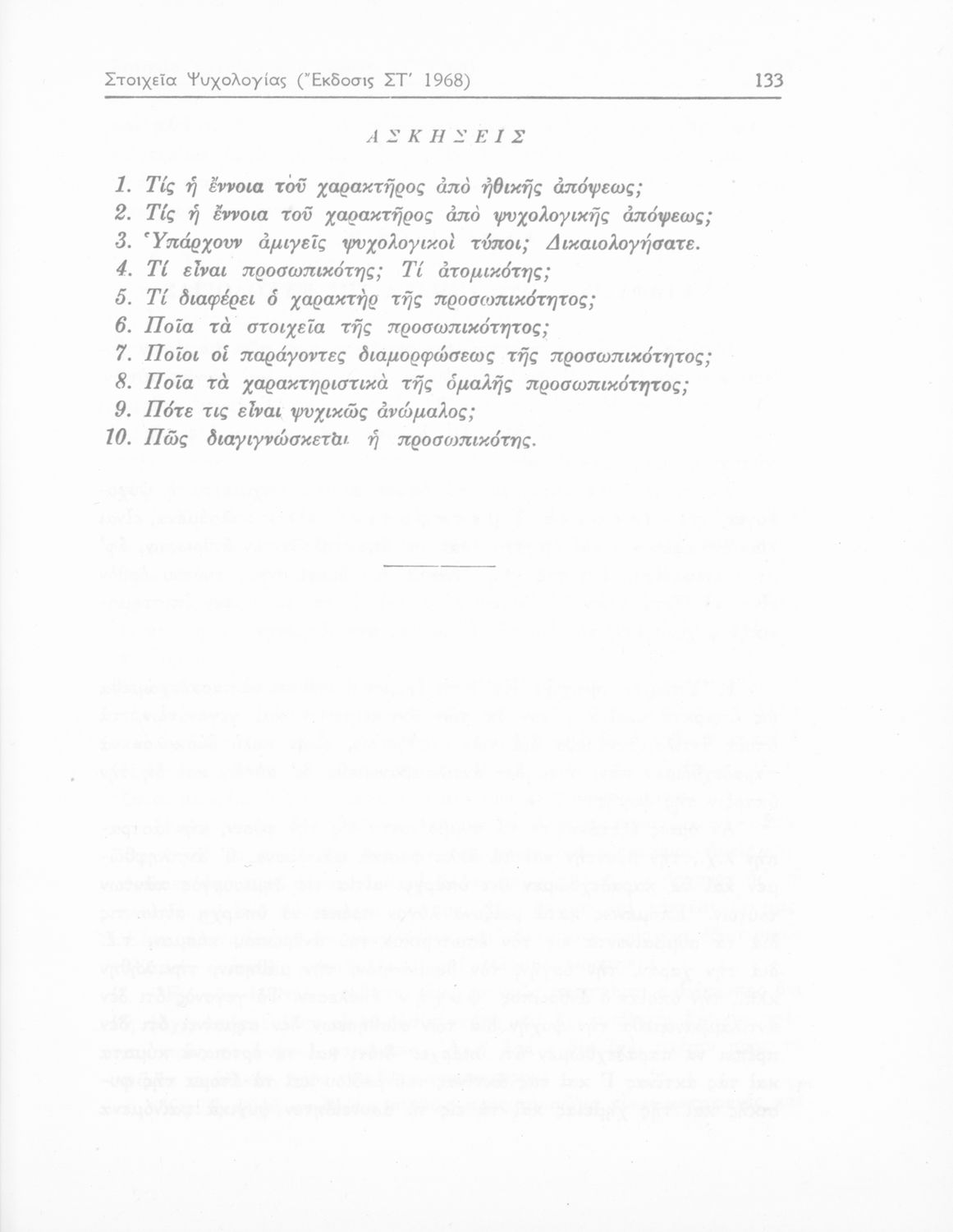 Σχολικό εγχειρίδιο Ψυχολογίας που περιλαμβάνει θεωρία και ασκήσεις και εξετάζει τον ψυχικό βίο από νοητική, συναισθηματική και βουλητική άποψη.