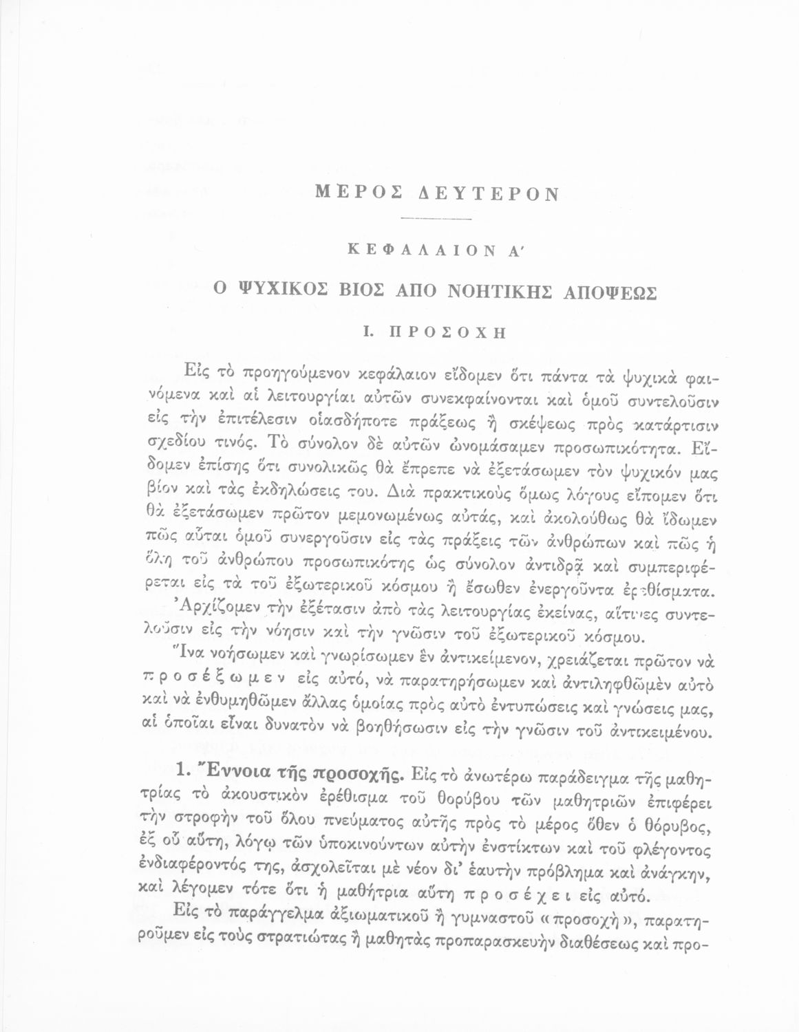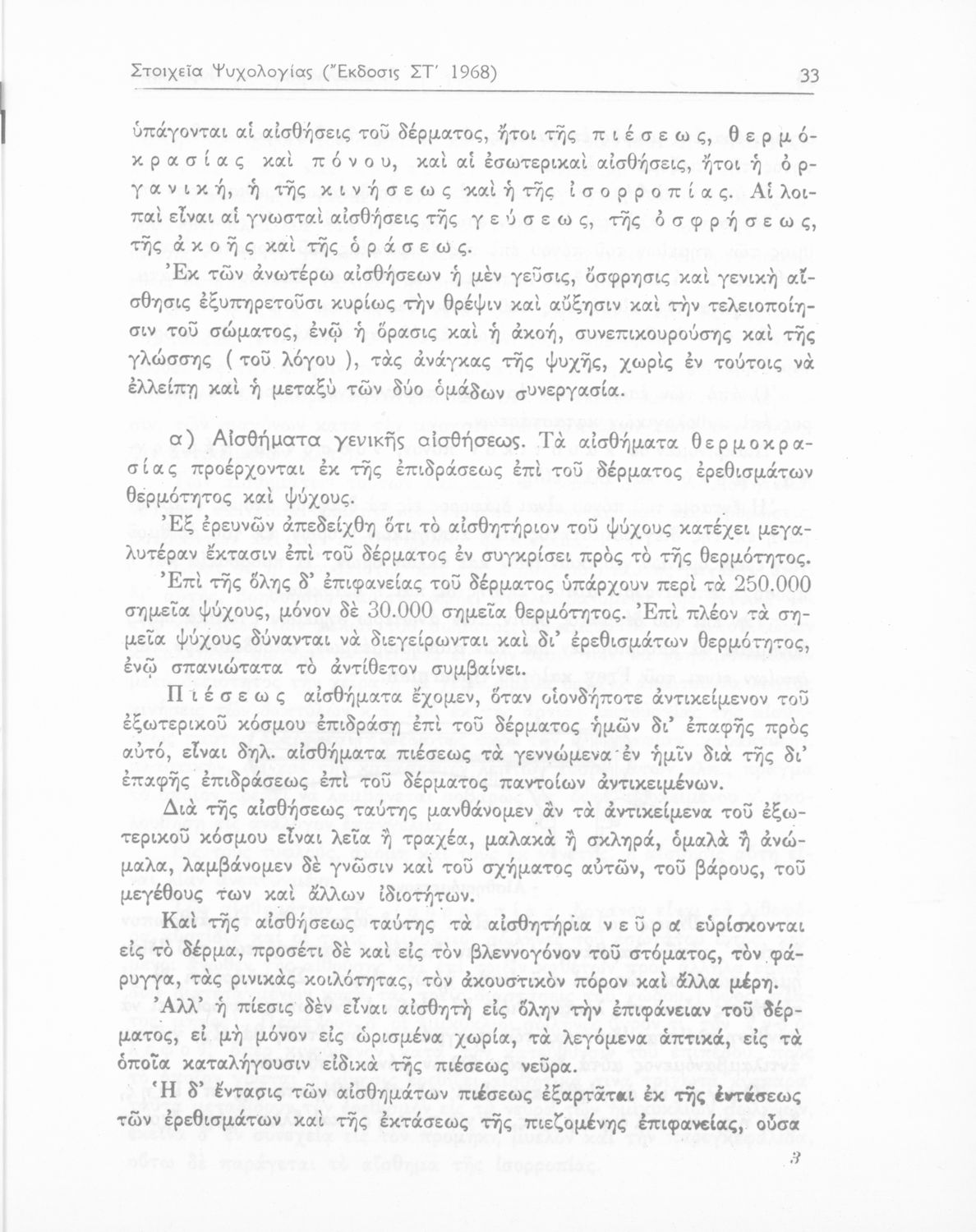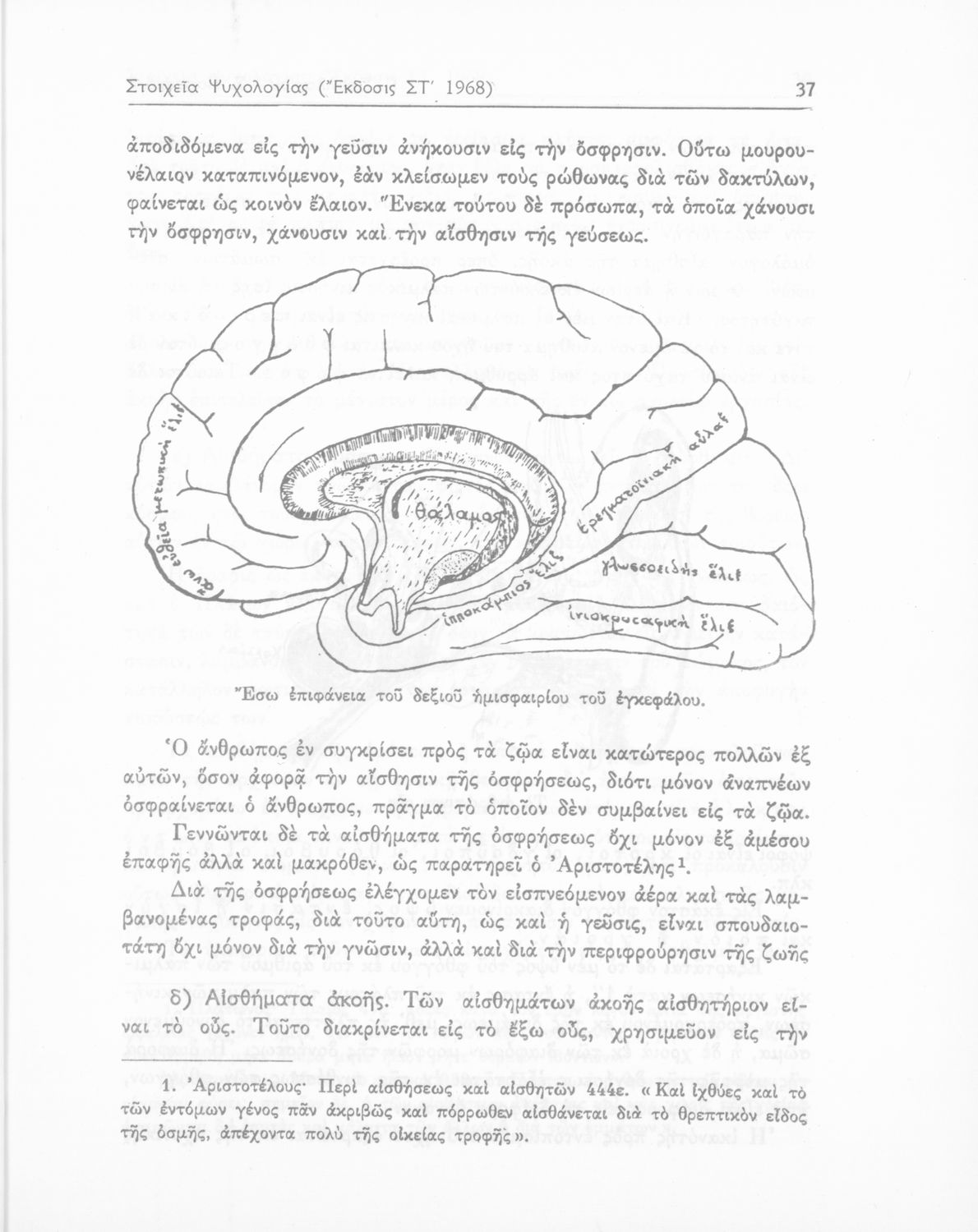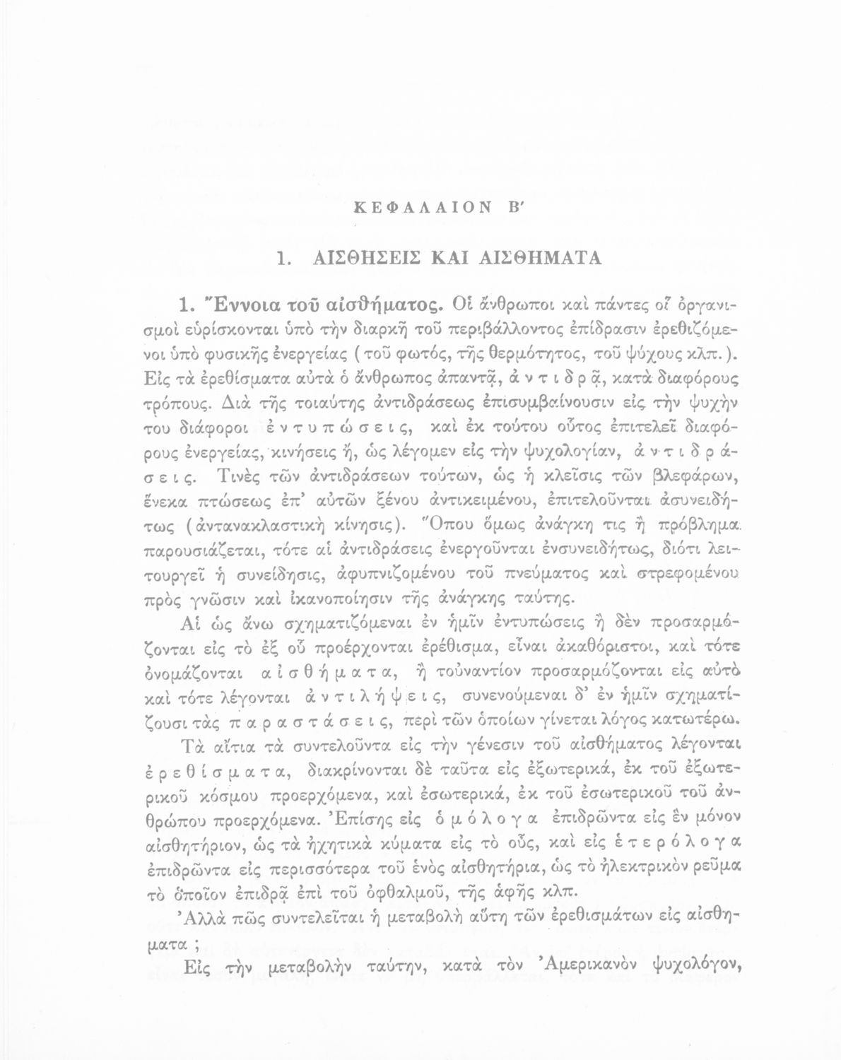 Σχολικό εγχειρίδιο Πειραματικής Ψυχολογίας για τη Γ΄ Γυμνασίου χωρισμένο σε τρία τμήματα: το παριστάναι, το συναισθάνεσθαι, και το βούλεσθαι.