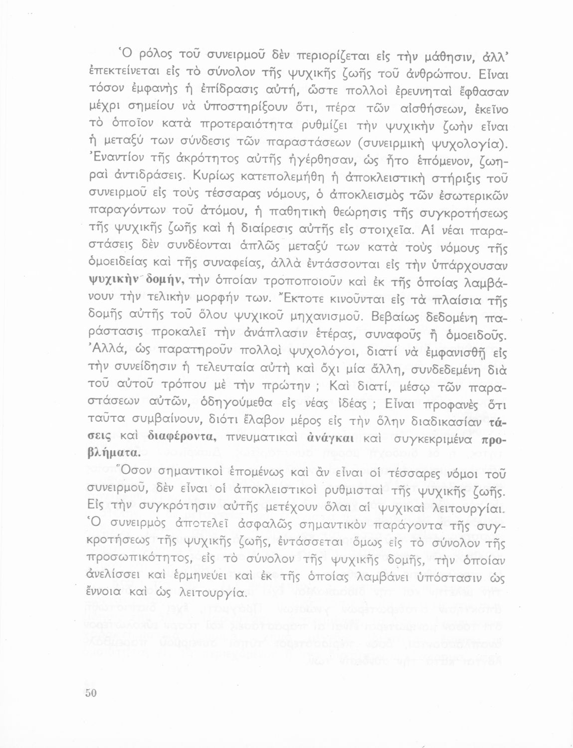 Σχολικό εγχειρίδιο Ψυχολογίας για την Ε΄ Γυμνασίου που περιλαμβάνει θεωρία και ασκήσεις και εξετάζει τον ψυχικό βίο από νοητική, συναισθηματική και βουλητική άποψη. Φέρει το σύμβολο της δικτατορίας.