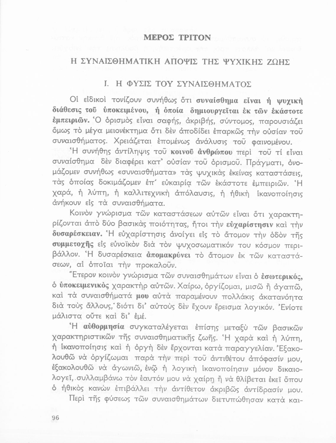 Σχολικό εγχειρίδιο Ψυχολογίας για την Ε΄ Εξαταξίου Γυμνασίου χωρισμένο σε τρία τμήματα: το γνωστικό, το συναισθηματικό και το βουλητικό.