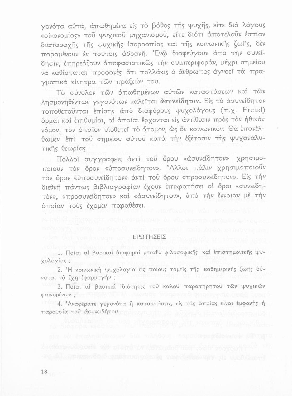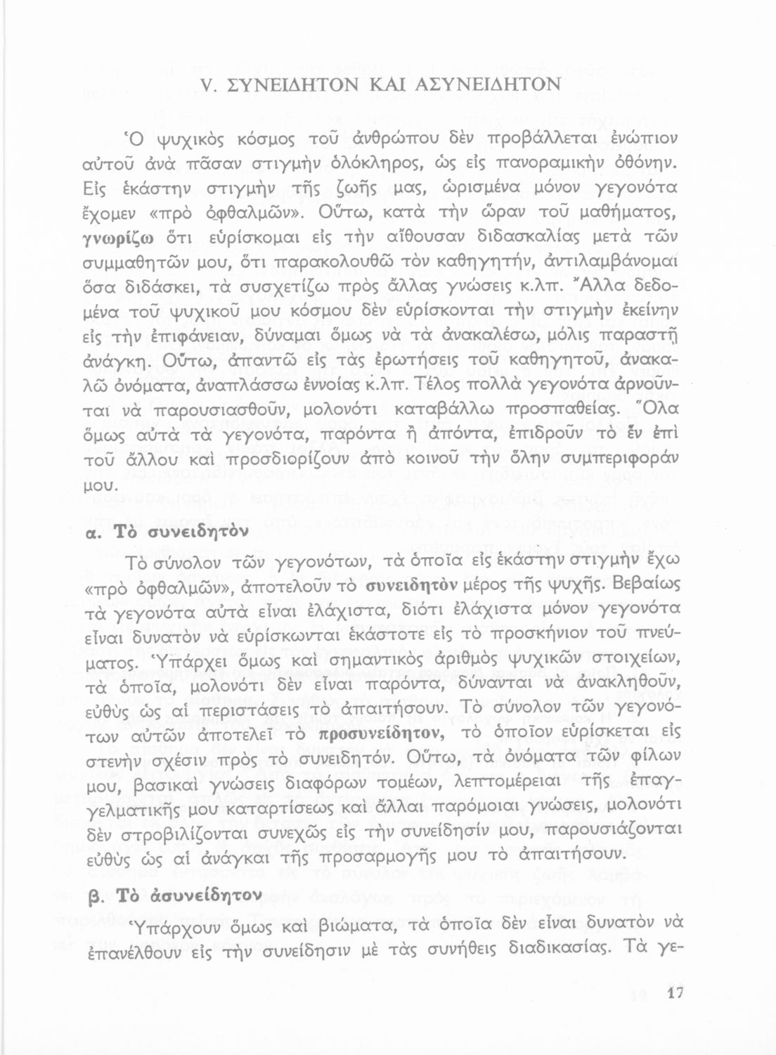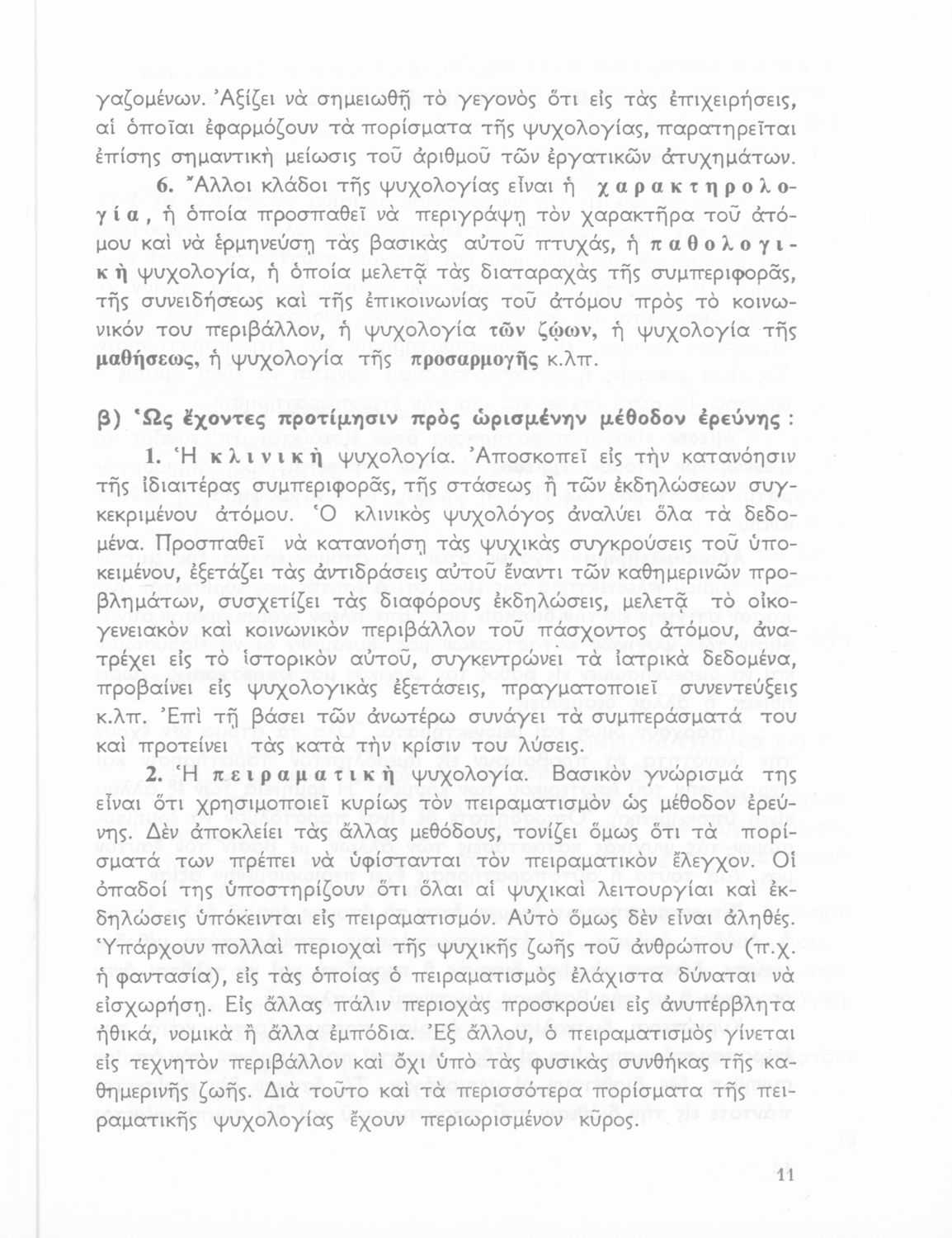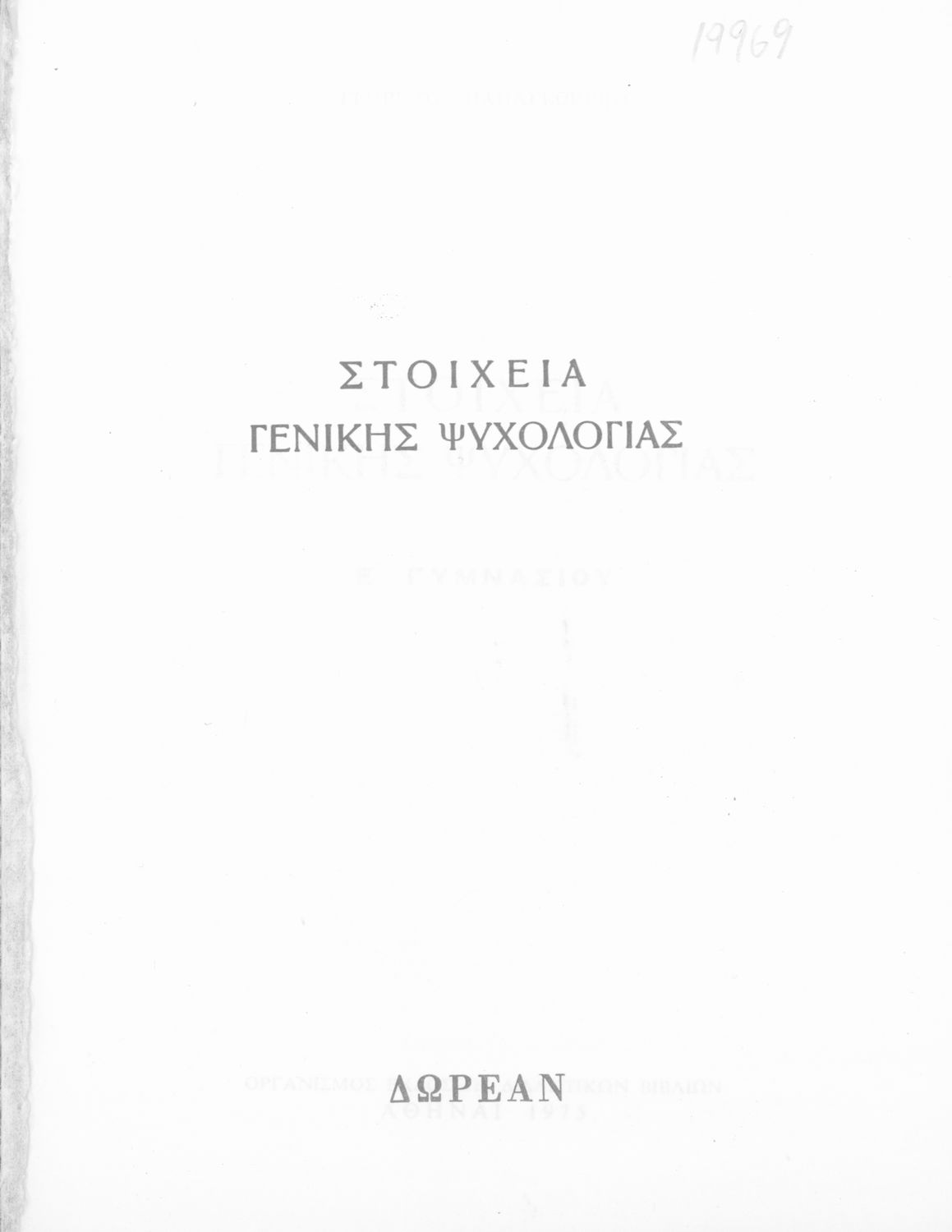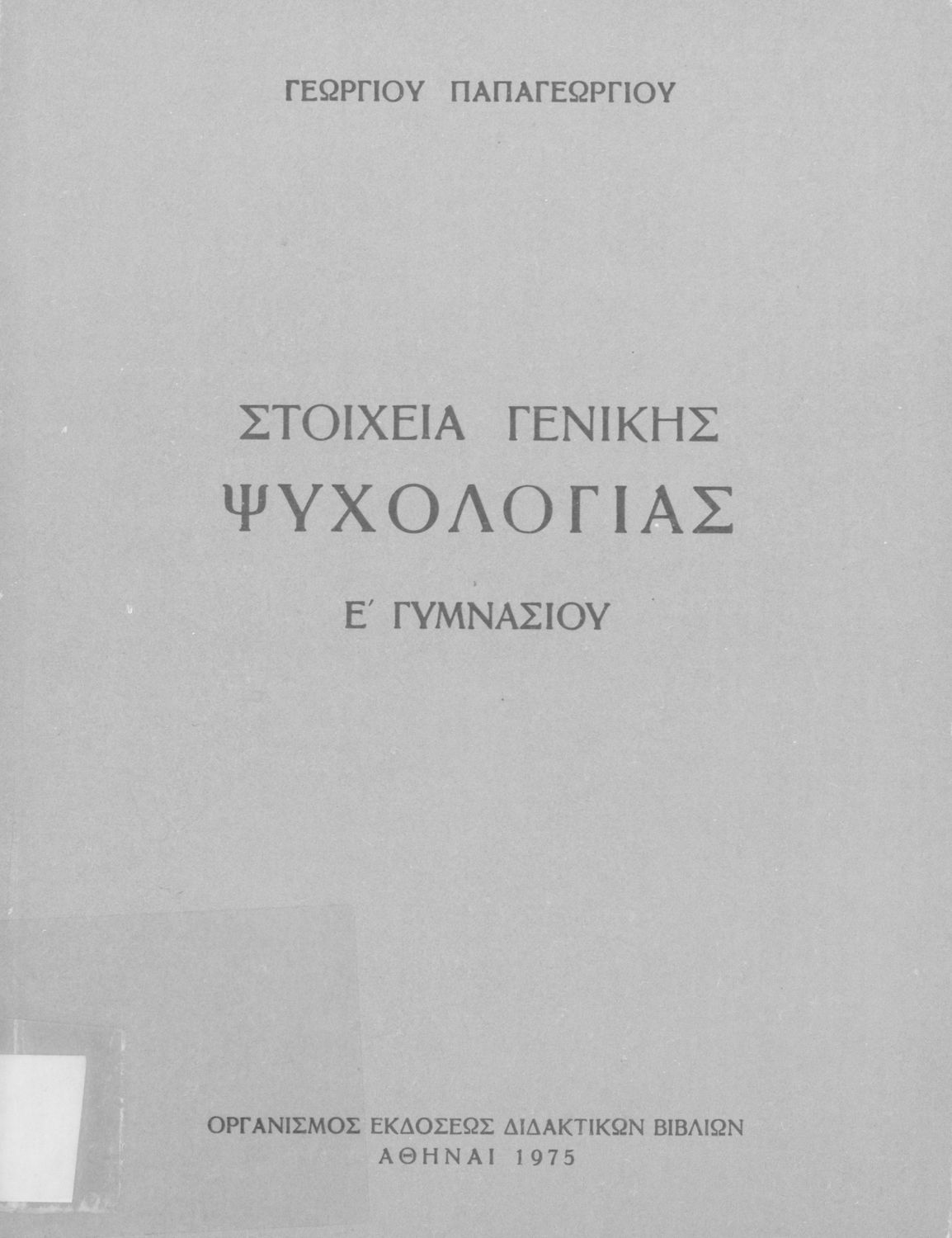 Σχολικό εγχειρίδιο Ψυχολογίας για την Ε΄ Γυμνασίου που περιλαμβάνει θεωρία και ασκήσεις και εξετάζει τον ψυχικό βίο από νοητική, συναισθηματική και βουλητική άποψη. Φέρει το σύμβολο της δικτατορίας.