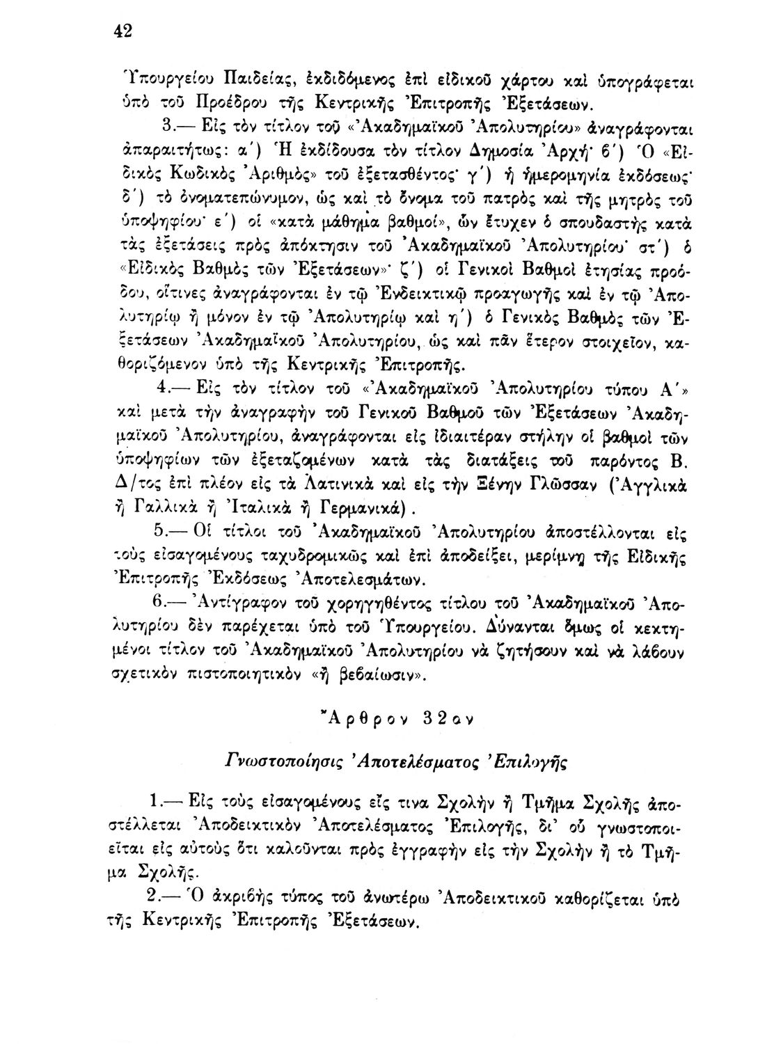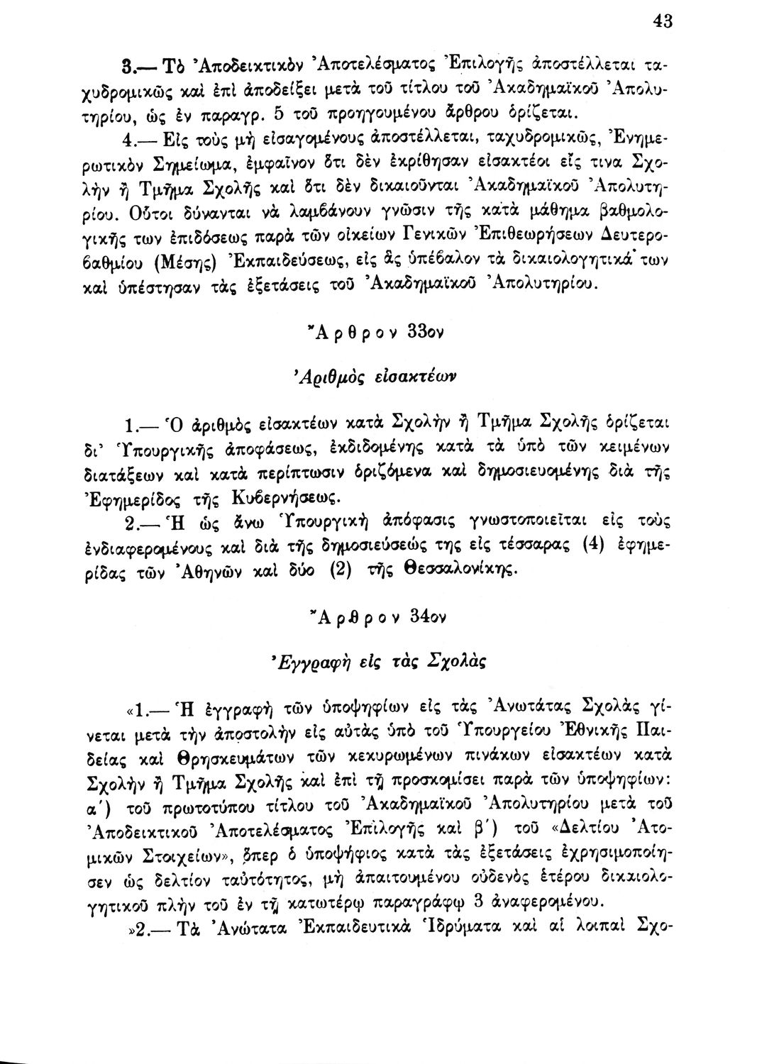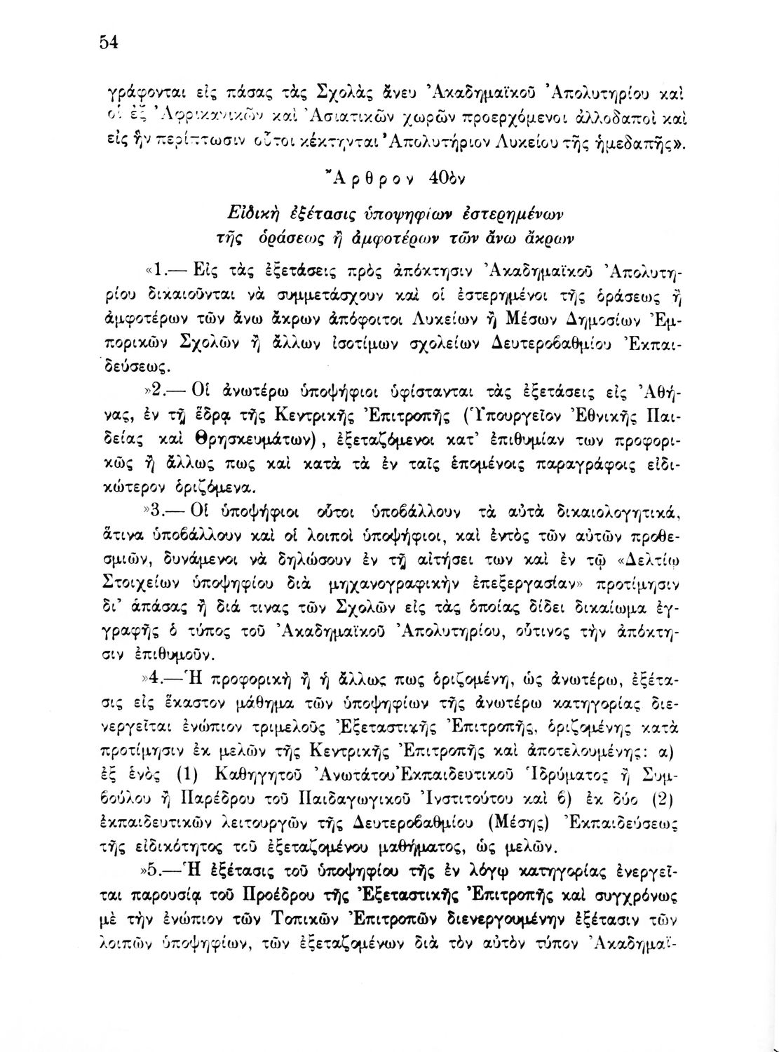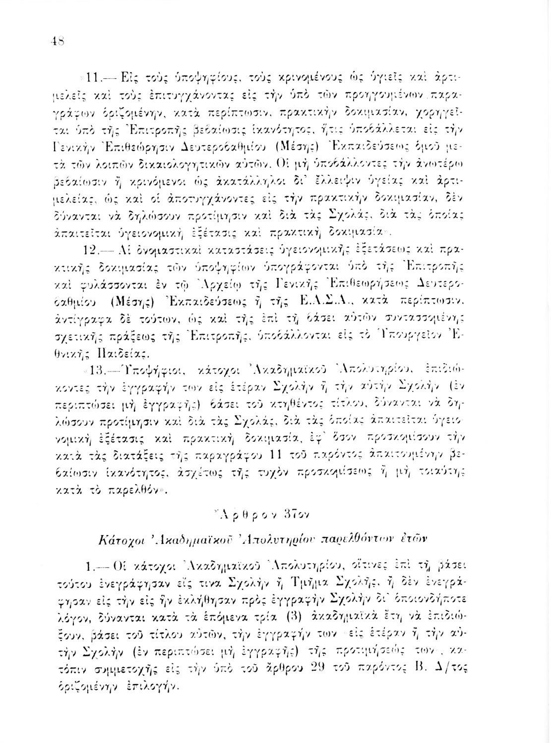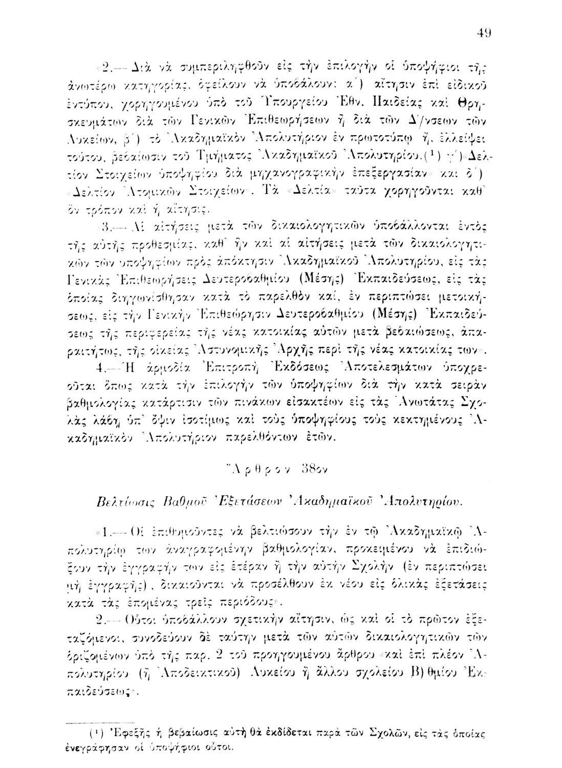 Τίτλος: Ακαδημαϊκόν Απολυτήριον, τρόπος διενέργειας εξετάσεων και επιλογής υποψηφίων δια τας ανωτάτας σχολάς τεύχος Β΄