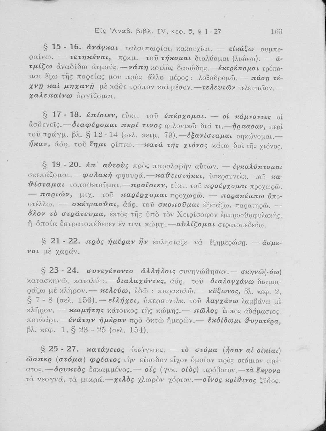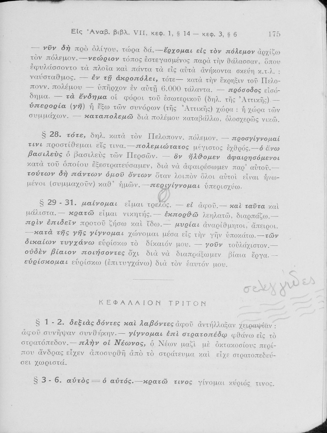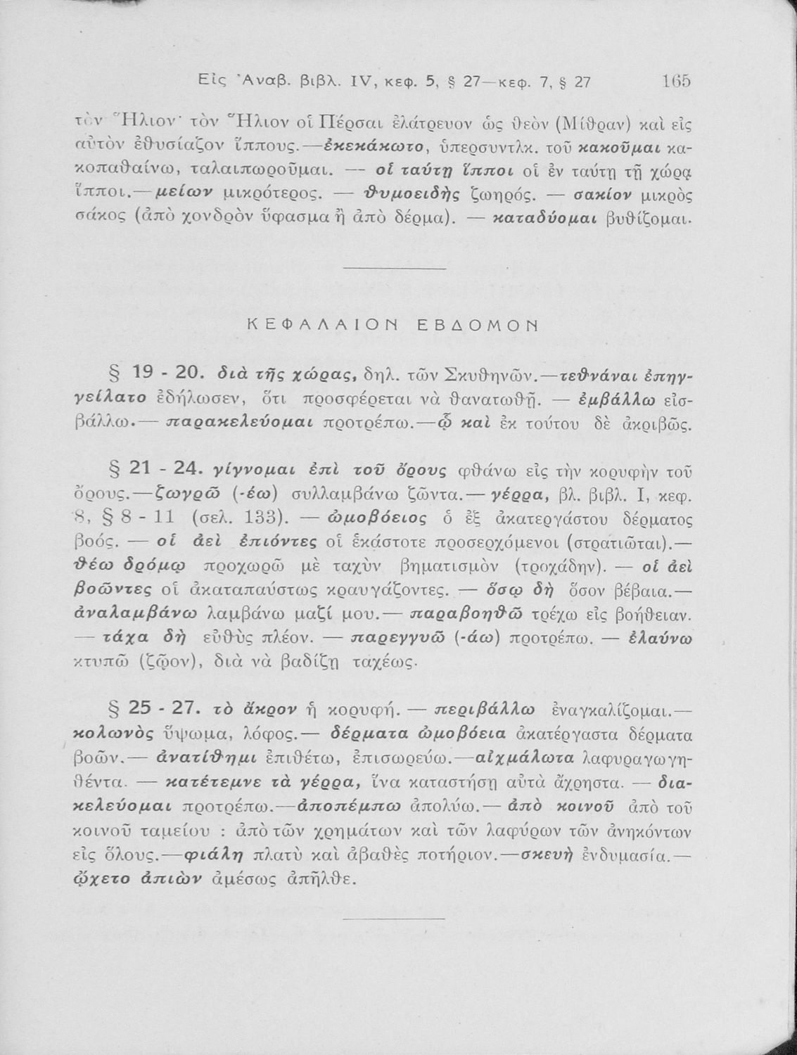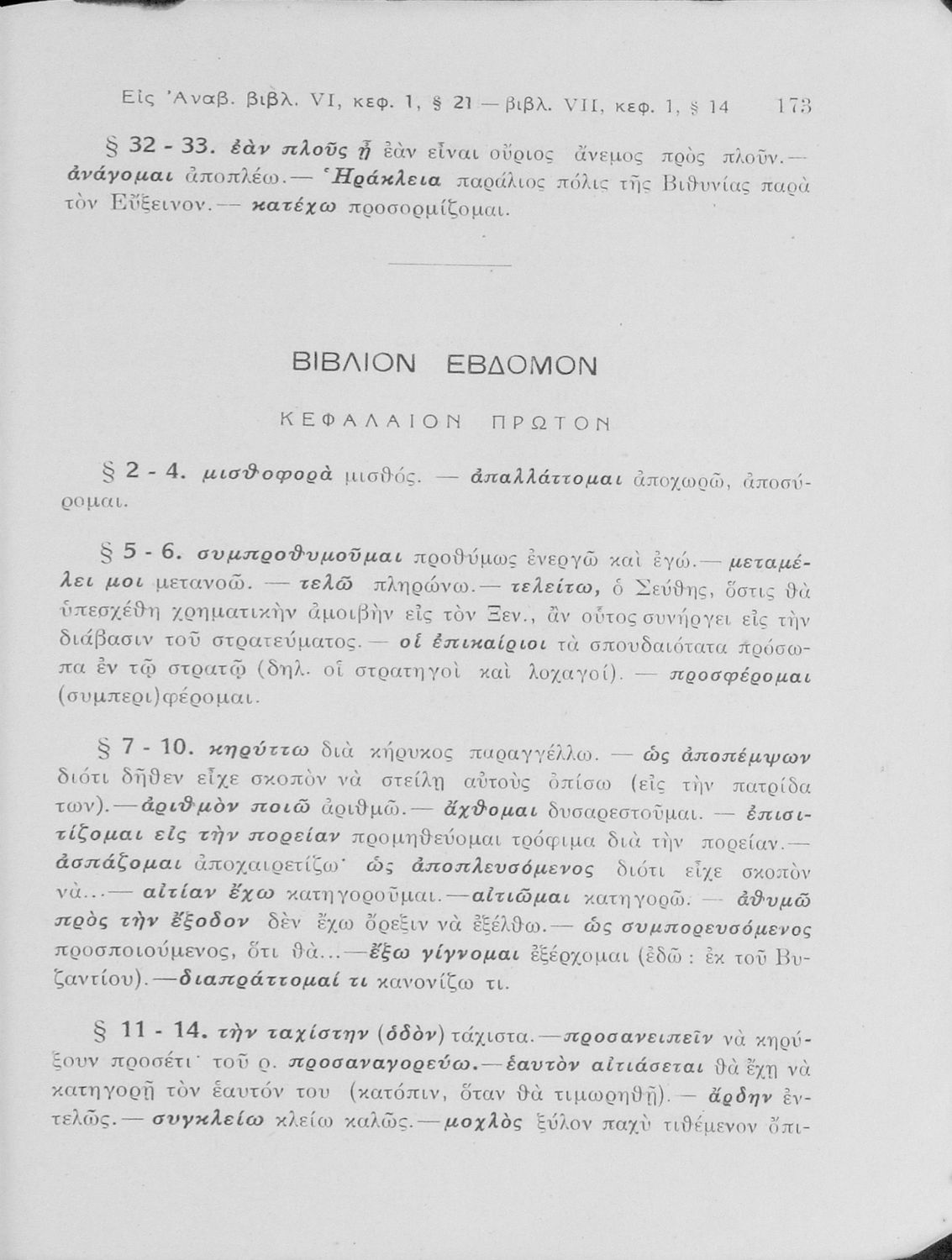 Σχολικό εγχειρίδιο της Γ' Ελληνικού Σχολείου και Αστικών Σχολείων για το μάθημα των Αρχαίων Ελληνικών. Το σύγγραμμα περιλαμβάνει κείμενα κατ΄ επιλογή από τα τέσσερα τελευταία βιβλία του έργου Κύρου Ανάβασις. ...