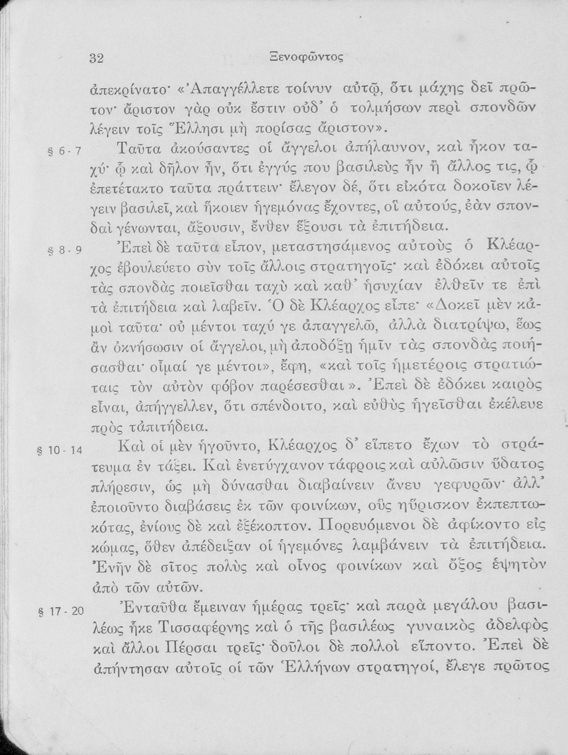 Σχολικό εγχειρίδιο της Γ' Ελληνικού Σχολείου και Αστικών Σχολείων για το μάθημα των Αρχαίων Ελληνικών. Το σύγγραμμα περιλαμβάνει κείμενα κατ΄ επιλογή από τα τέσσερα τελευταία βιβλία του έργου Κύρου Ανάβασις. ...