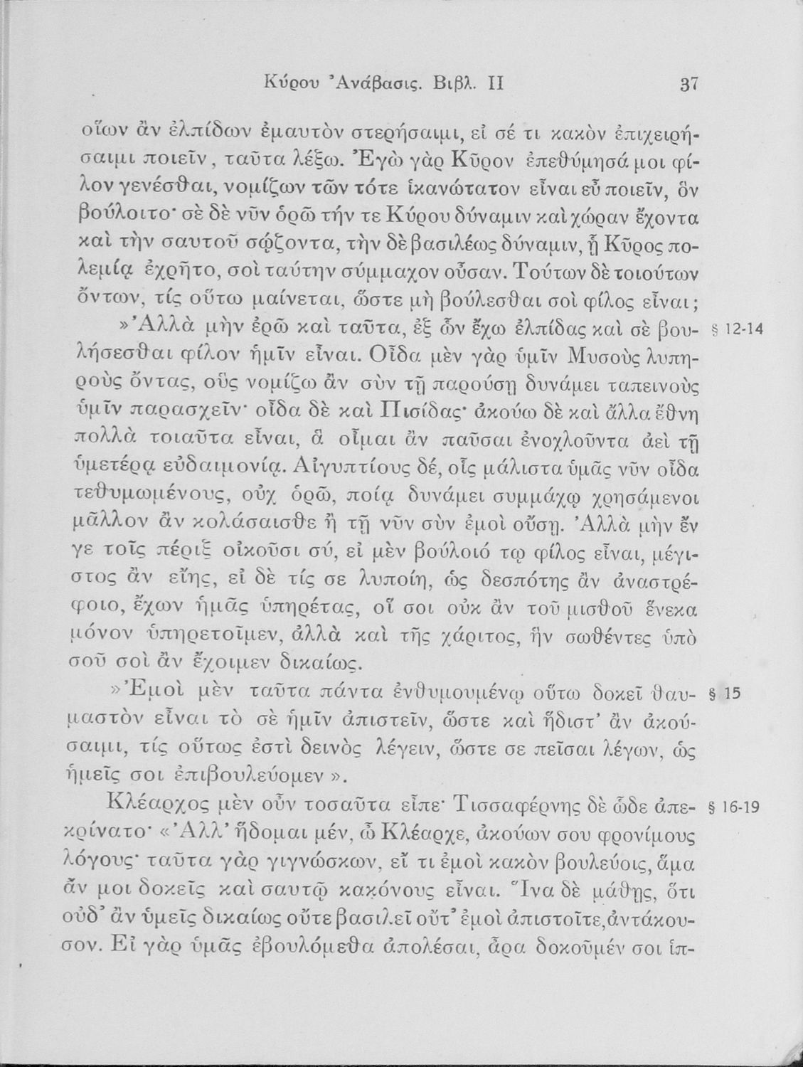 Σχολικό εγχειρίδιο Αρχαίων Ελληνικών Β΄ Γυμνασίου που περιλαμβάνει το έργο του Ξενοφώντα Κύρου Ανάβασις, εισαγωγικά σχόλια για τη ζωή και το έργο του, ερμηνευτικές και γραμματικές παρατηρήσεις